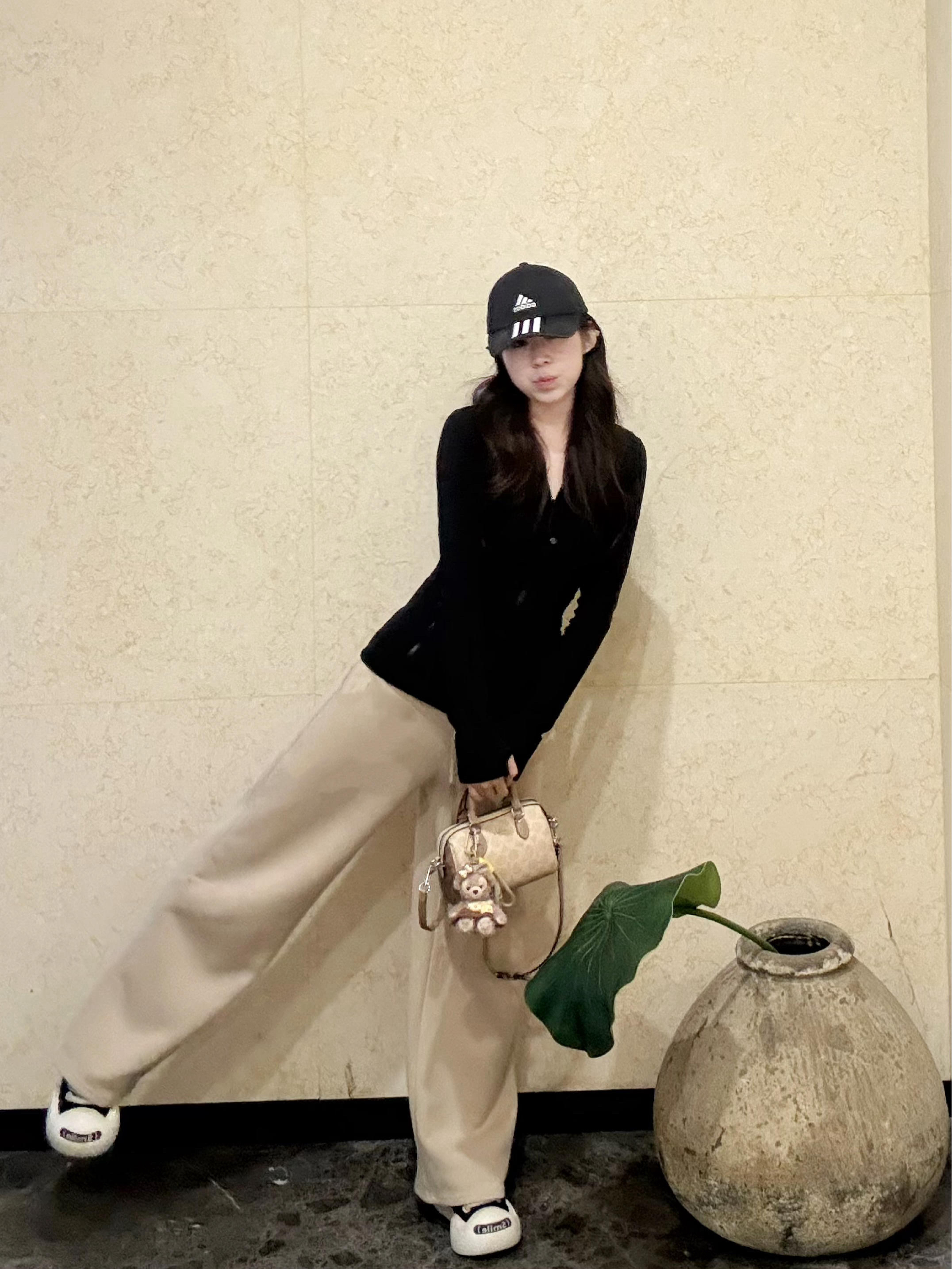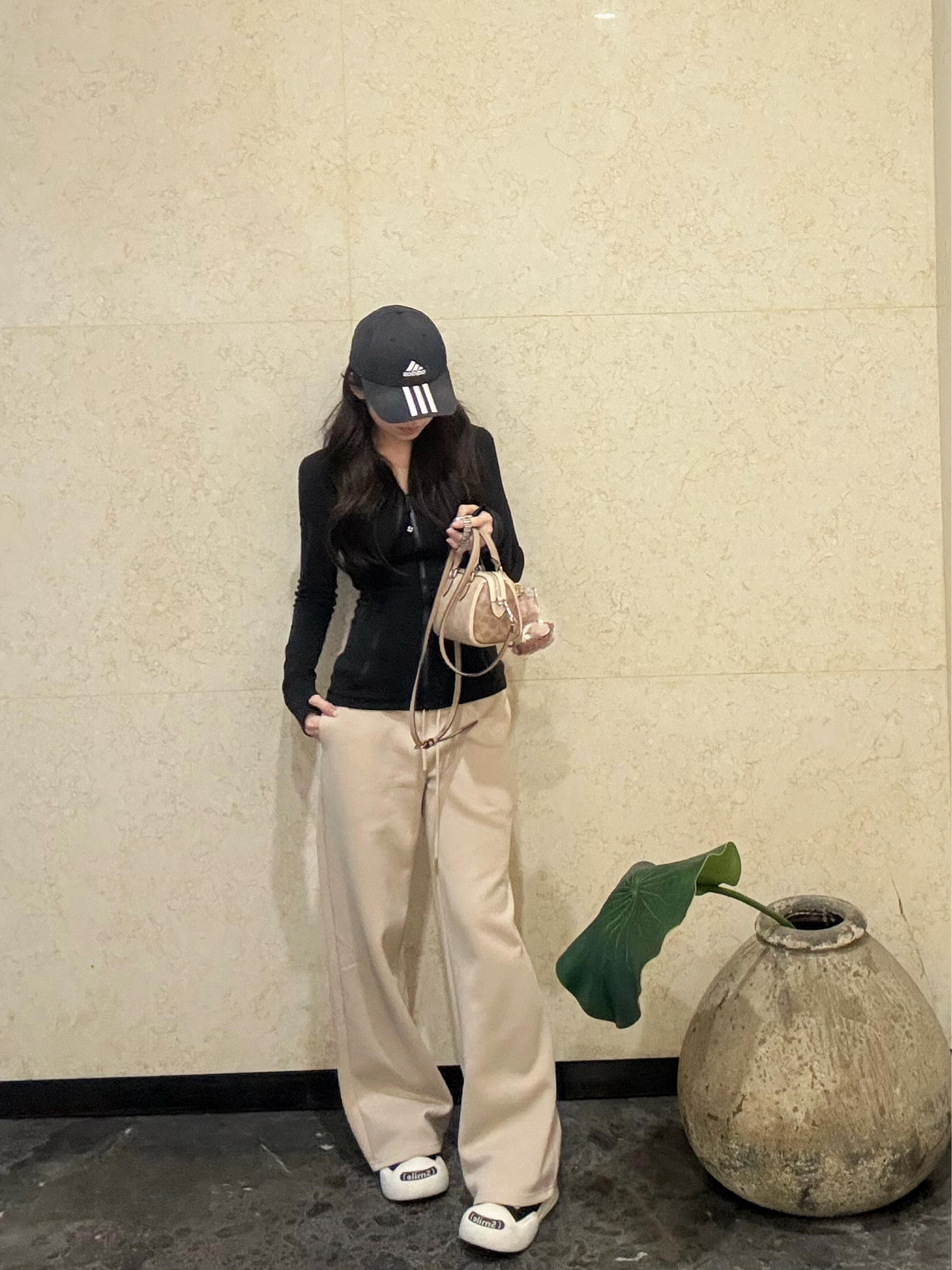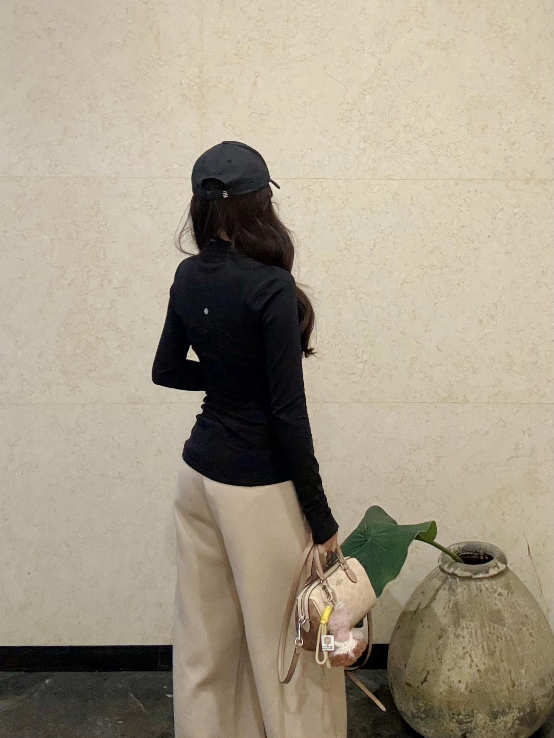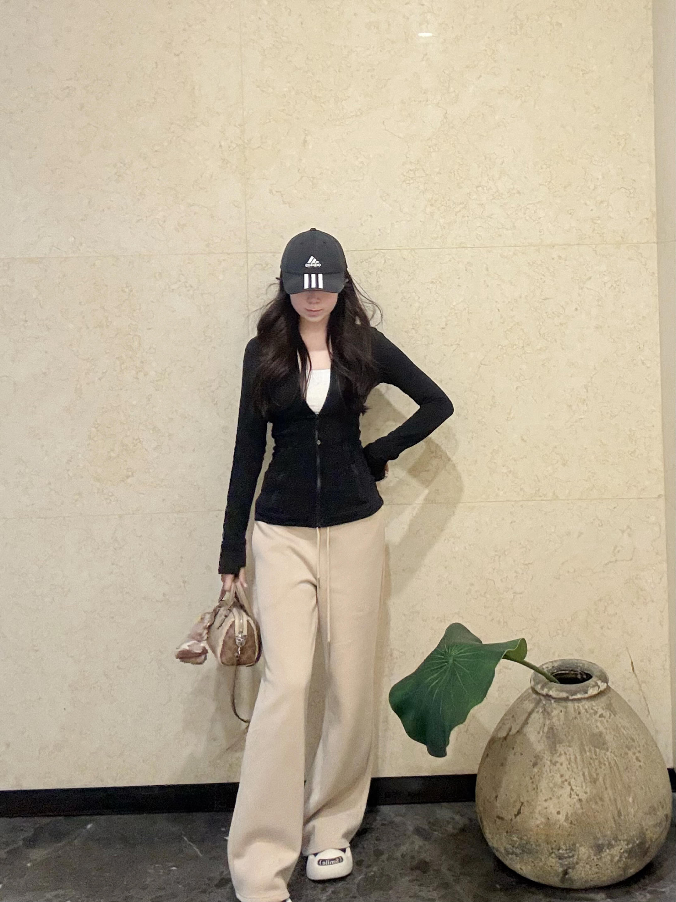 版型真的太绝了 高腰设计直接拉长腿线 垂感好到走路带风~ 藏肉又显瘦 对各种腿型都很友好 面料软软糯糯的 贴身穿也很舒服 春天搭个瑜伽服就很清爽 颜色是温柔的奶杏色 和黑色lulu搭在一起 腰身比例直接拉满 简约又高级 日常通勤或者出门逛街都合适 随便配个棒球帽和小白鞋 慵懒随性的感觉就出来了 真的是百搭神裤 闭眼入都不会错哦