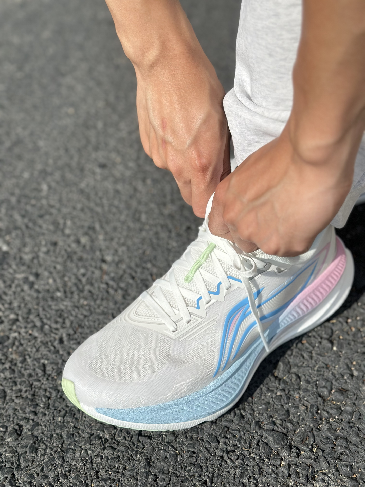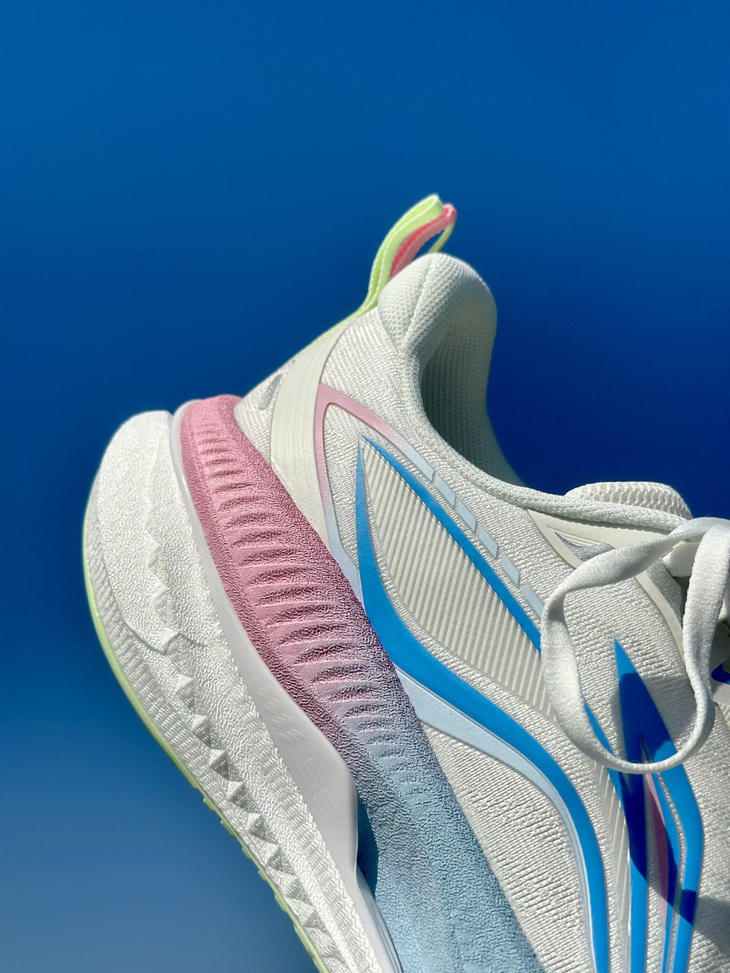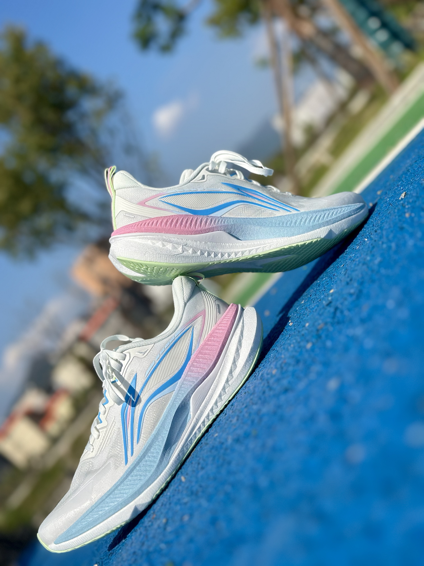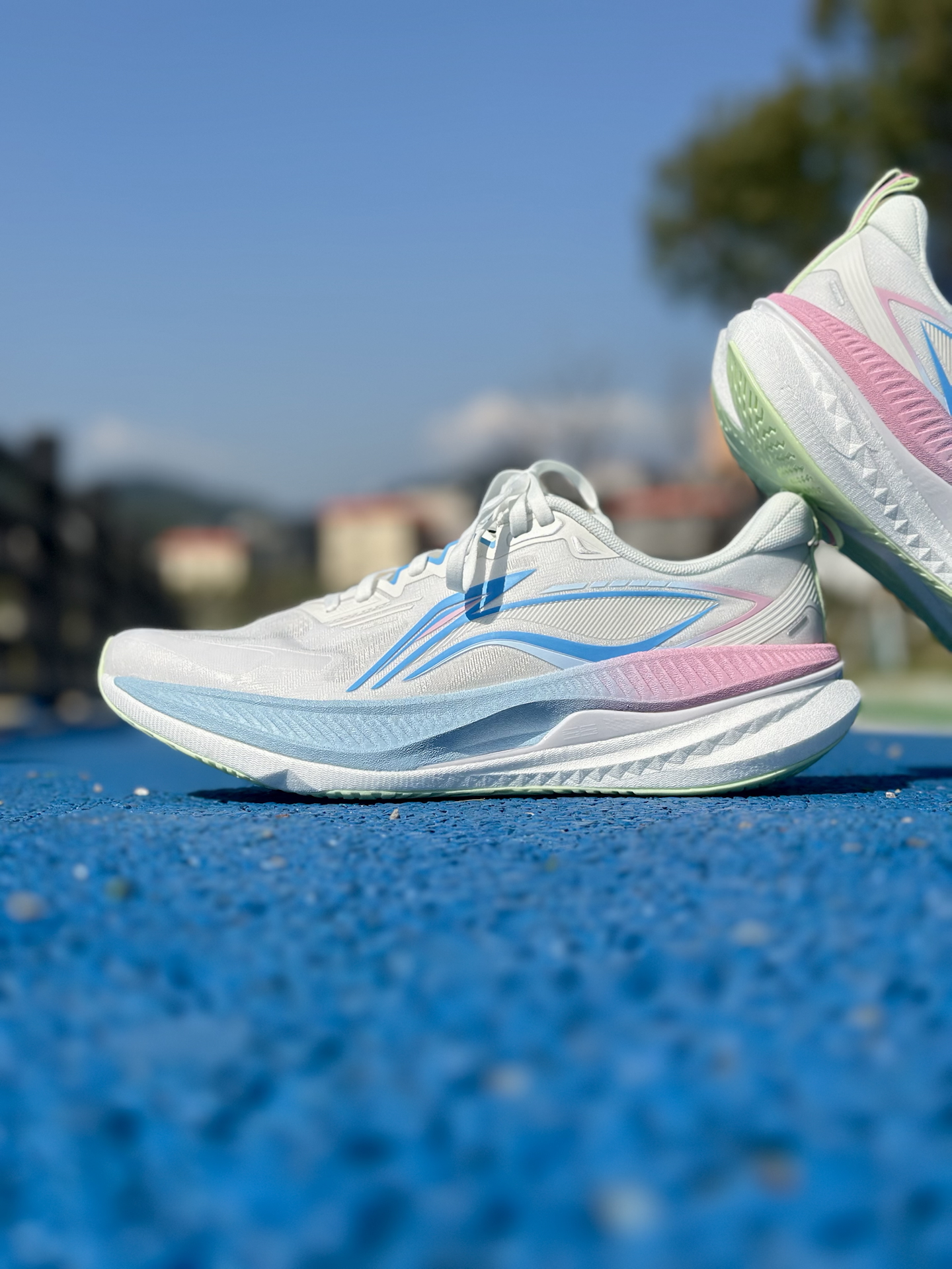 今天分享这双李宁吾适5S6.0,我手上这款为白蓝粉渐变配色,个人认为是所有配色里面应该是谁最好看的一双。 白底色搭配蓝粉渐变中底,鞋头点缀淡绿色细节,视觉清爽,适配春夏穿搭。 ❗️鞋身线条流畅,侧面李宁Logo采用渐变蓝设计,辨识度真的很高,路上都多看一眼。 鞋身稳定性很不错,足弓处内置抗扭片,适合长距离通勤或者慢跑,双䨻夹心的加持,脚感是软的,不是偏韧。 ‼️无论是精英选手还是大众跑者,都可以适...