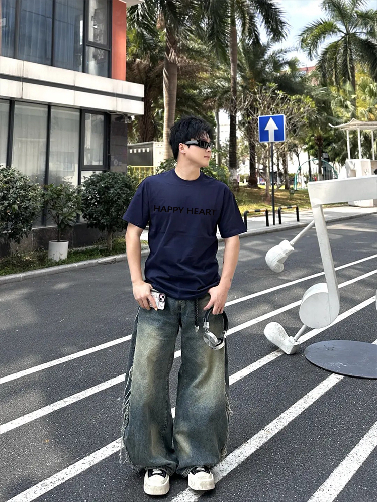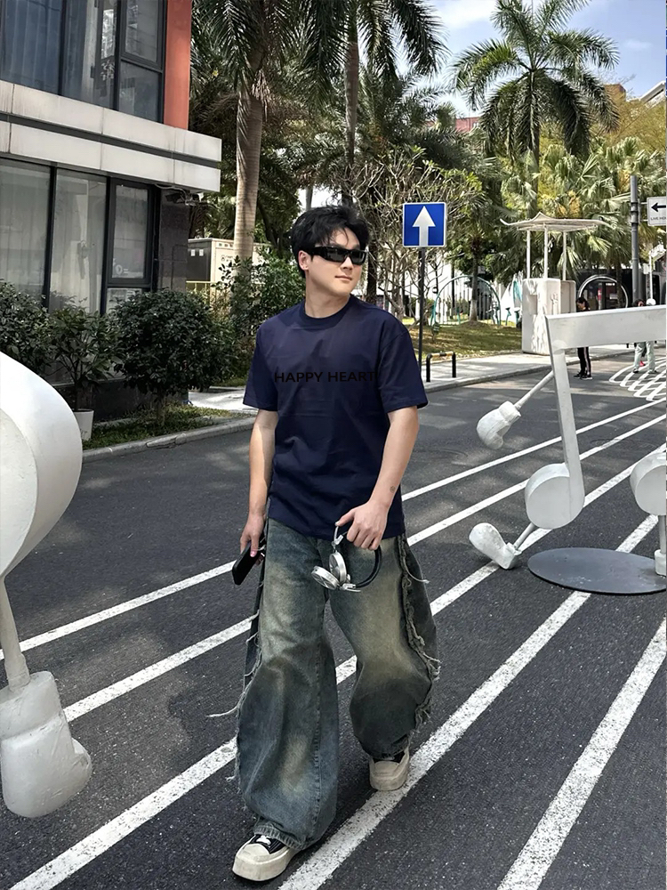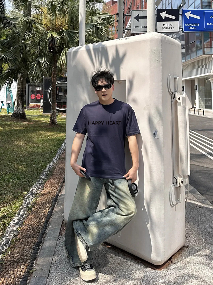 夏天的本命基础T恤找到了!查尔斯桃心这件纯色圆领短袖,打破普通纯色的单调,胸前一排简约英文字母印花,字体利落不浮夸,自带韩系松弛感,黄黑皮、白皮都能轻松驾驭