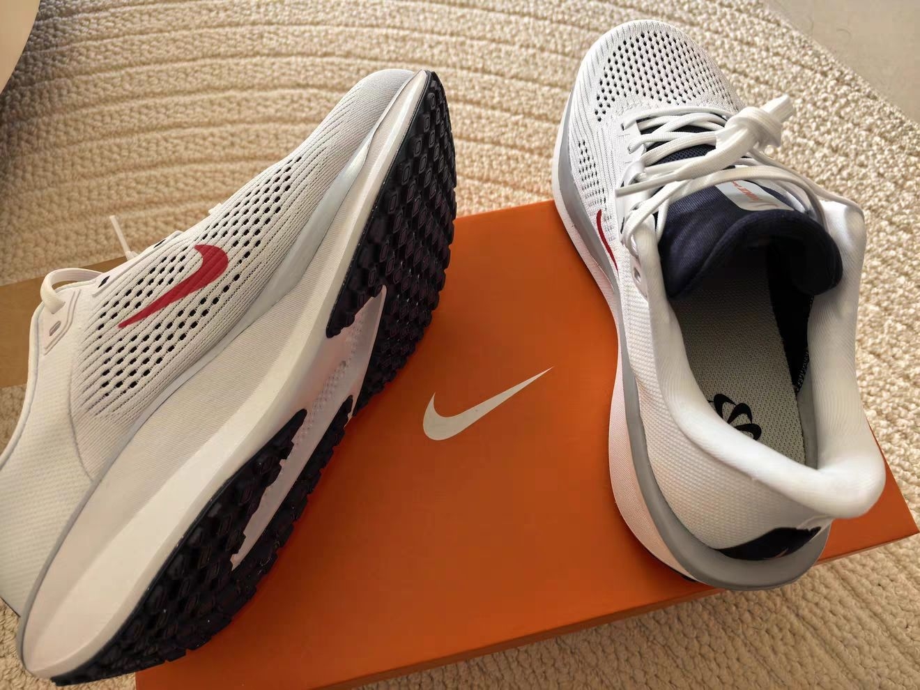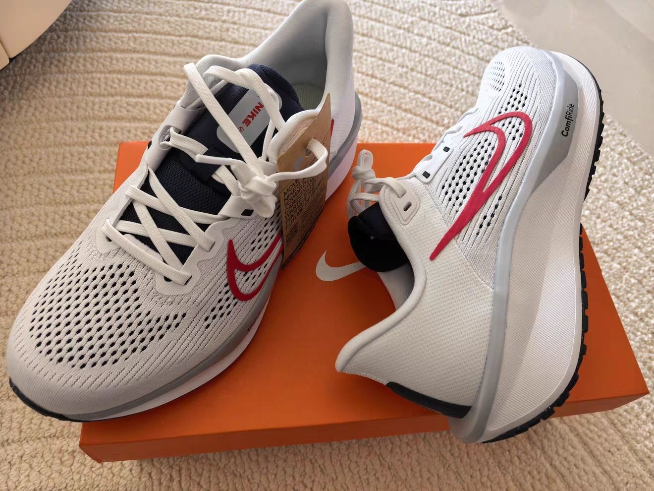 🏃♂️ Nike Quest 6 跑鞋|百元级入门缓震神鞋,通勤跑步双在线! ✨ 颜值担当|春日白红配色太吸睛 - 清爽白红撞色:基础白鞋身+醒目红勾,干净利落,自带少年感,不管是运动风还是日常休闲都能搭,配束脚裤/牛仔裤都好看。 - 透气网眼鞋面:大面积镂空网布,春天跑步不闷脚,夏天暴走也能保持干爽,脚汗星人狂喜! - 细节质感:鞋舌藏青撞色+后跟稳定片,做工扎实,走线工整,完全不像这...