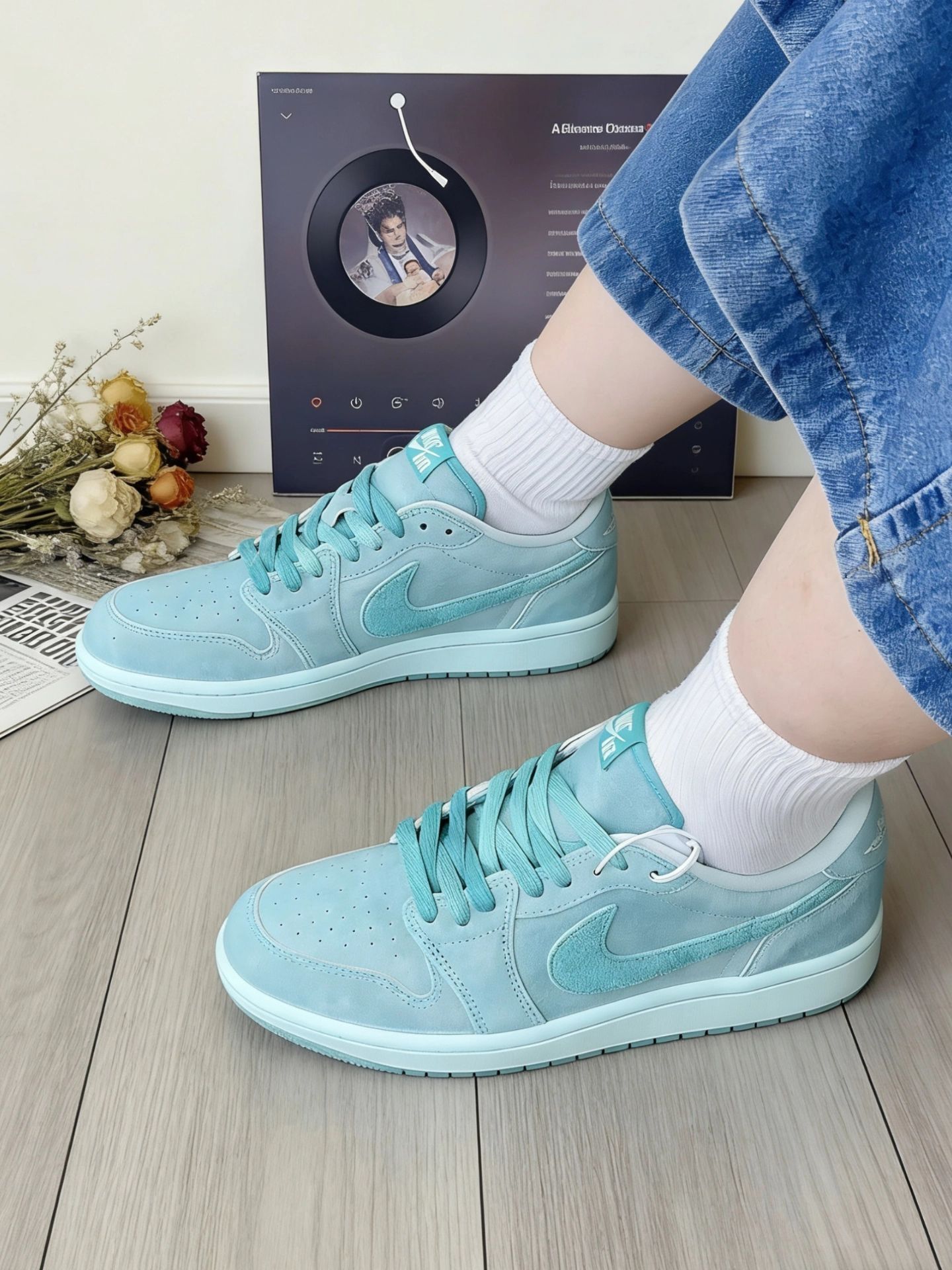 谁懂啊!春天的氛围感是这双Air Jordan 1 Low薄荷绿给的🌿 奶fufu的薄荷绿翻毛皮,像把融化的薄荷奶冻穿在了脚上,温柔又干净,完全不挑穿搭! 经典的AJ1 Low版型,鞋型利落不臃肿,上脚显脚小又显腿直,小个子也能轻松驾驭。 全翻毛皮材质质感拉满,摸起来软糯又有层次,搭配同色系鞋带,干净又治愈。 上脚软弹不磨脚,暴走一天也不累,不管是通勤、上学还是约会,这双鞋都能hold住,百元价位...