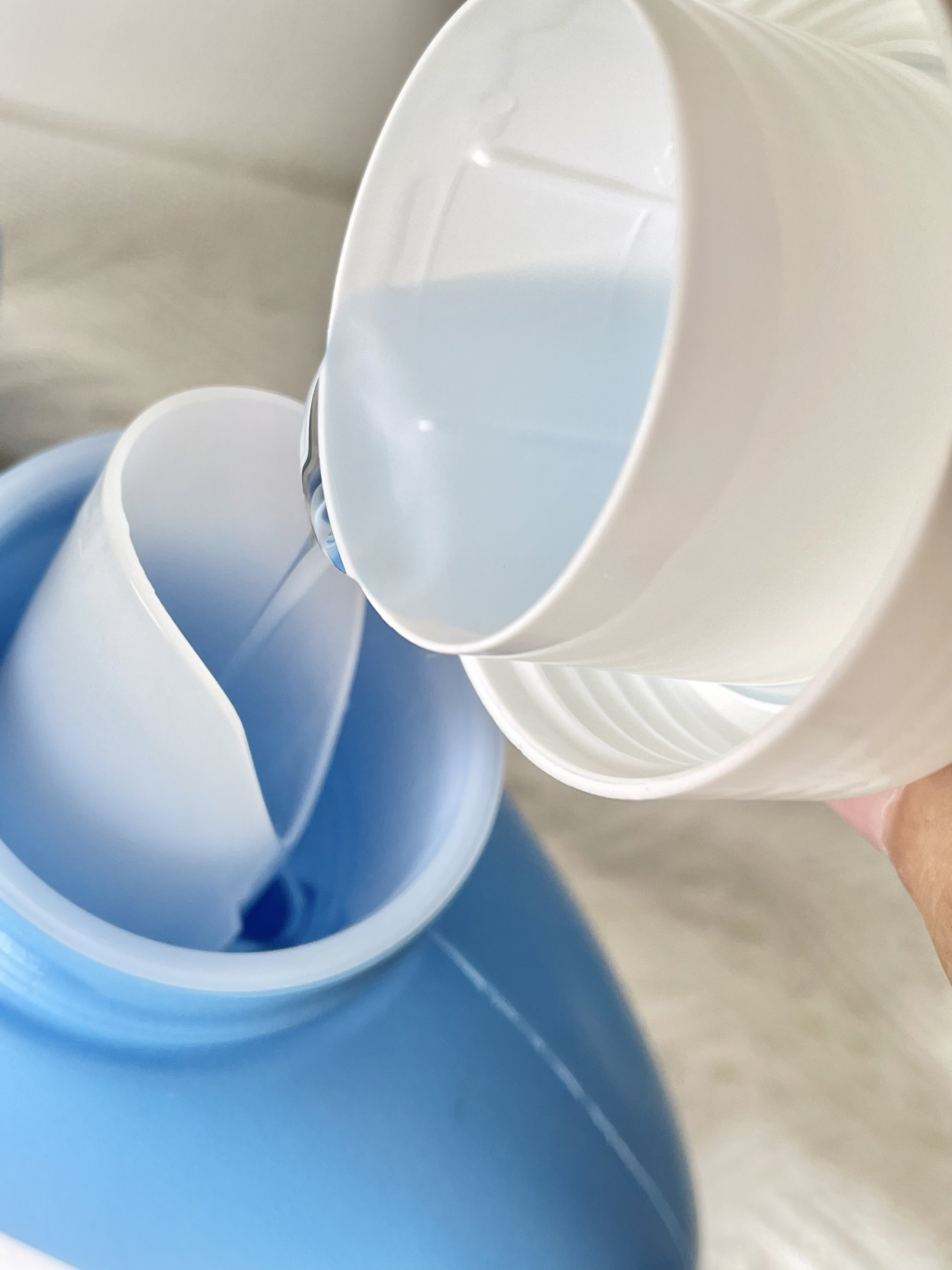每当春天就超爱穿白色系 但唯一的缺点就是会发黄 白衣服好难洗啊 还好有蓝月亮救场 泡一阵子后轻轻松松洗干净 还带有淡淡的清香 一次一小瓶盖就可以洗好多衣服了~~