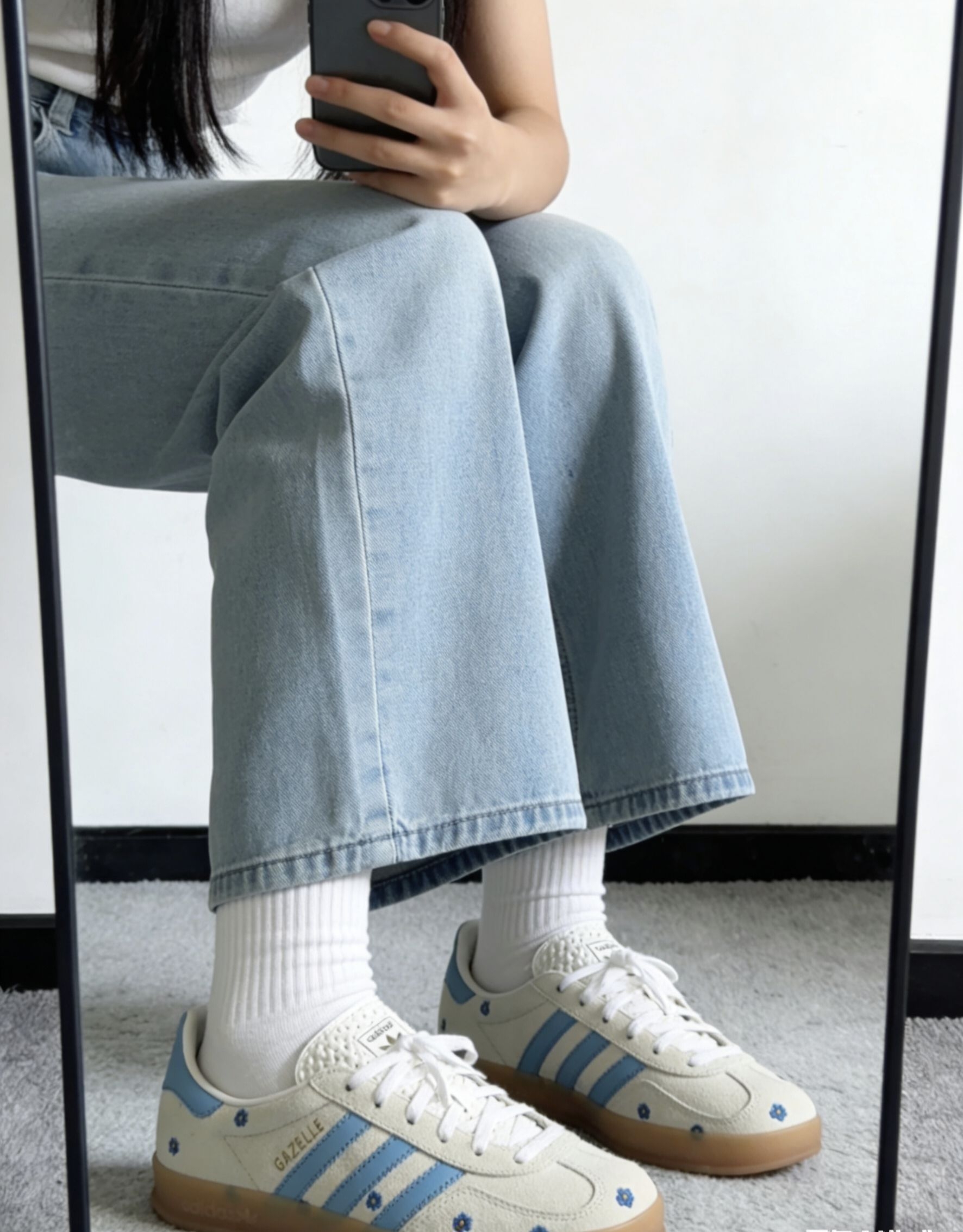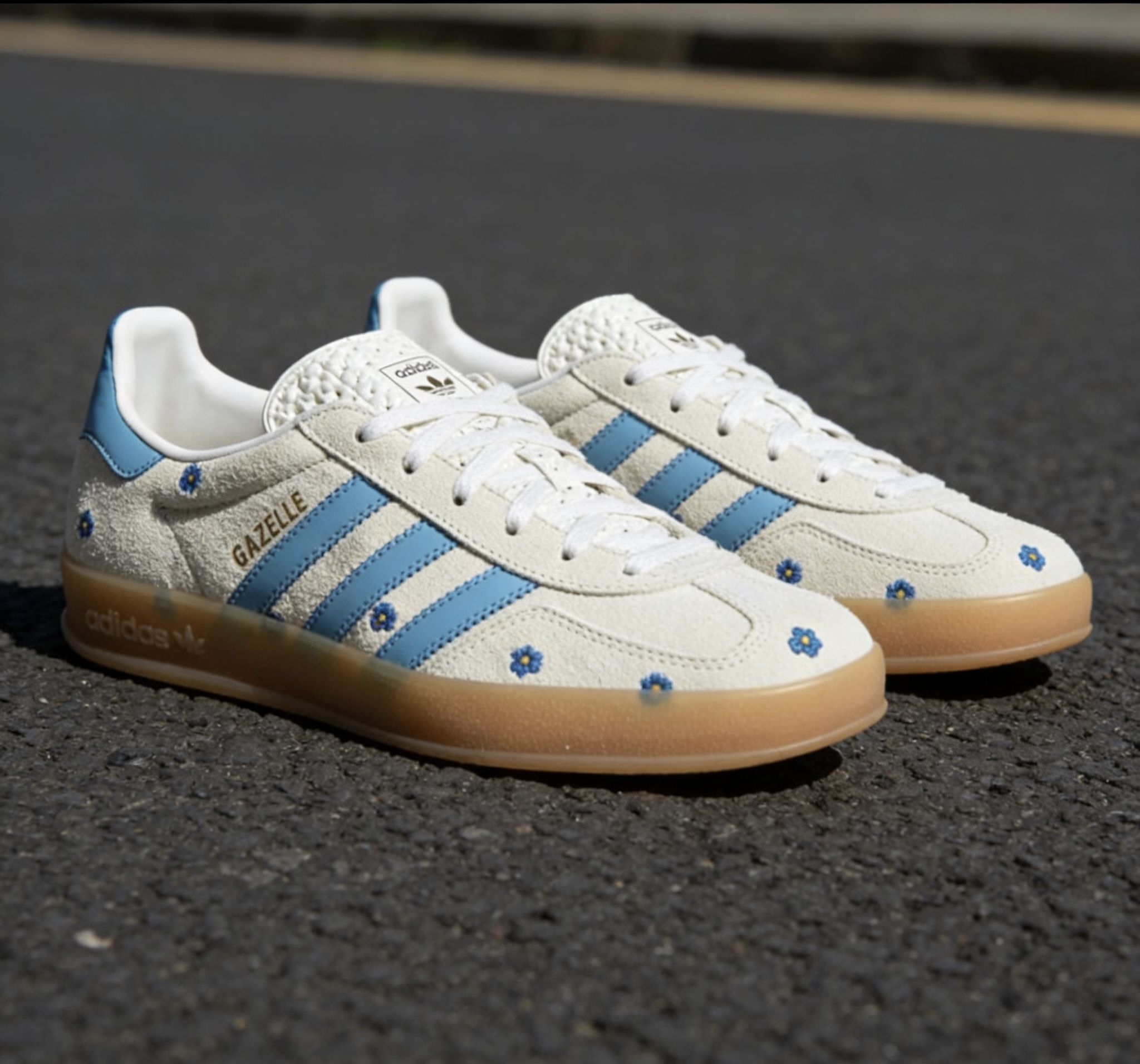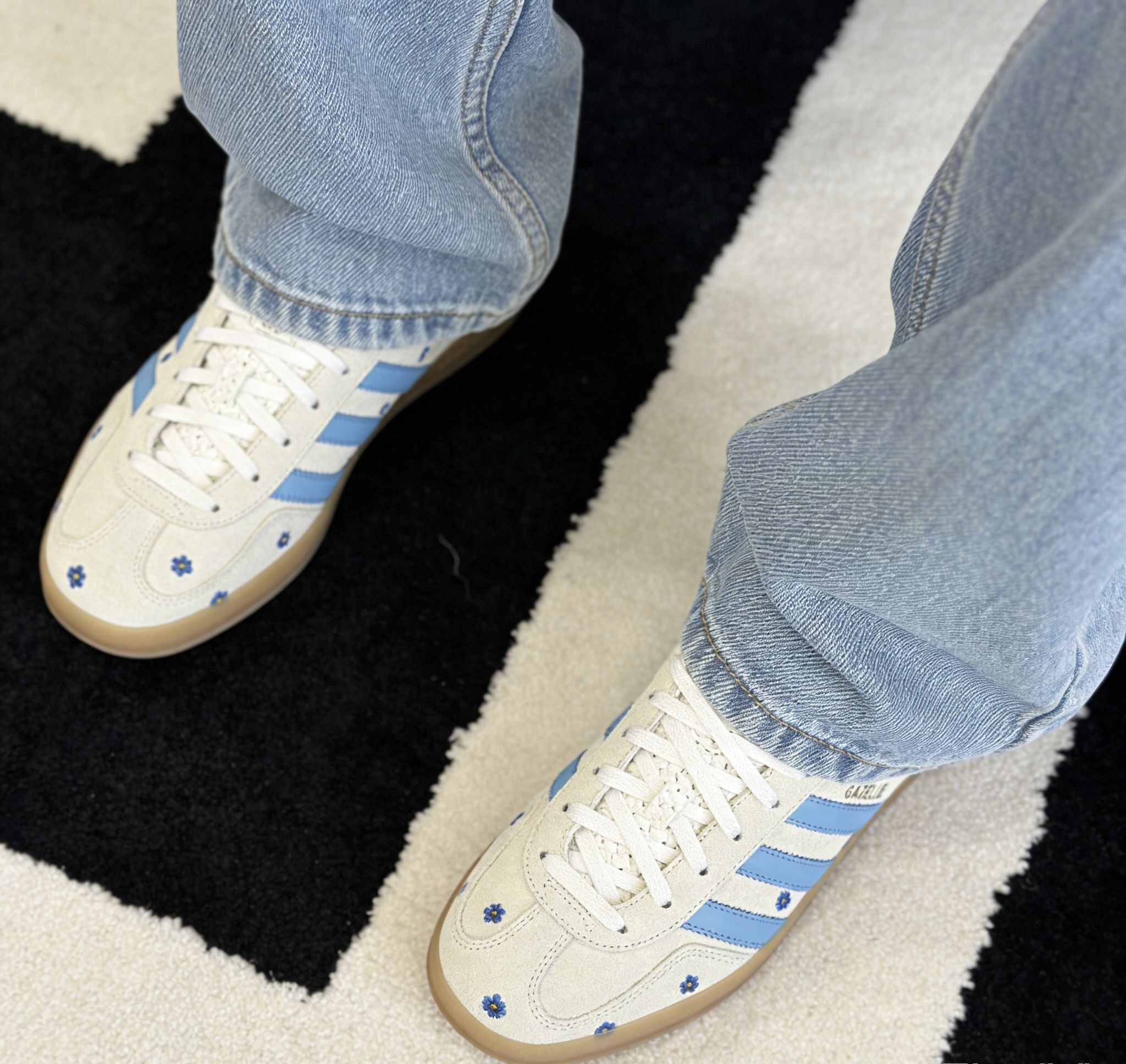 家人们!这双Adidas Gazelle直接戳中我的心巴🤩 浅米色绒面+浅蓝条纹,像把春天穿在脚上~小雏菊刺绣点缀,甜酷感直接拉满✨ 鞋舌的纹理设计、后跟的浅蓝撞色,细节控狂喜!透明棕鞋底自带复古滤镜,上脚舒服又显高级,搭配卫衣、牛仔裤都超有氛围感👟 复古回潮+小雏菊元素,这波设计真的yyds!在识货入手,质感绝绝子,潮流感直接拉满~这双鞋,甜妹酷盖都能hold住,冲就完事了!💥