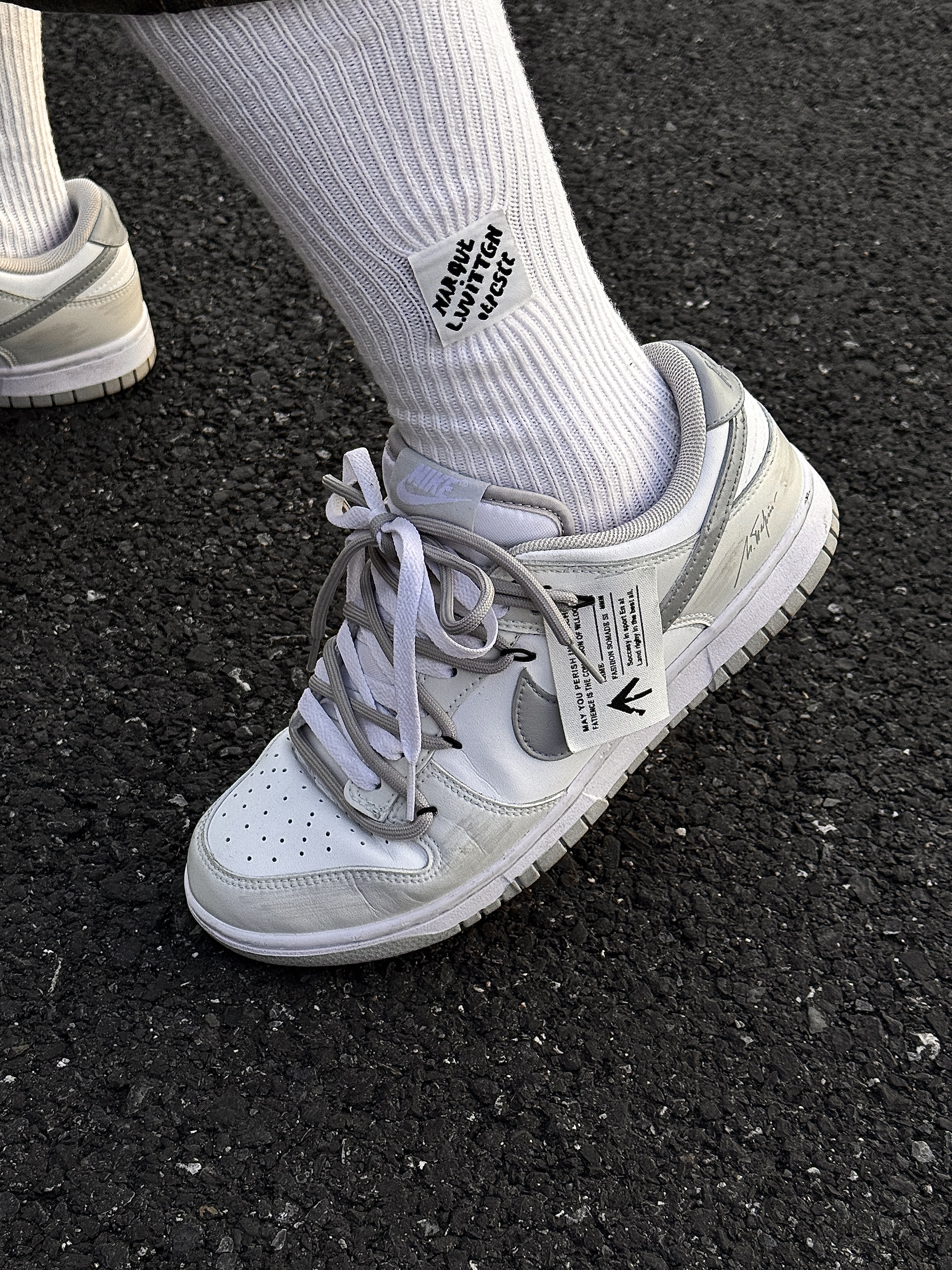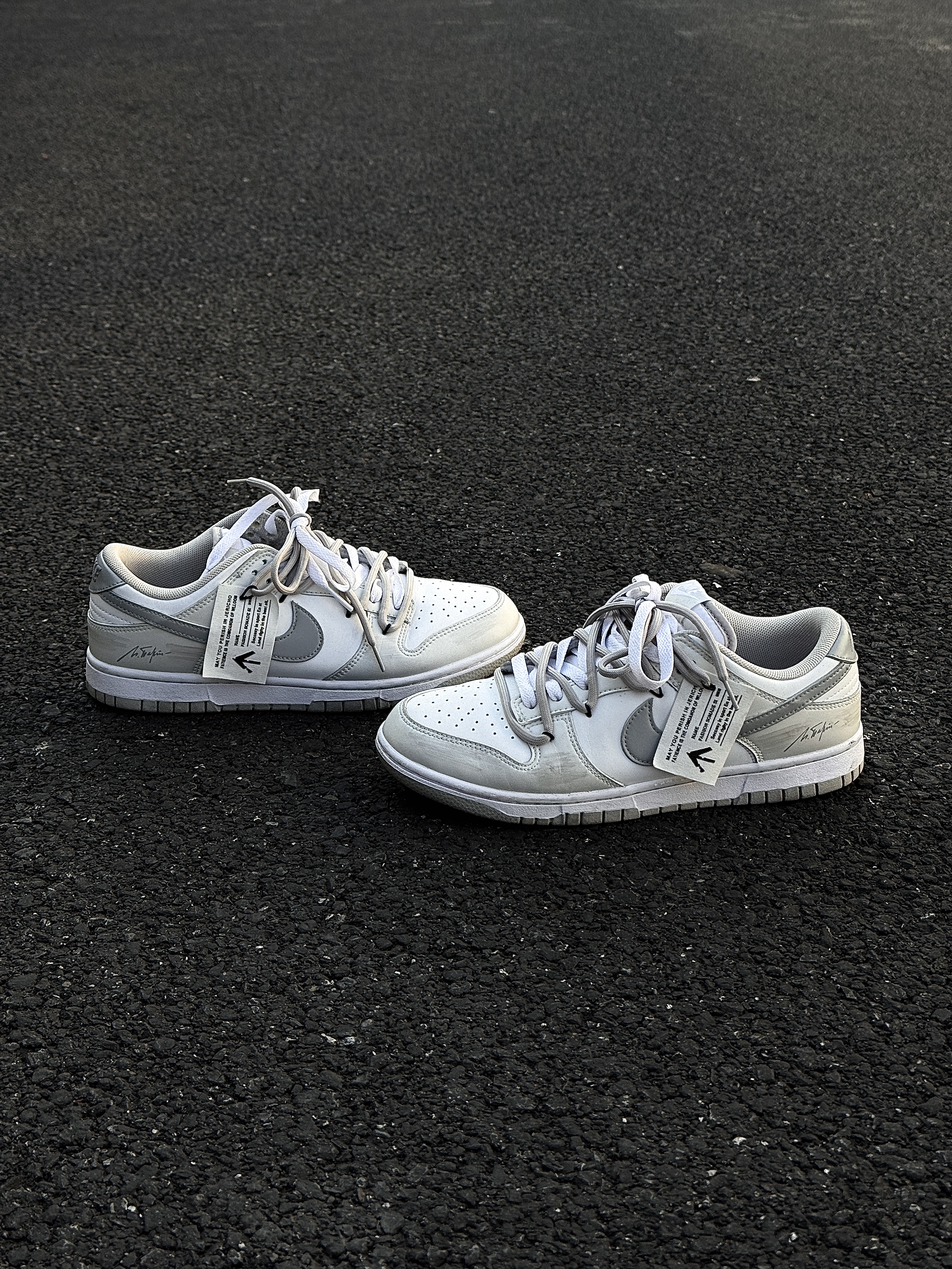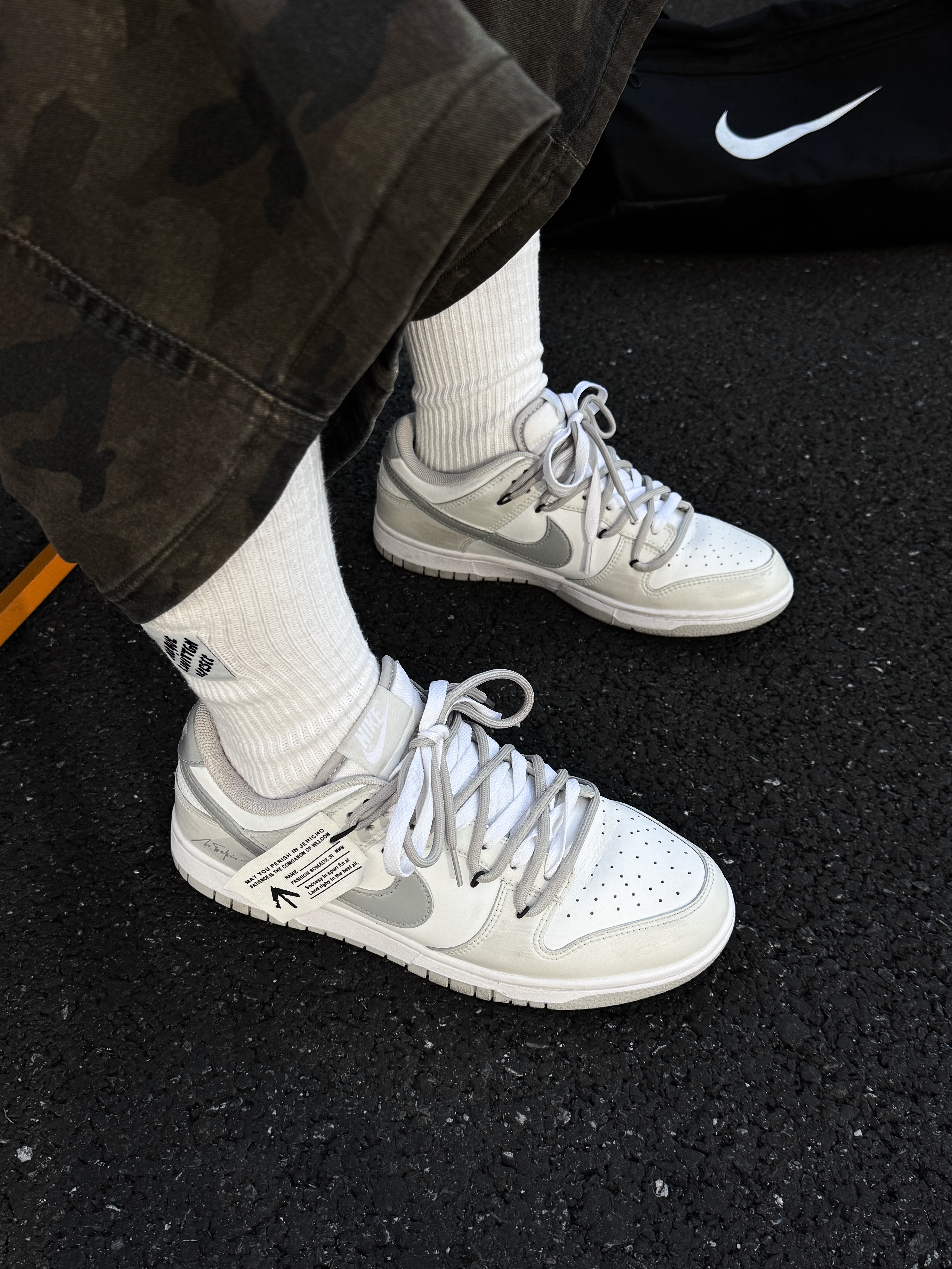 ~ 给大家分享一双 #Nike 的云影灰定制dunk👟 这双是做的比较耐看的灰白配色 Dunk这个鞋型真的是什么时候都不过时 双绑带➕标签🏷️挂件的设计比较ins风 在一些复杂的穿搭上面会有更好的点缀 而且干干净净的对象会很喜欢 像我平常不知道穿啥的时候就搭它出门🚪 尺码小建议: 徐哥平常穿的40这双40的刚好合适💡 #性价比从夯到拉 #单鞋拿捏春日氛围感 #就是个板鞋脑袋 #买双新鞋哄自...