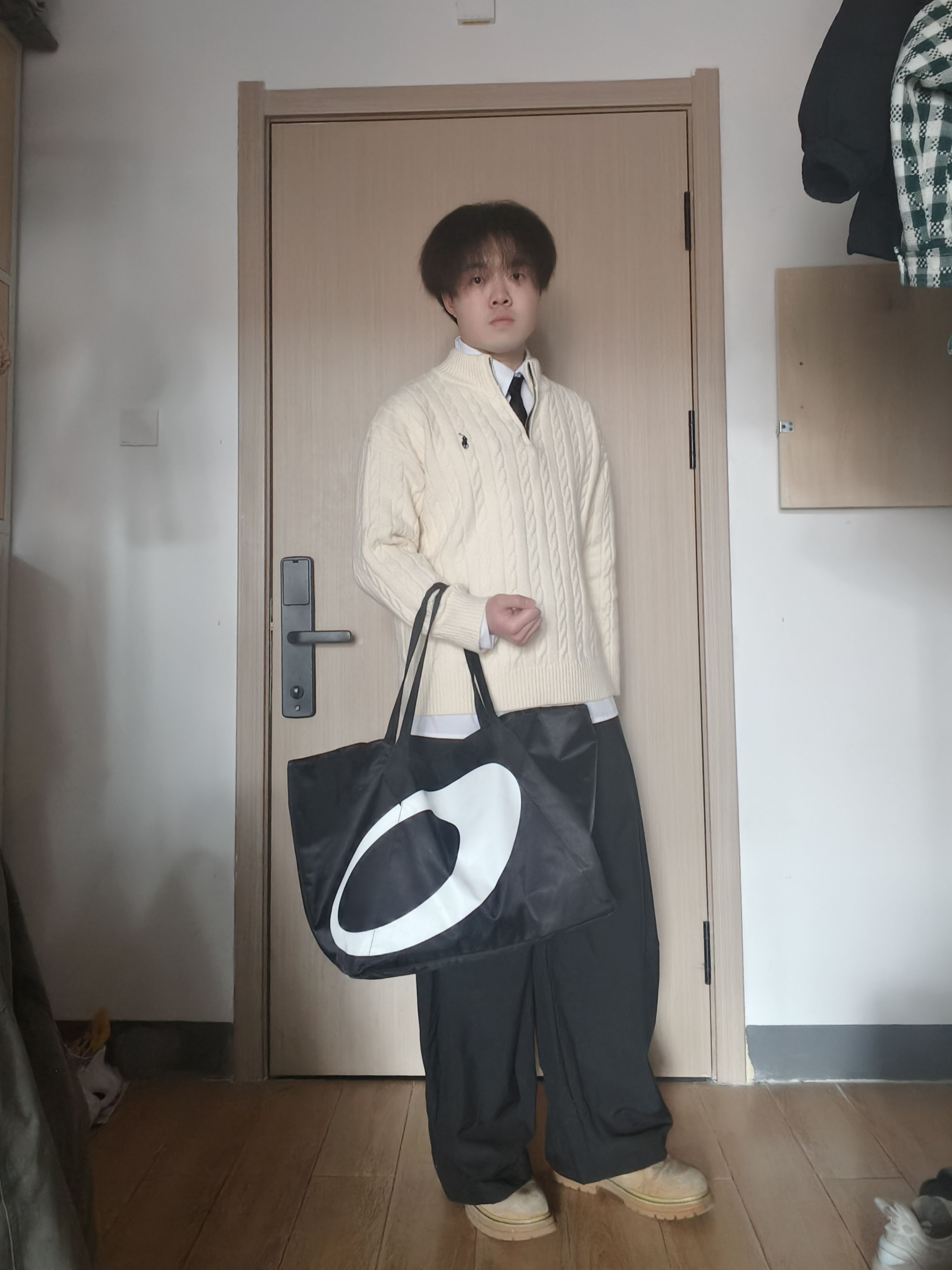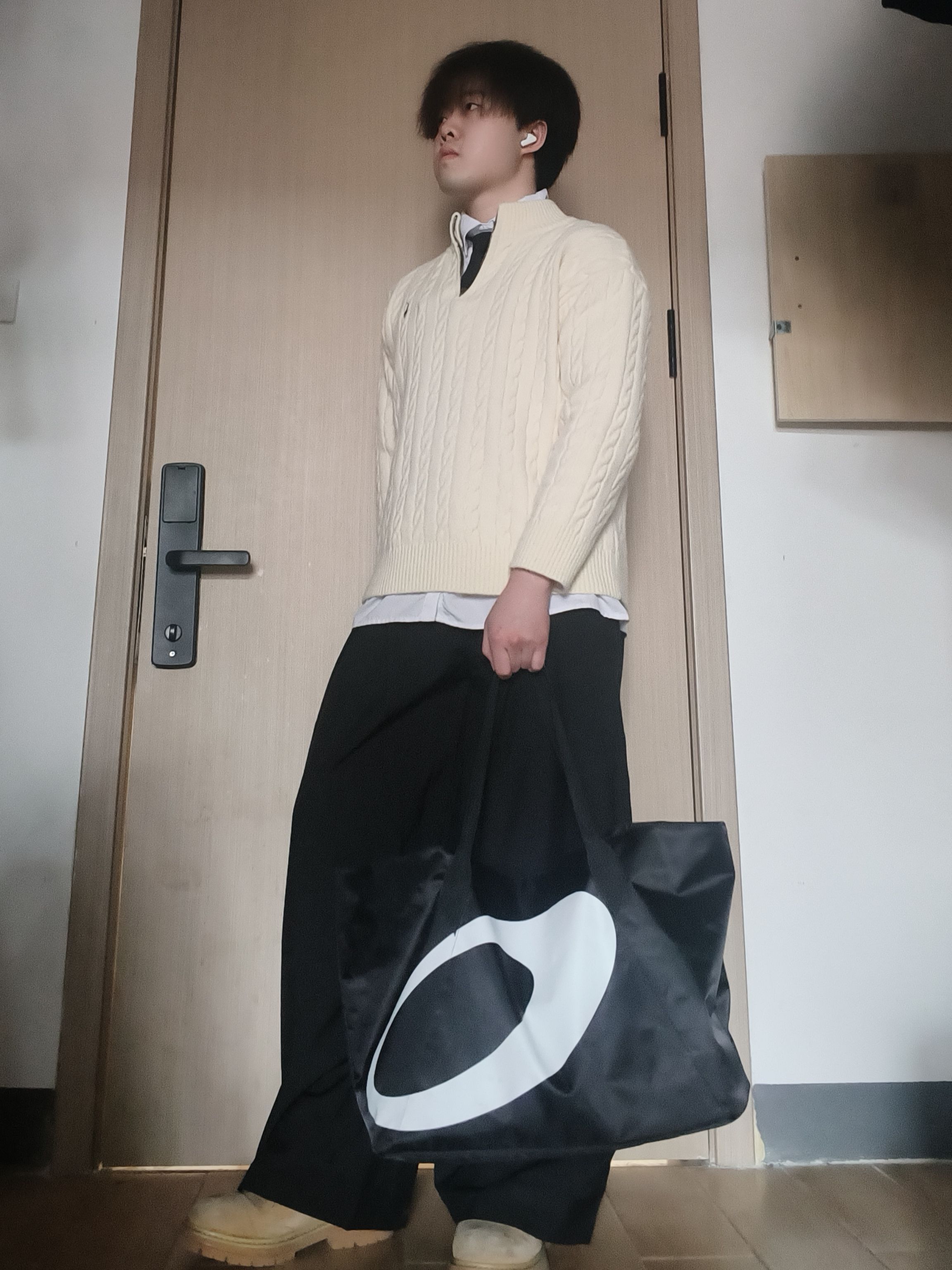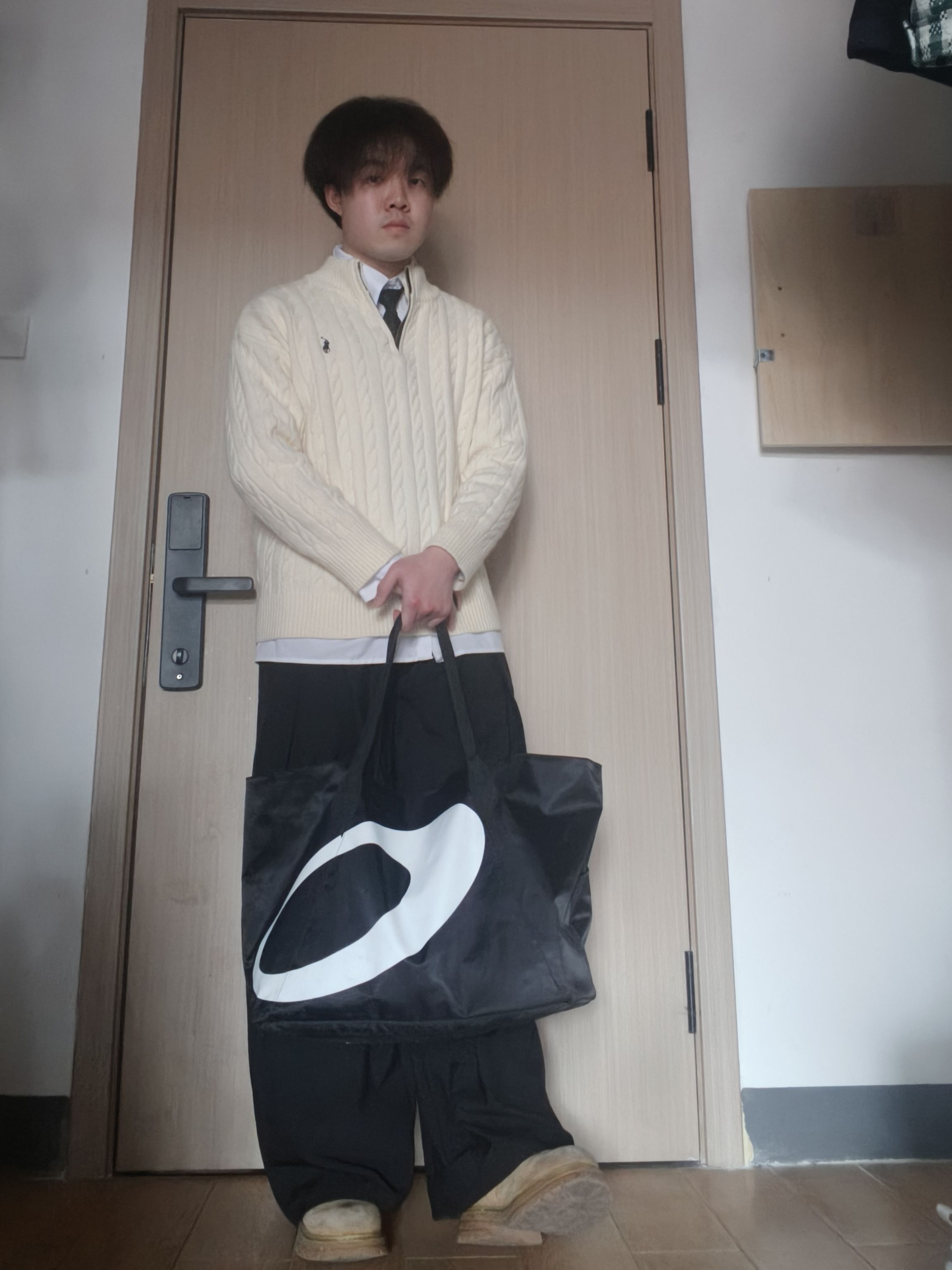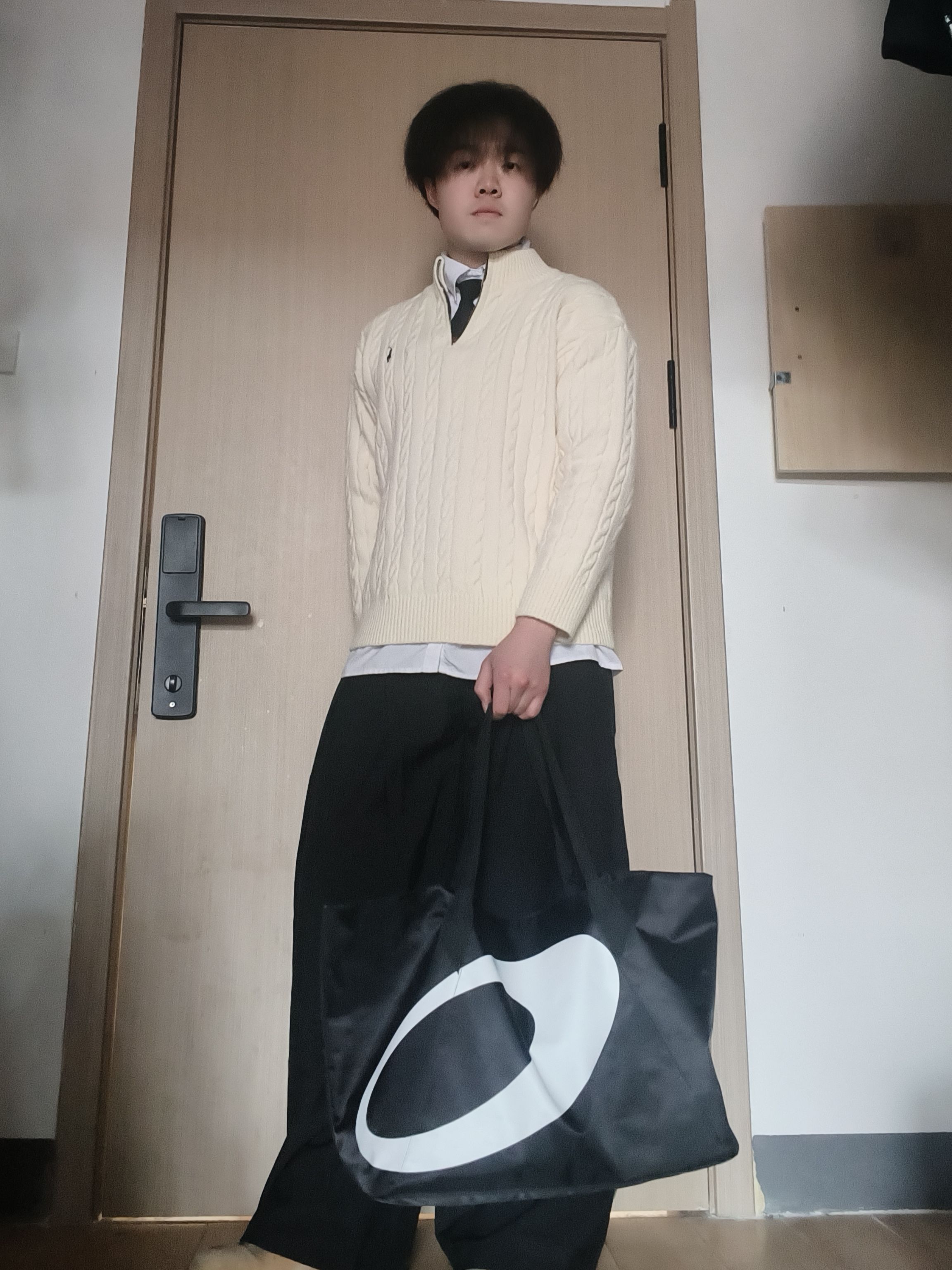 【学院风👔叠穿公式👐🏻|绞花毛衣+白衬衫+阔腿裤,175/60男生的氛围感😍】,由用户 豚的彘qP2 分享,来自河北。这是一篇来自识货社区的真实用户分享笔记。