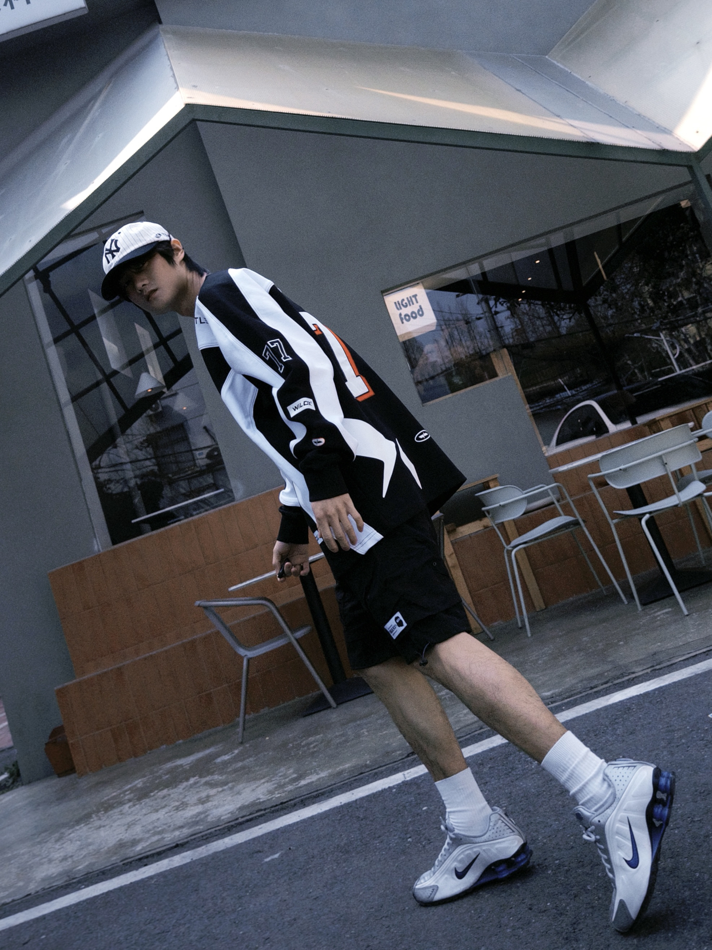 早春cityboy穿搭公式📝 黑白撞色球衣+机能短裤+复古球鞋 美式街头感直接拉满💥 球衣面料摸起来很有分量,不是那种薄薄的廉价感 版型是宽松落肩款,对各种身材都很友好 我175穿M码刚好盖过屁股,女生穿的话下衣失踪穿法也超绝😆 男生这样穿,清爽又有少年气~ #解锁球衣潮搭 #潮人的春天来了 #春季酷感穿搭 #松弛美式风 #穿上自己喜欢的衣服