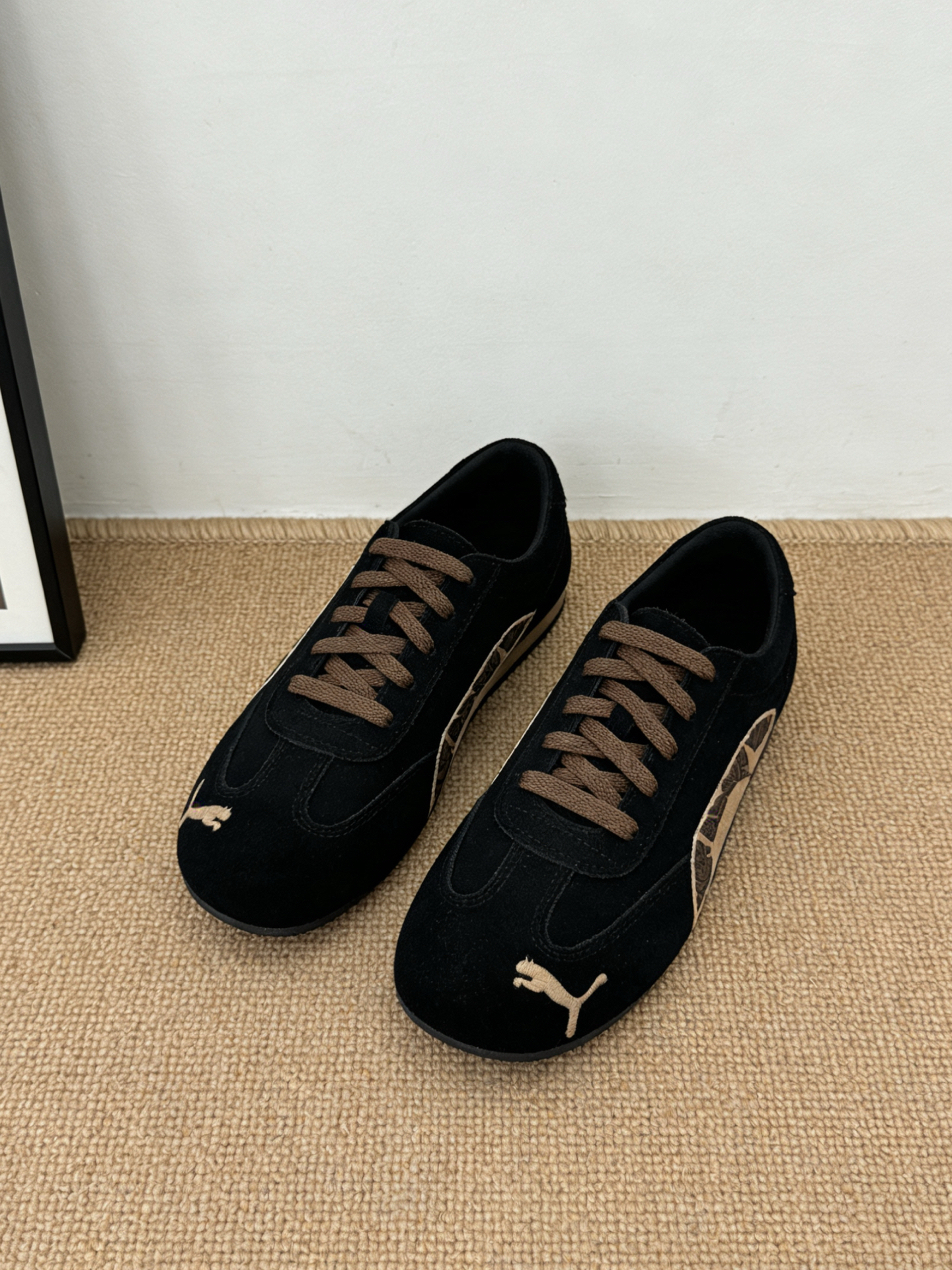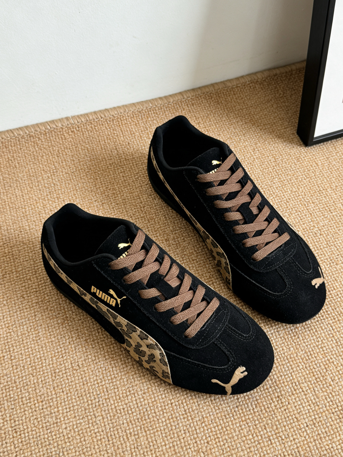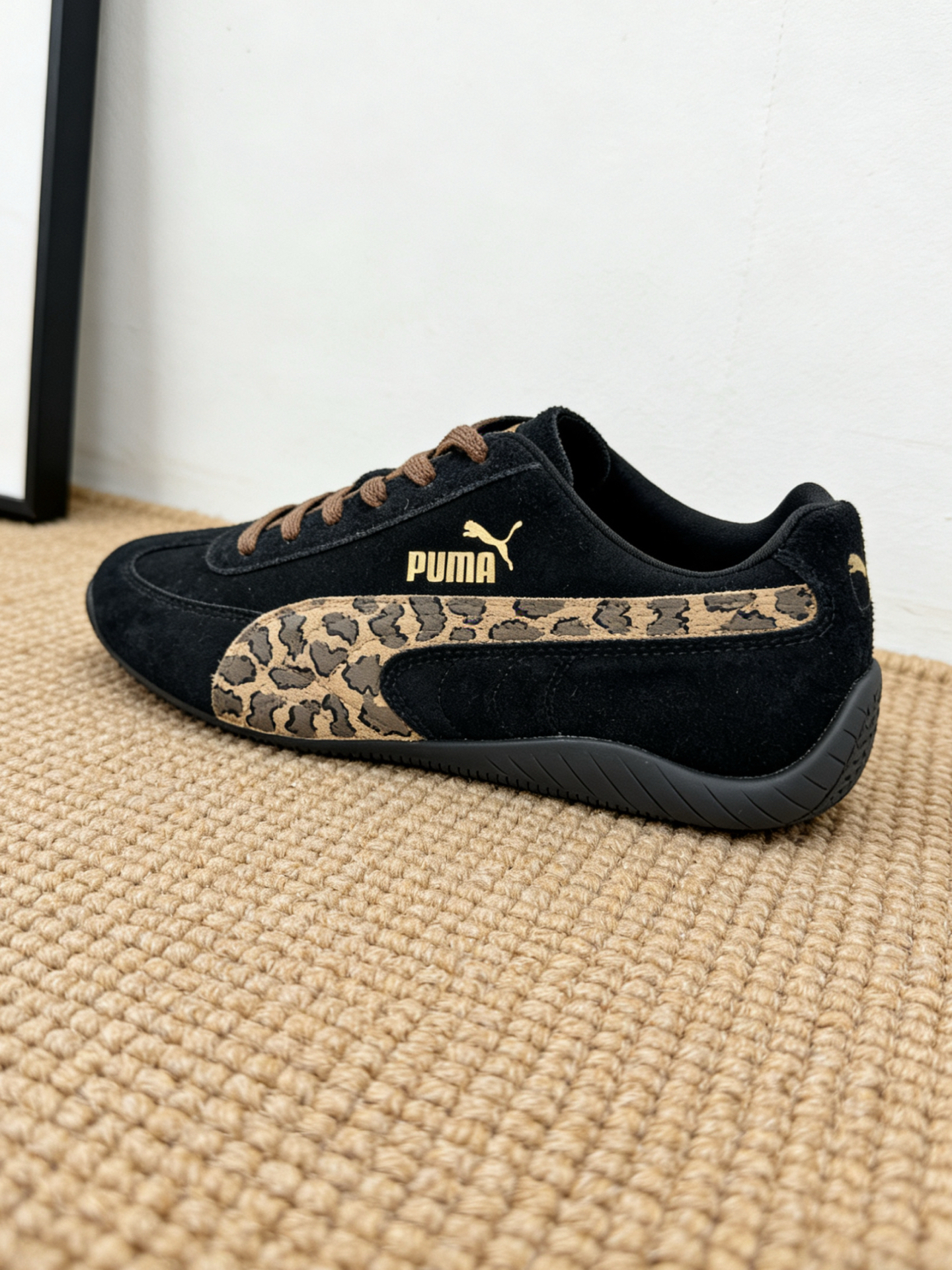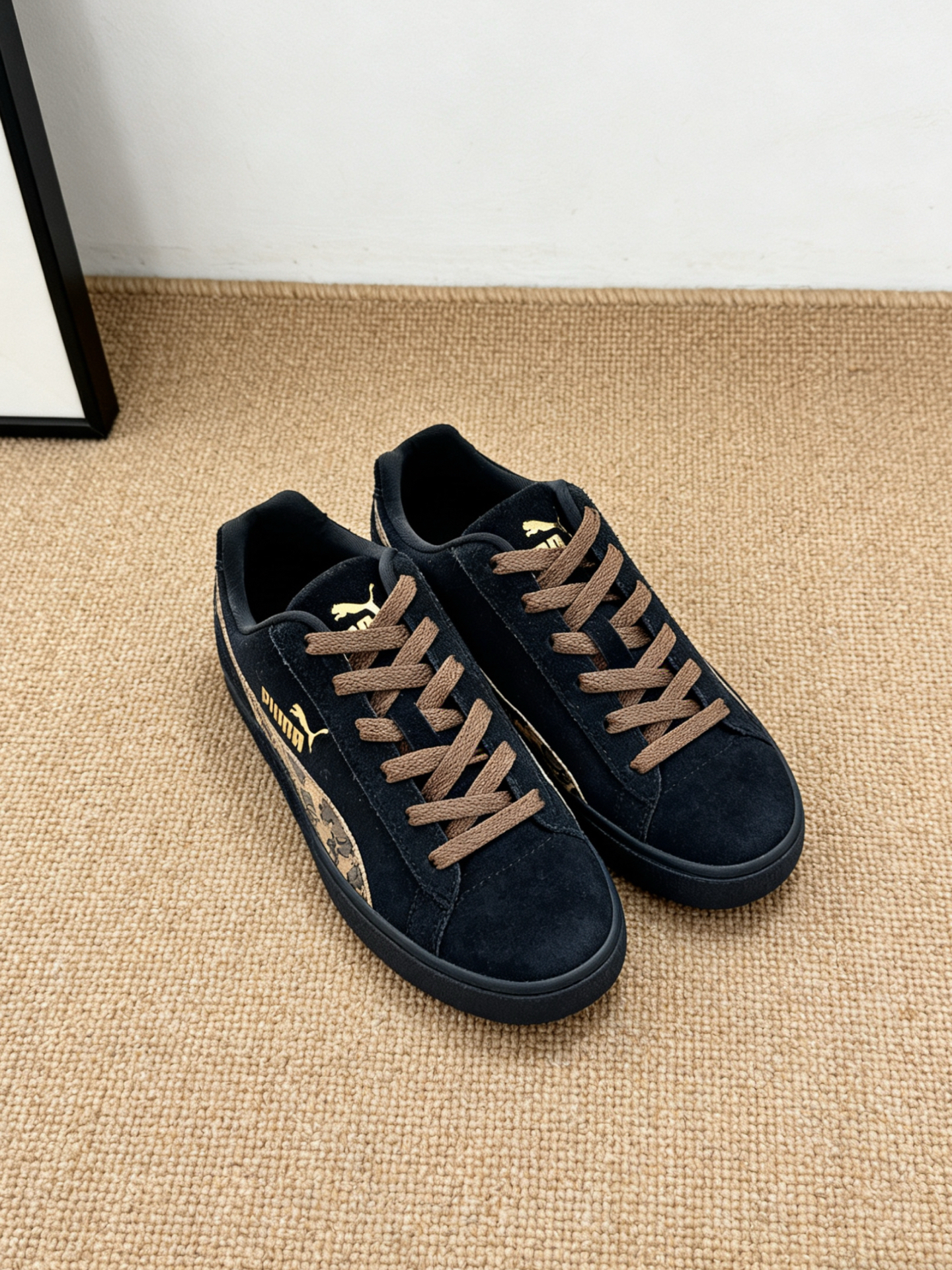 谁懂啊!这双PUMA真的长在我的审美点上!🖤 经典黑麂皮鞋面自带复古滤镜,侧边豹纹拼接直接把野性氛围感拉满,棕色鞋带和金色logo细节拉满,上脚秒变美式复古辣妹! 软乎乎的麂皮摸起来质感绝了,鞋型显瘦还不磨脚,通勤、约会、逛展都能穿,搭牛仔裤、百褶裙都超绝! 秋冬氛围感穿搭直接靠它封神,姐妹们闭眼冲!🐆