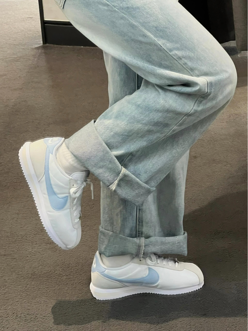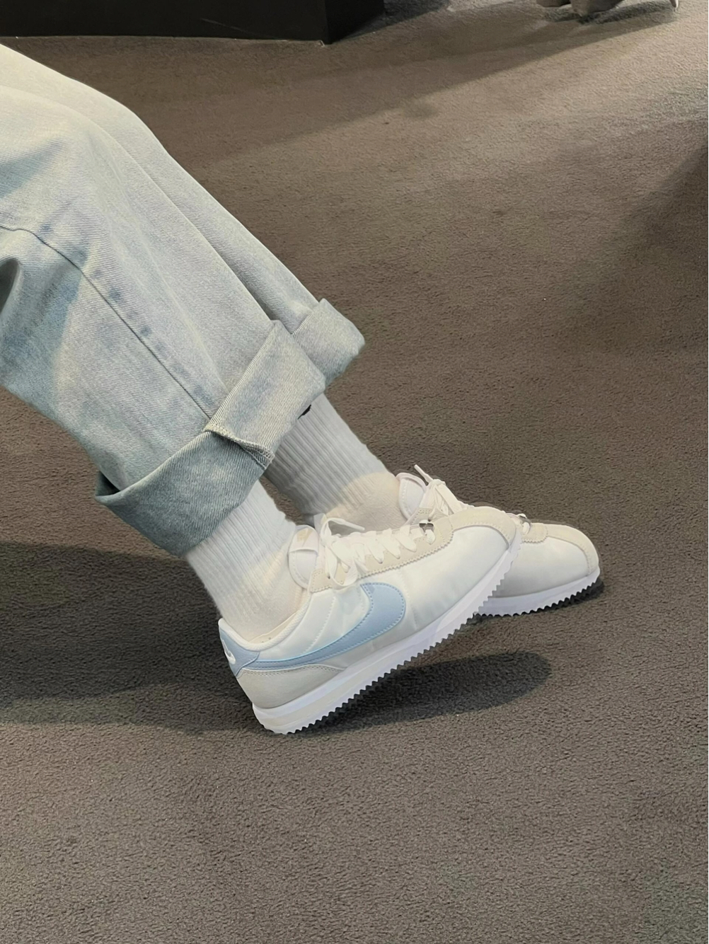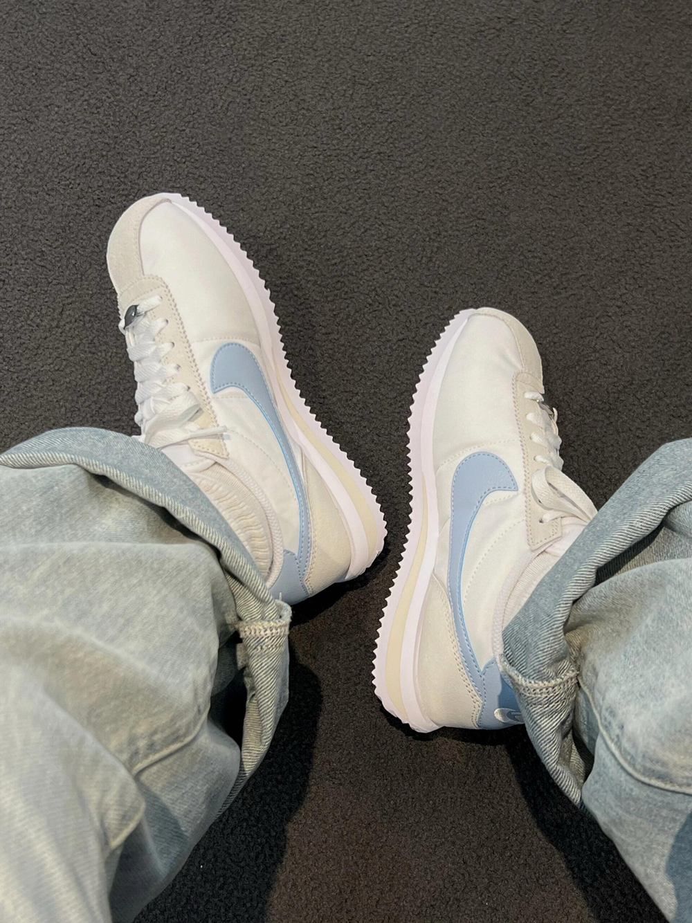 谁懂啊!这双Nike阿甘鞋也太温柔了吧🥹 奶白鞋身搭配浅蓝Swoosh,像踩了一杯海盐汽水,清清爽爽的春日感直接拉满✨ 经典阿甘鞋型自带复古滤镜, 尼龙鞋面+翻毛皮拼接,质感柔软又透气, 锯齿大底防滑又显高,走路稳稳当当超舒服。 不管是配卷边牛仔裤、工装裤还是运动裙, 都能轻松拿捏干净少年感,显白又减龄, 春夏穿它出门,回头率直接爆表, 温柔党和复古党闭眼冲就对了!
