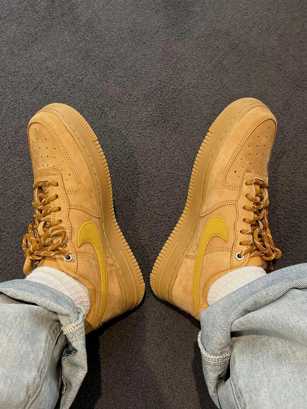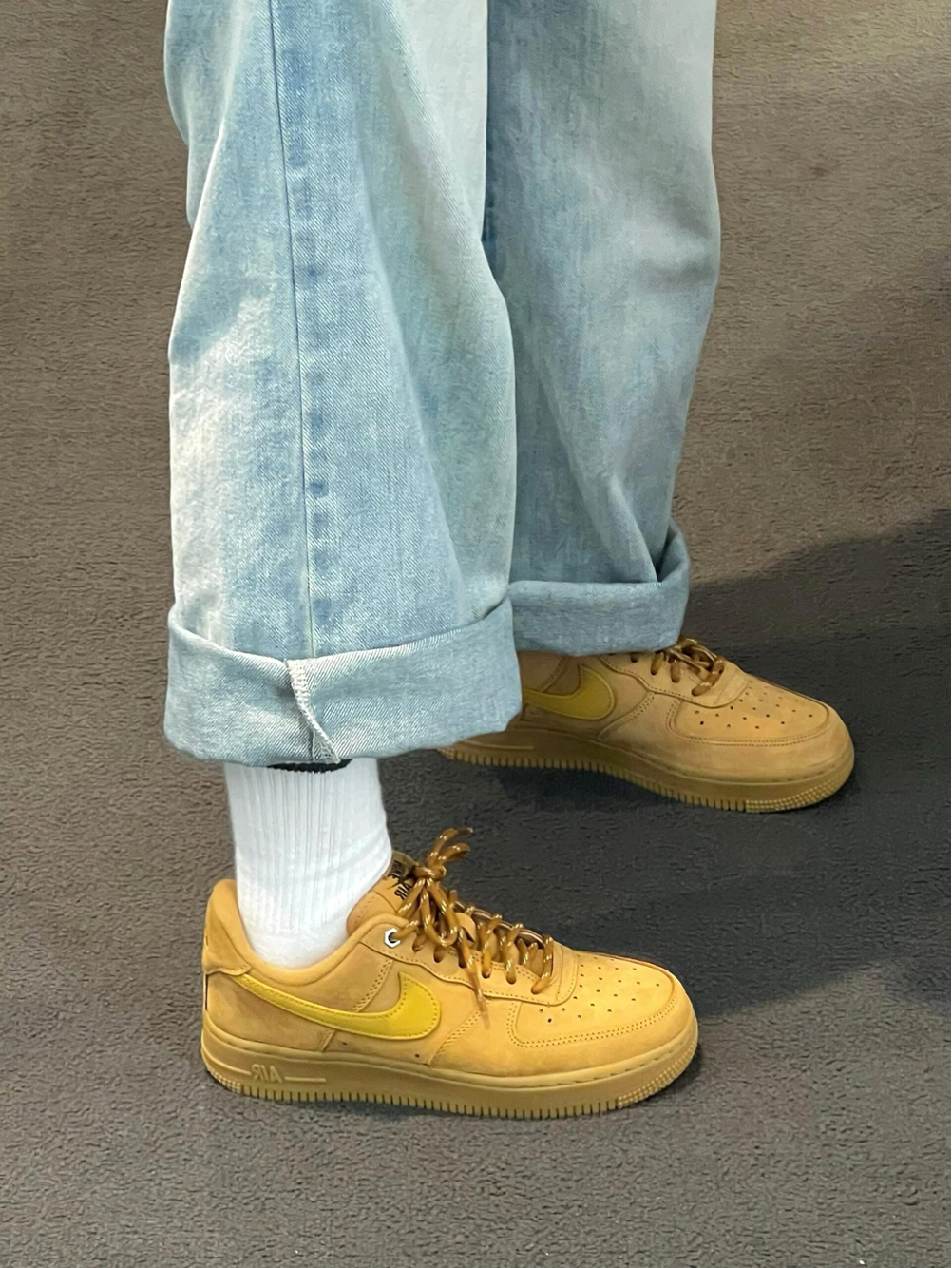 谁懂啊!这双小麦色Air Force 1才是秋冬穿搭的天花板! 暖调小麦色自带复古滤镜,像把秋日阳光踩在脚下,美拉德氛围直接拉满🍂 细腻翻毛皮材质质感拉满,耐穿又显高级, 同色系生胶底+焦糖色鞋带,细节控狂喜, 经典空军鞋型百搭不挑人,不管是配卷边牛仔裤、工装裤还是卫裤, 都能轻松穿出随性又硬朗的少年感。 脚感柔软舒适,久穿不累,男女同款超适合情侣同穿, 秋冬鞋柜必入款,复古党和百搭党闭眼冲就...