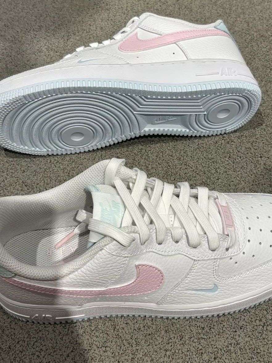 谁能拒绝粉蓝渐变的Nike Air Force 1啊!奶白鞋身+淡粉勾边,鞋底还带点清透浅蓝,上脚秒变温柔学姐,春天配牛仔裤、小裙子都超绝,百搭又显脚小,日常通勤或约会穿都很合适,经典空军版型+马卡龙配色,颜值和舒适度双在线,真的越看越爱~
