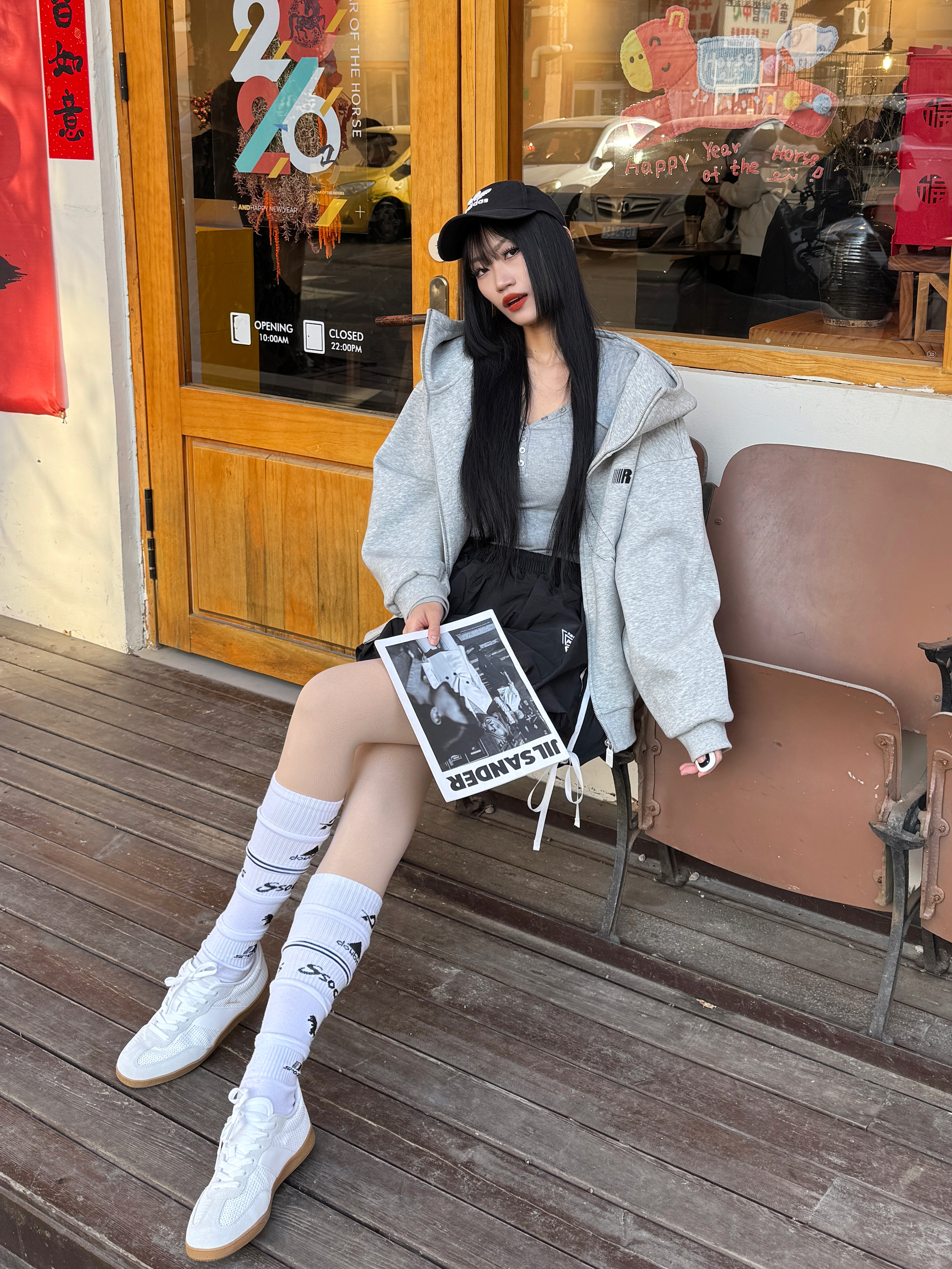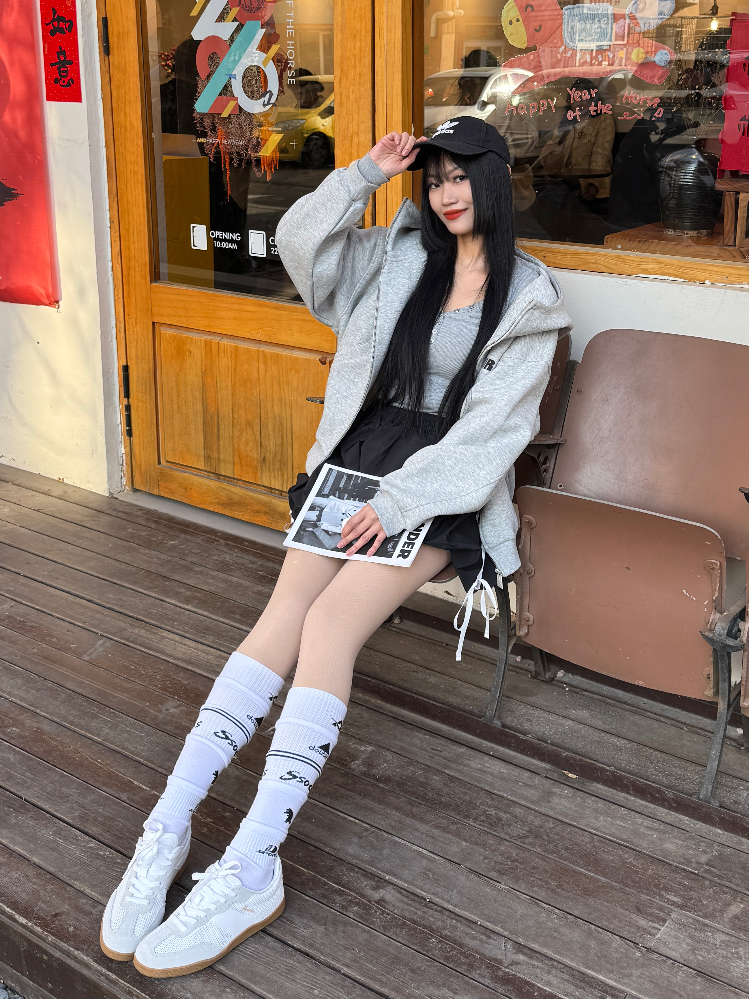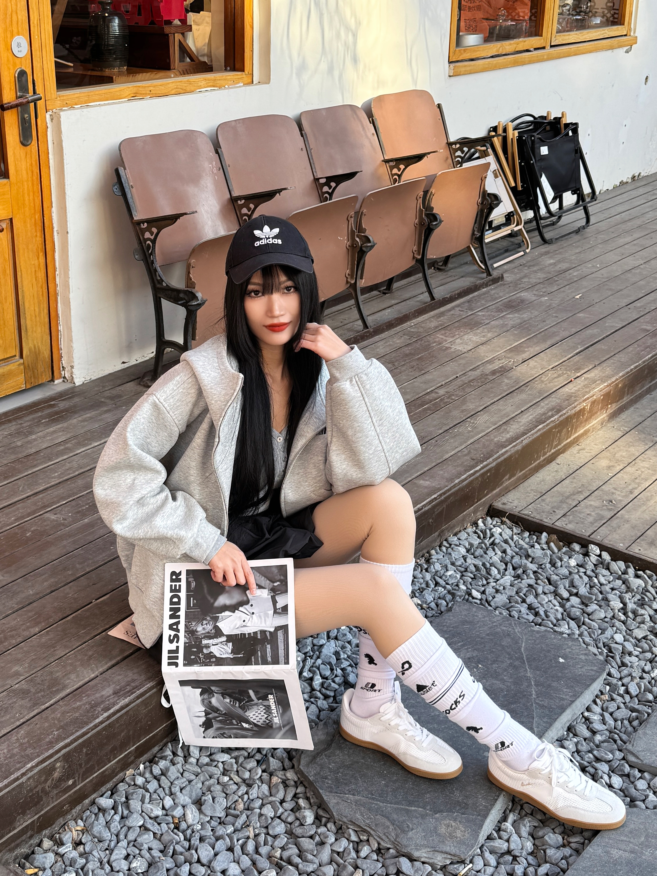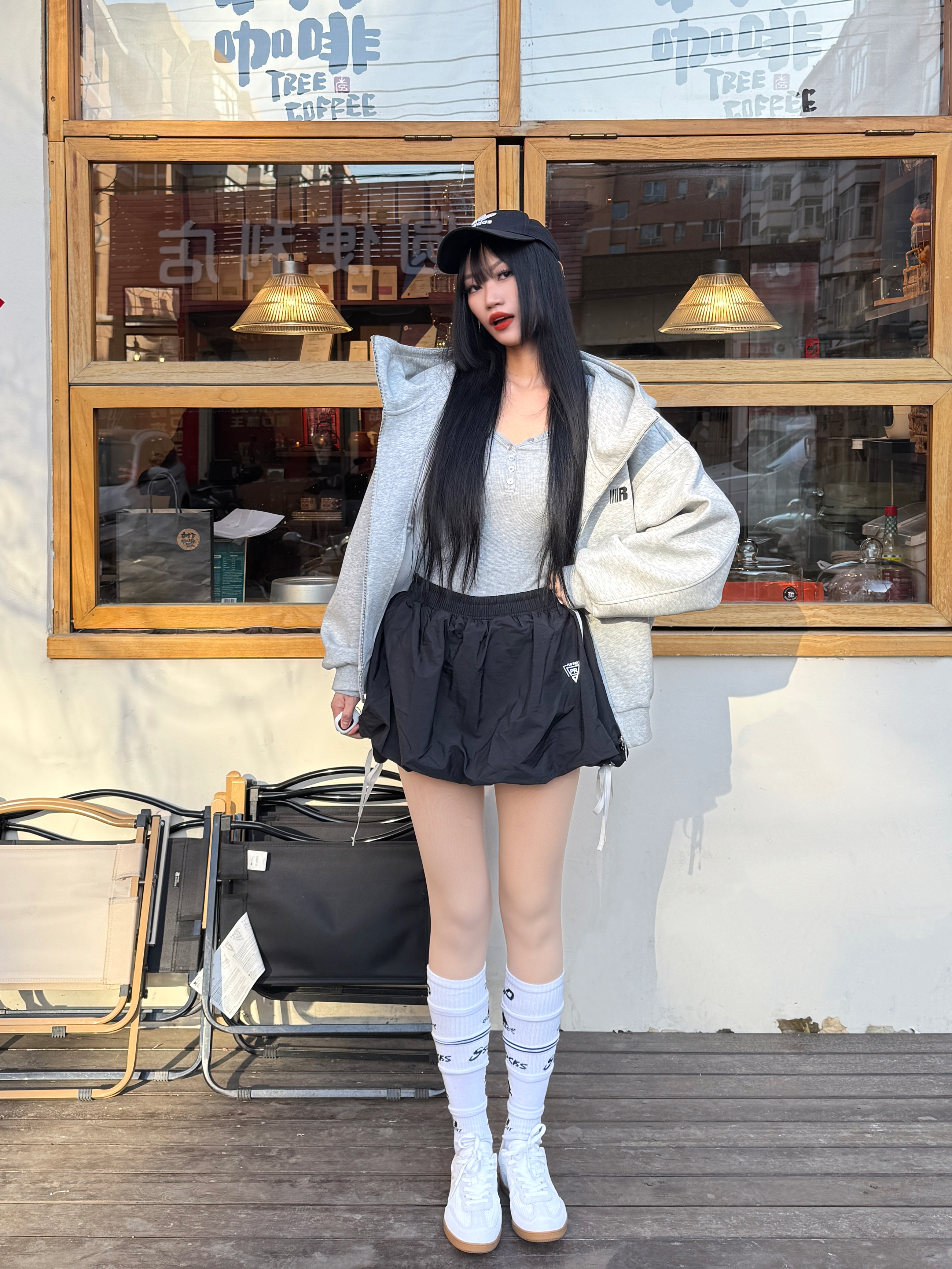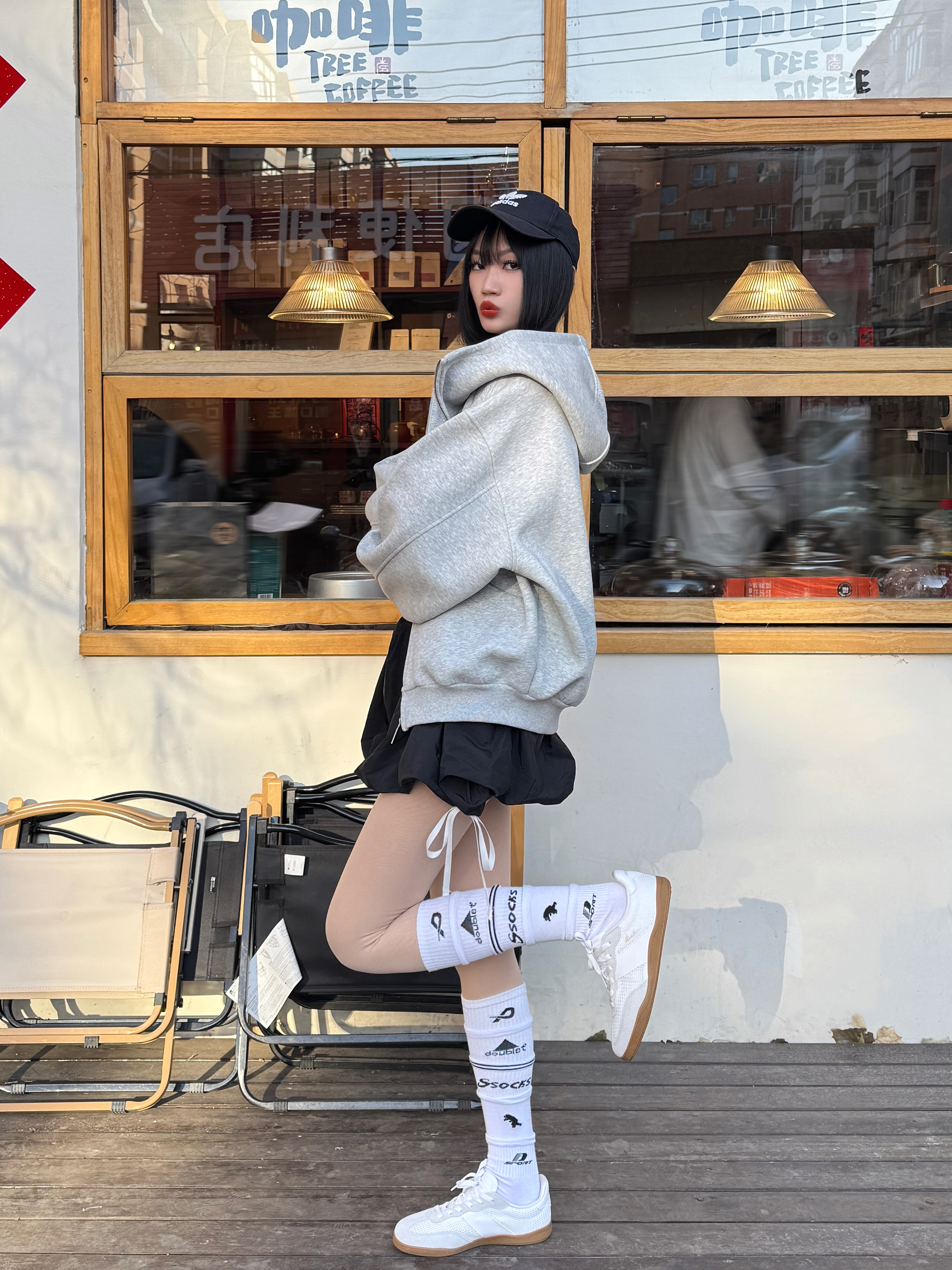 薄底鞋和春天好搭呀,给大家分享我的氧气感轻运动风穿搭喽,快来一起👀看看吧~ 🧾今日份穿搭分享: 黑色鸭舌帽➕灰色卫衣外套➕灰色打底➕黑色花苞裙➕ 乔丹 白色德训鞋=氧气轻运动风穿搭ootd。