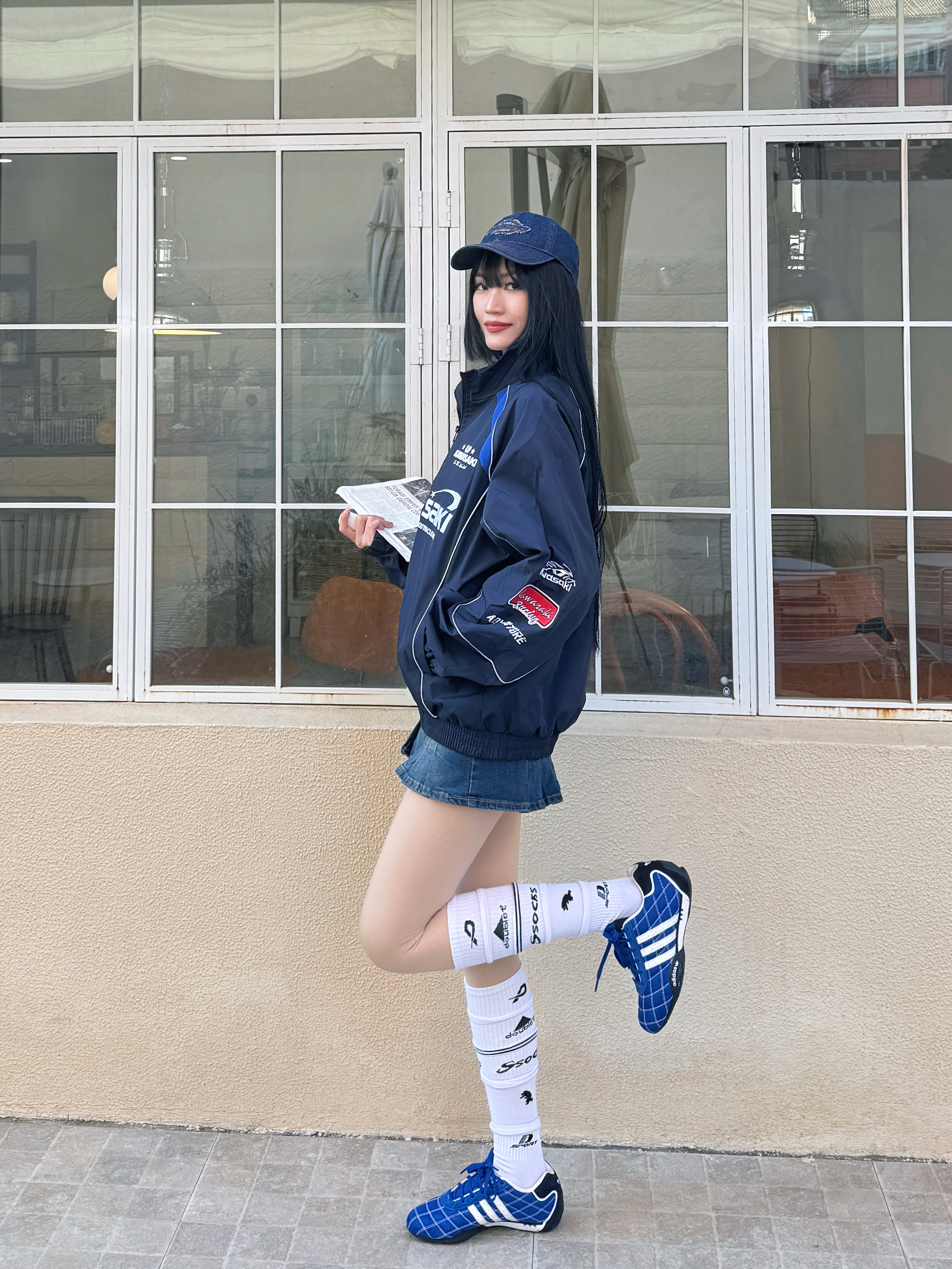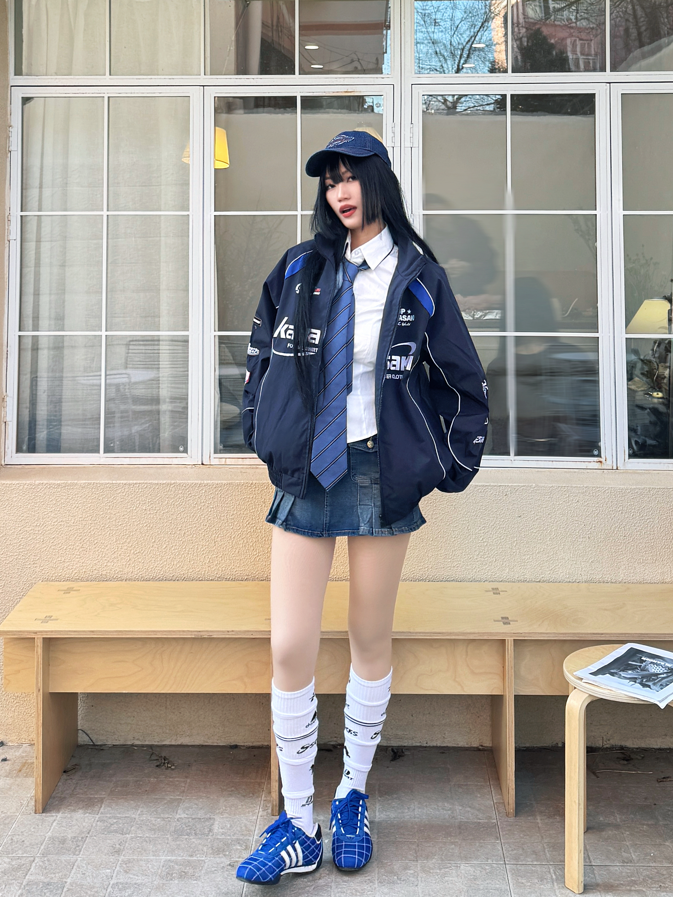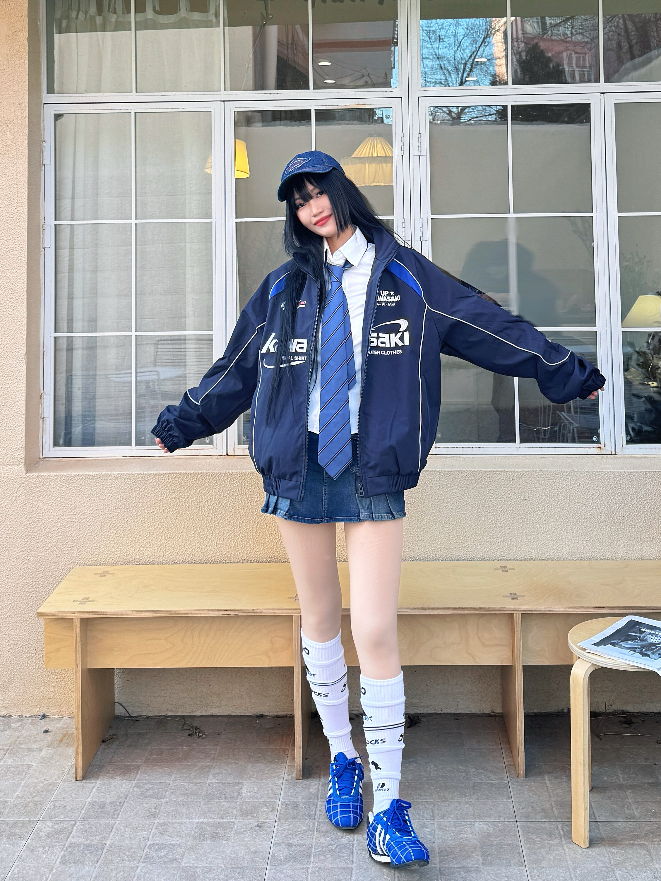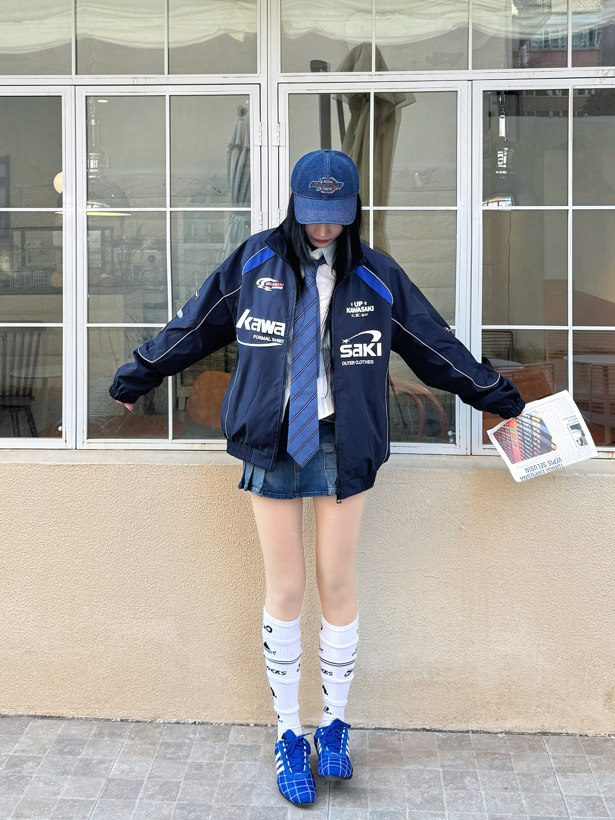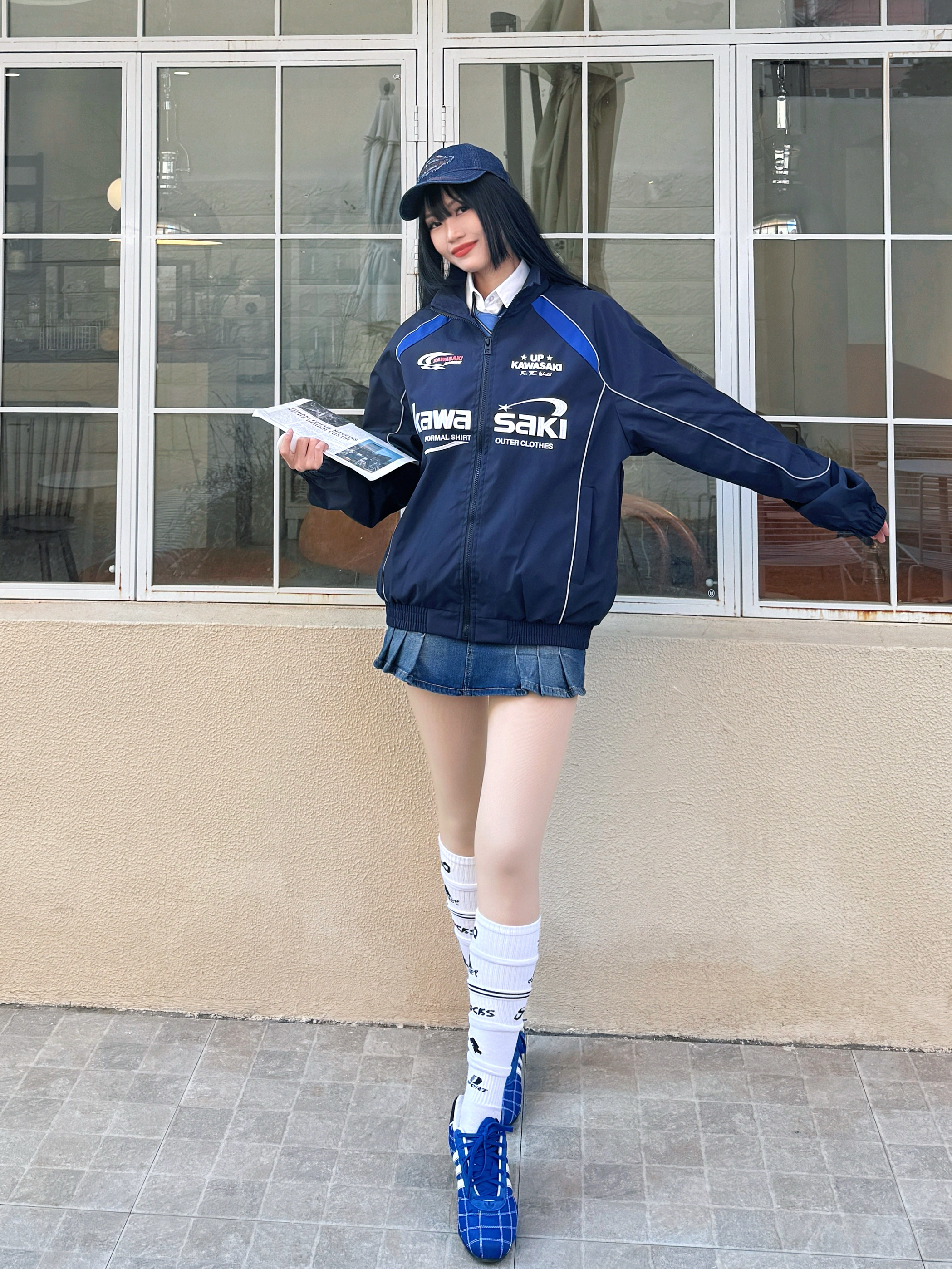 虽然不能线下亲临上海F1赛场,但是线上也体验到了各路选手的赛场激情,尤其是他们的赛车服真的很帅喔,我的观赛灵感穿搭来啦~今日份蓝色系机车女孩穿搭get✓ 🏎️今日份穿搭分享: 蓝色牛仔鸭舌帽➕ Kawasaki 川崎 蓝色机车风夹克➕白色衬衫➕蓝色牛仔半裙➕蓝色赛车鞋=春日蓝色系赛车女孩穿搭ootd。
