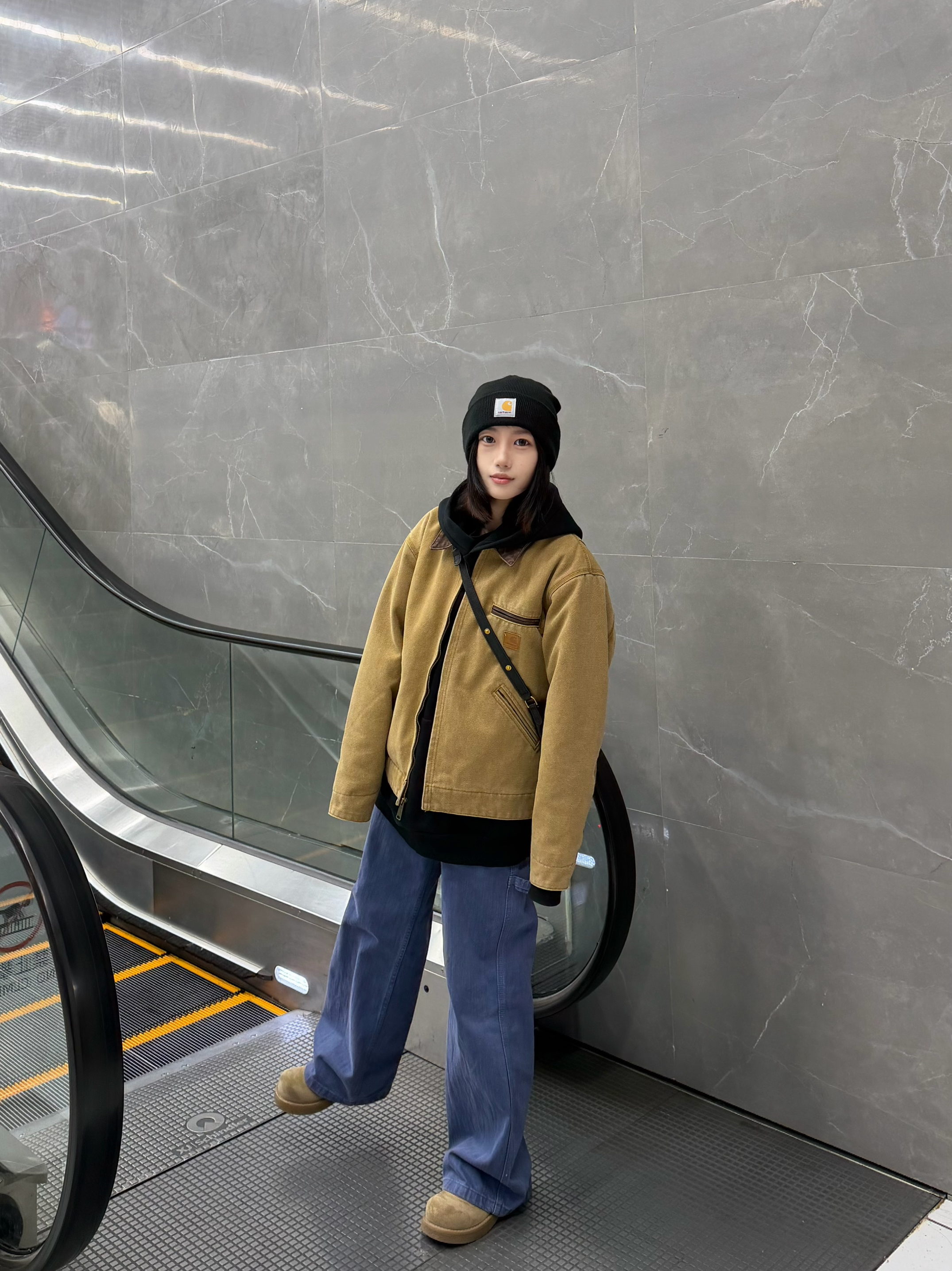 喜欢卡哈特的我们都是好朋友👫 版型硬挺 日常穿搭街味十足 个乐的包包我背好久了 面料柔软 金色的标志logo 高级简约