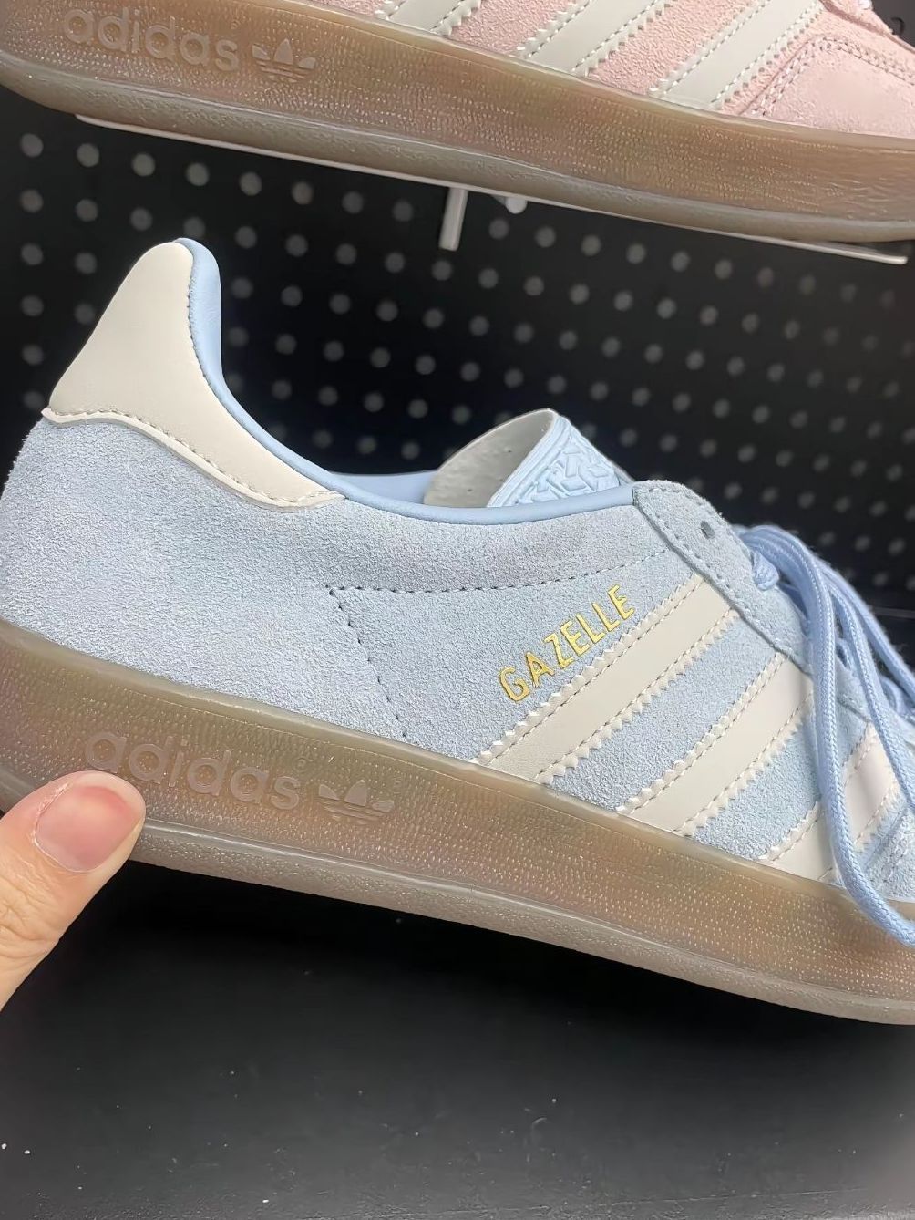 谁懂啊!这双adidas Gazelle浅蓝配色真的温柔到骨子里🥹 麂皮材质软乎乎的,生胶底自带复古滤镜,上脚显脚小还巨舒服~ 配牛仔裤/小裙子都超好看,春天穿它出门,氛围感直接拉满💯 不愧是马思纯pick的鞋,百搭又耐看!