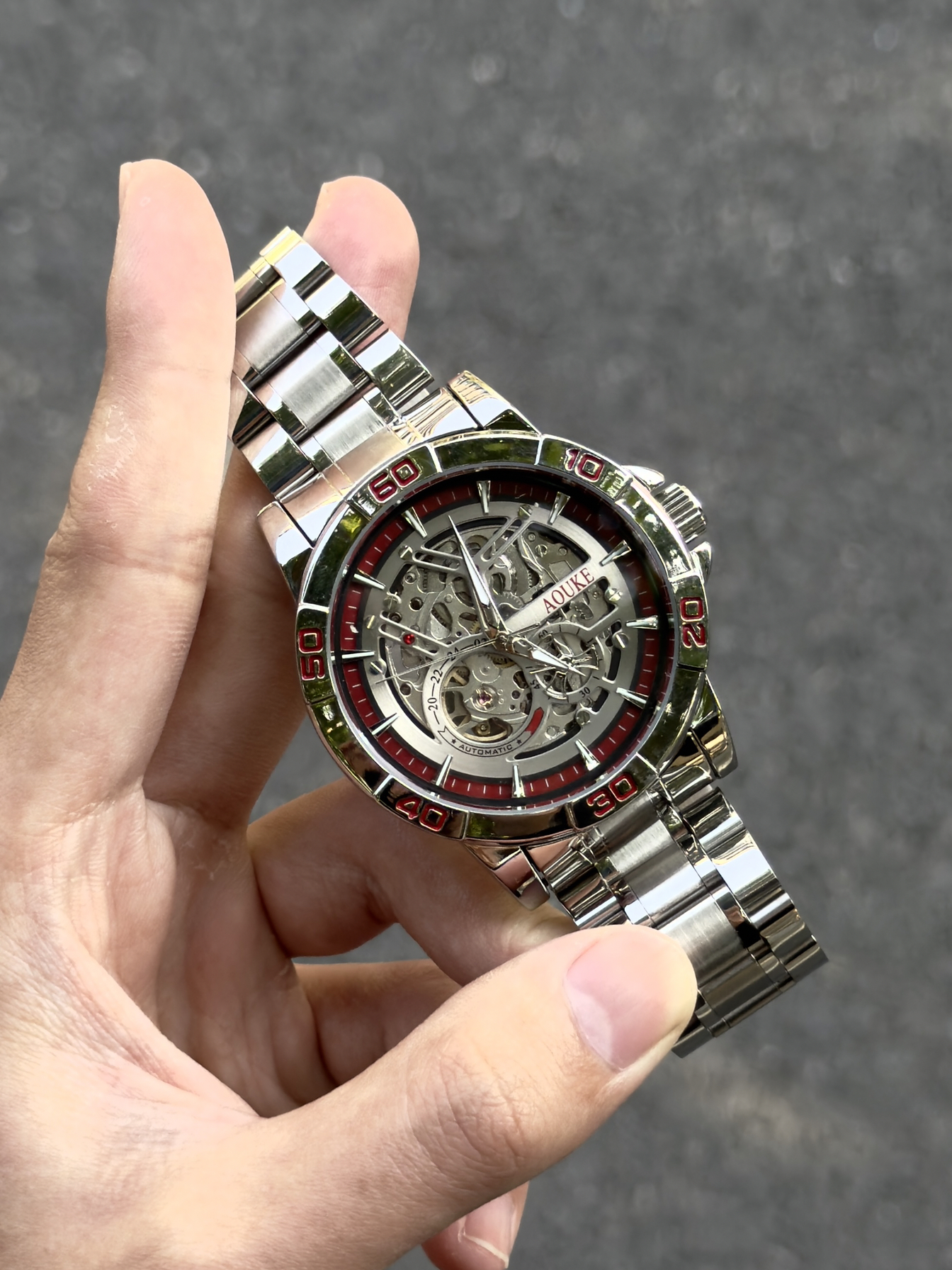 本篇笔记关联了AOUKE/奥刻 高颜值潮流时尚百搭学生精致轻奢镂空表盘夜光防水自动机械男女同款手表 【礼盒装】银红等商品,为用户提供真实的使用体验和购买参考。