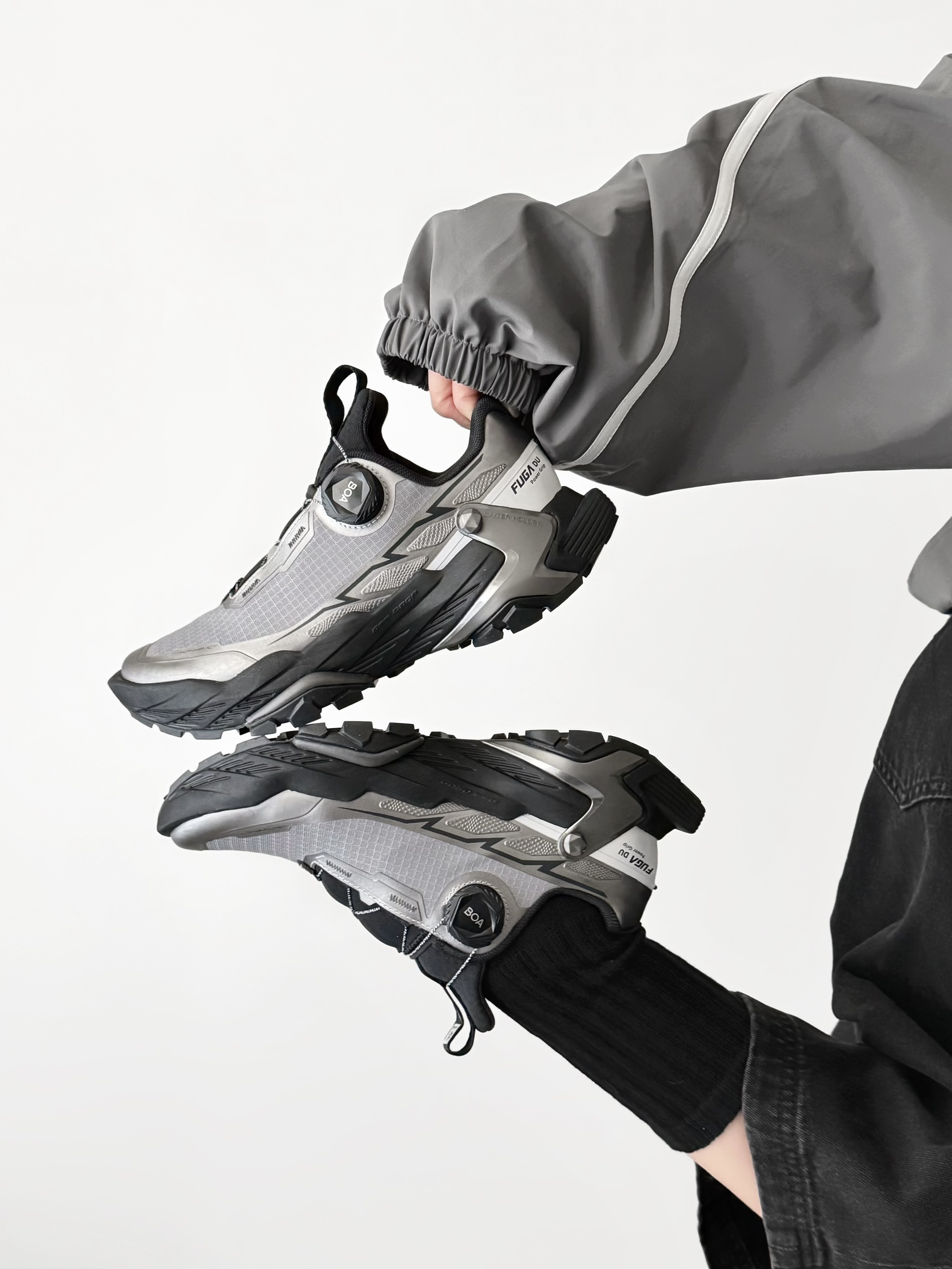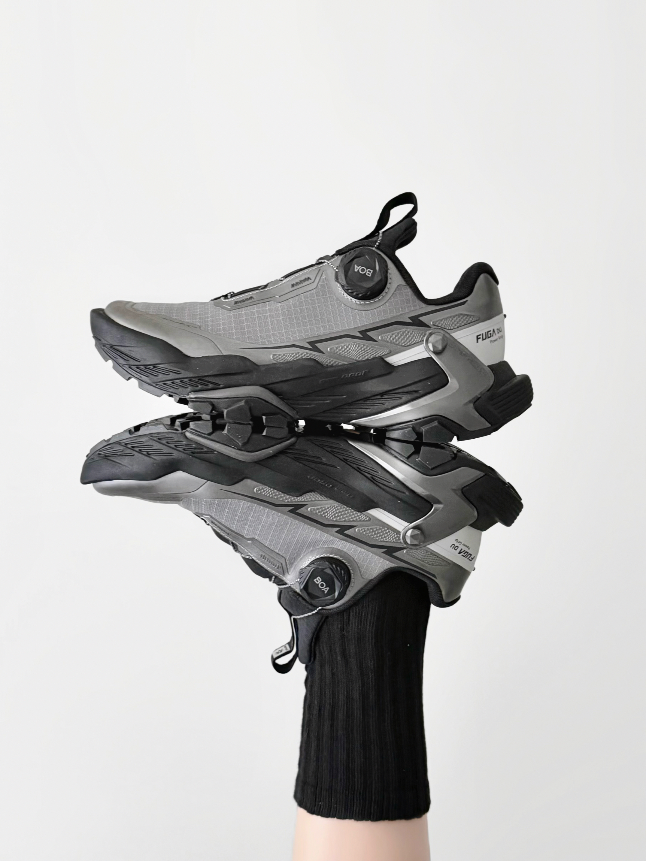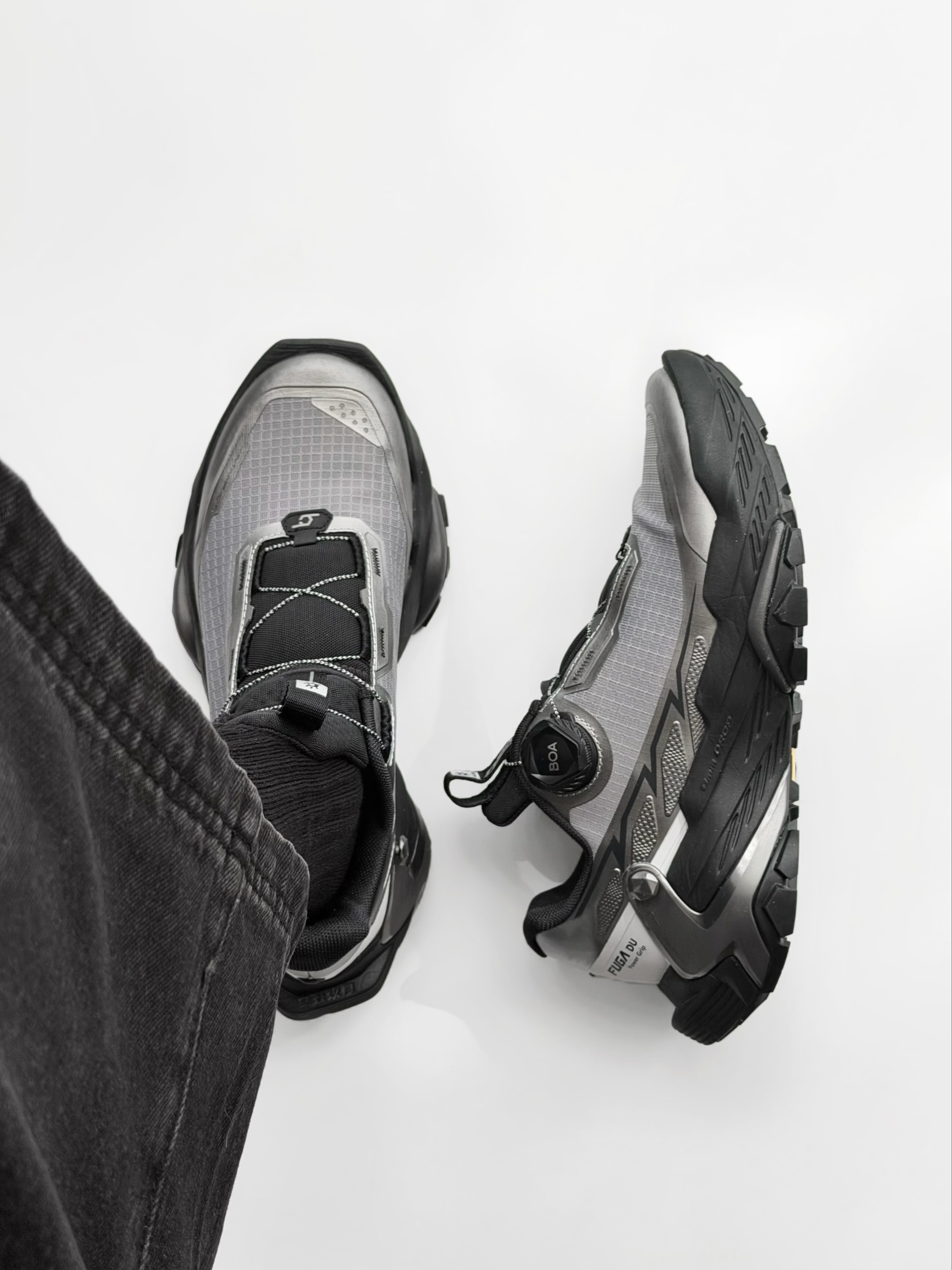 有没有这么一双鞋? 既能征服山野,又能穿出时尚感 ——FUGA大坡王黑山,真的做到了! 一上脚自带机能感 王嘉尔同款真的不是说说而已 先锋造型也能轻松驾驭✨ 全掌 V 底搭配深邃齿纹,视觉冲击力拉满 硬核抓地性能,实力一目了然👀 现在真的越来越多人把这双跑山鞋穿进城市了 不管是去徒步、逛展、还是街拍 这双黑山都能够又稳又帅🕶