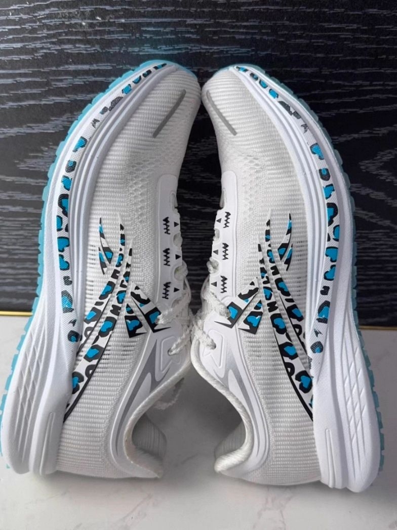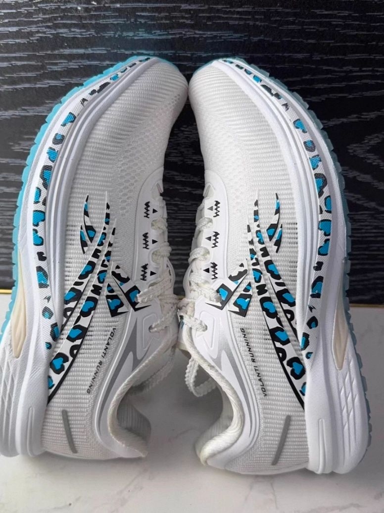蓝豹纹沃兰迪火箭⚡️训练场上的显眼包跑鞋❗️|||这双是沃兰迪火箭气垫碳板跑鞋(蓝豹纹配色),不是大牌联名,就是体育生圈里公认的“提分神器”。 成色很新,白鞋身+蓝豹纹,训练场上回头率超高,完全不用担心撞款。 ✨ 配置与脚感 - 核心配置:2.0气压气垫 + V800纯碳板,不是花架子。气垫Q弹,碳板刚性足,跑起来推进感明显,800米后程发力特别爽。 - 细节:透气网布不闷脚,SPU止...