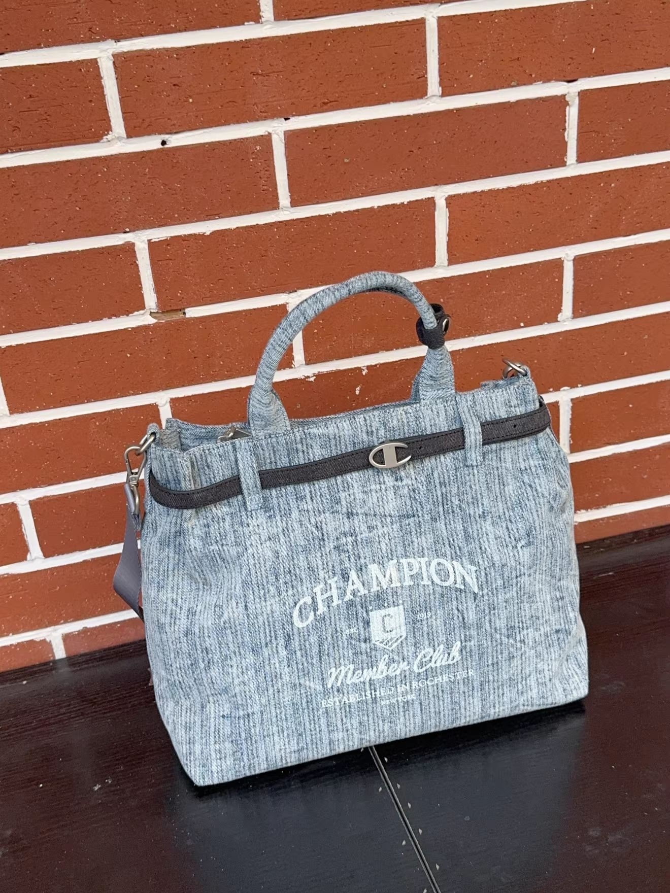 Champion这款牛仔托特包也太戳我了💙 做旧的牛仔纹理自带复古滤镜,印字设计还透着点美式复古的随性,容量大到能塞下平板、水杯和补妆包,通勤or出街背都超合适~