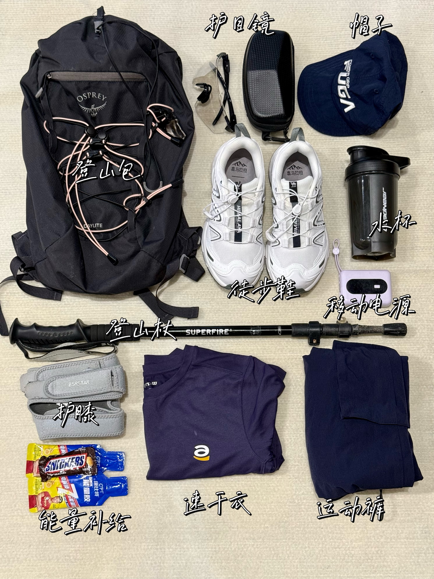 为了这次宝泉峡谷的徒步,我把装备清单拉满了。艾王35+5L徒步包是主力,里面塞了拓路者小鹰硬壳冲锋衣、迪卡侬mh500硬壳冲锋裤,还有美利奴羊毛速干衣和抓绒衣,应对山里多变的天气。 脚上是迪卡侬mh100徒步鞋,搭配卡洛驰洞洞鞋方便换脚。登山杖、防滑手套、面罩、蛋巢垫、急救毯一样不少,吃的喝的和一次性用品也都备齐。#分享我的户外冲锋衣穿搭 #得物上手的宝藏冲锋衣 #今日份冲锋衣穿搭 #男女同款冲锋...