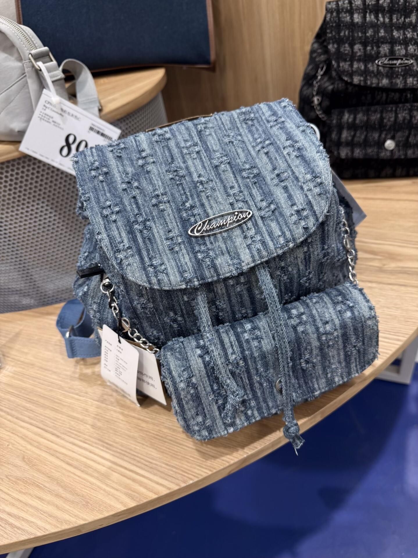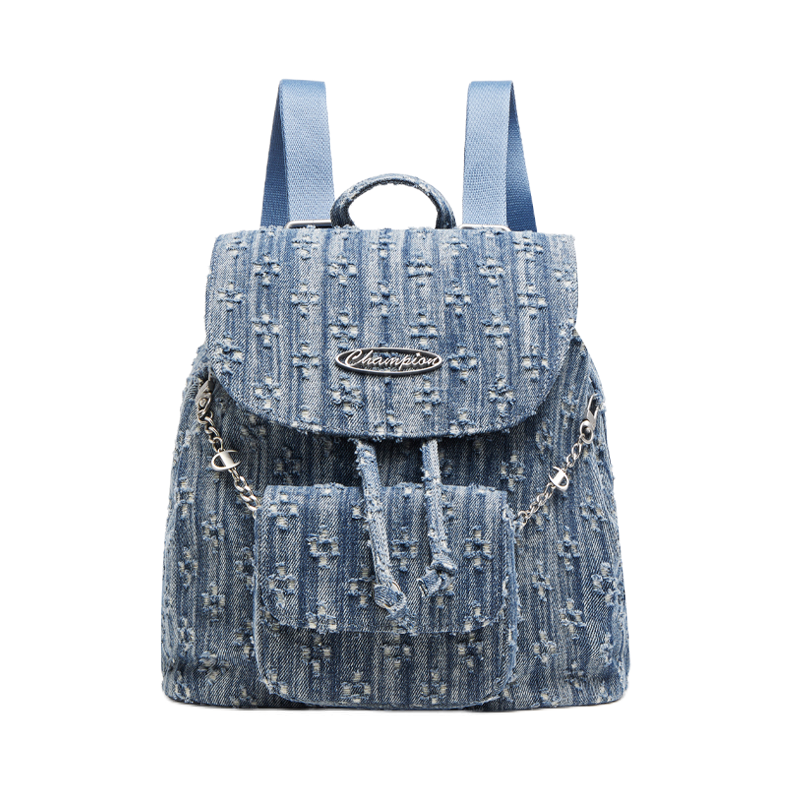 💙Champion牛仔双肩包,复古牛仔布材质,纹理独特,休闲百搭风格。包身简约,正面有品牌金属标志,下方拉链口袋方便收纳小物👜。尺寸适中,通勤、休闲出行都很合适,肩带可调节,背负舒适。