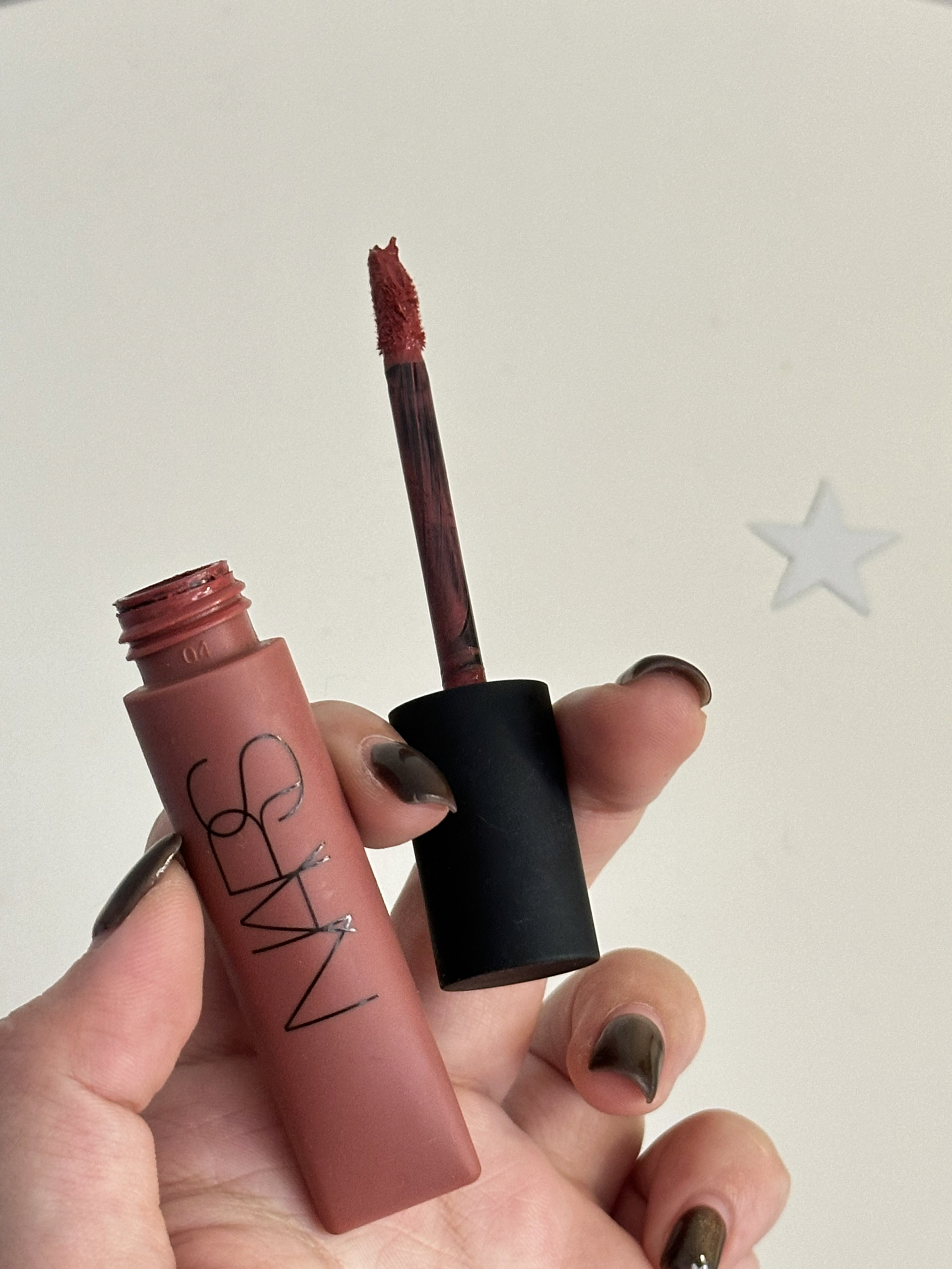 分享一只,我最近一直在用的空气唇釉 就是nars家的这只老网红了 很多美妆博主的年度爱用都出现过 可以很好地遮盖住唇纹 而且还蛮持久的 不容易掉色 和很多种风格的妆容都能融合的很好 不管是初春还是秋冬 都能很好地画出气场十足的感觉 质地是那种空气唇霜的感觉在嘴巴上不会很厚重 最近真的很喜欢用它