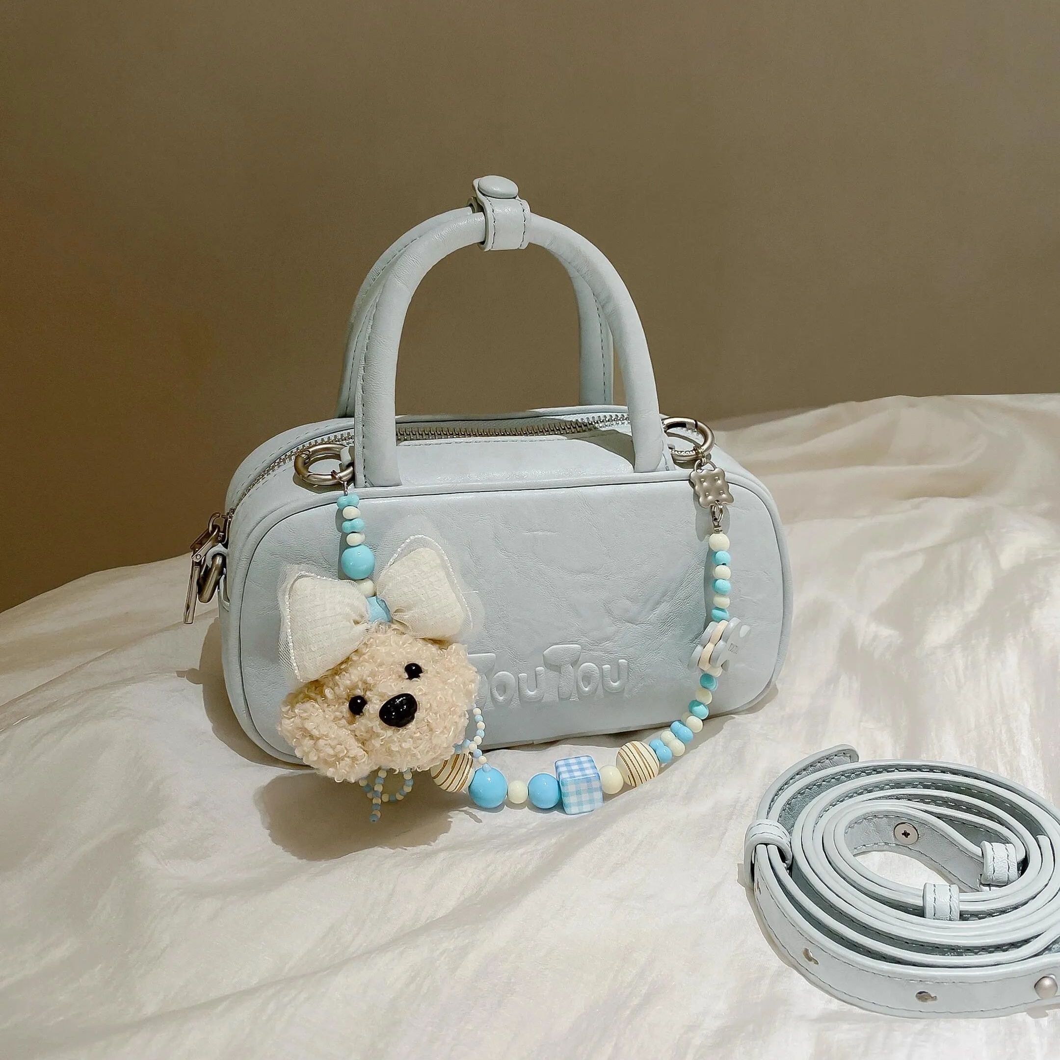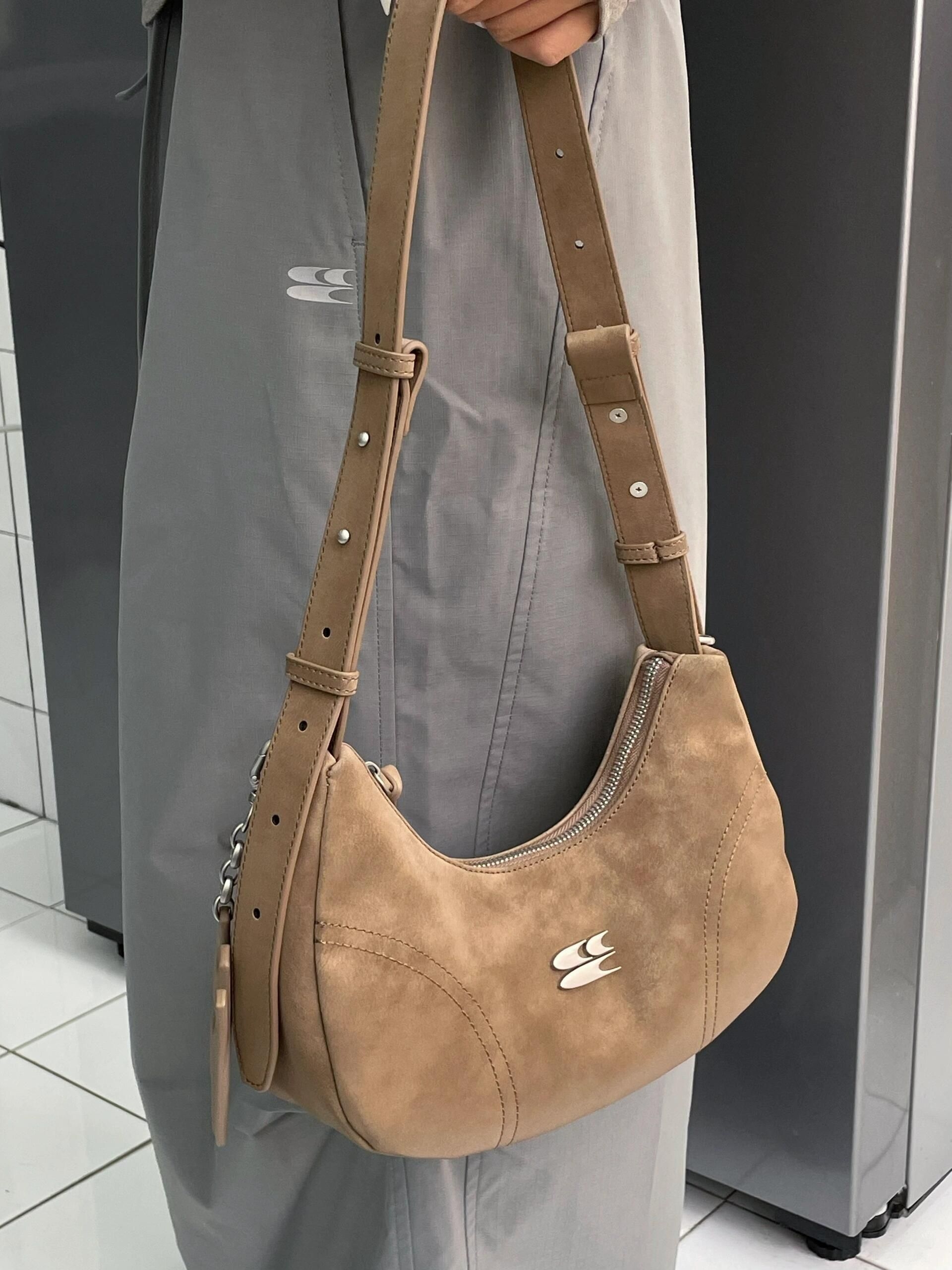 自带的logo挂件很精致,细节感拉满。 🎷包身是仿绒材质,手感软糯,背起来很轻便。单肩斜挎都能驾驭,通勤、逛街都超合适。容量也够用,手机、钱包、口红都能装下,实用又时髦。