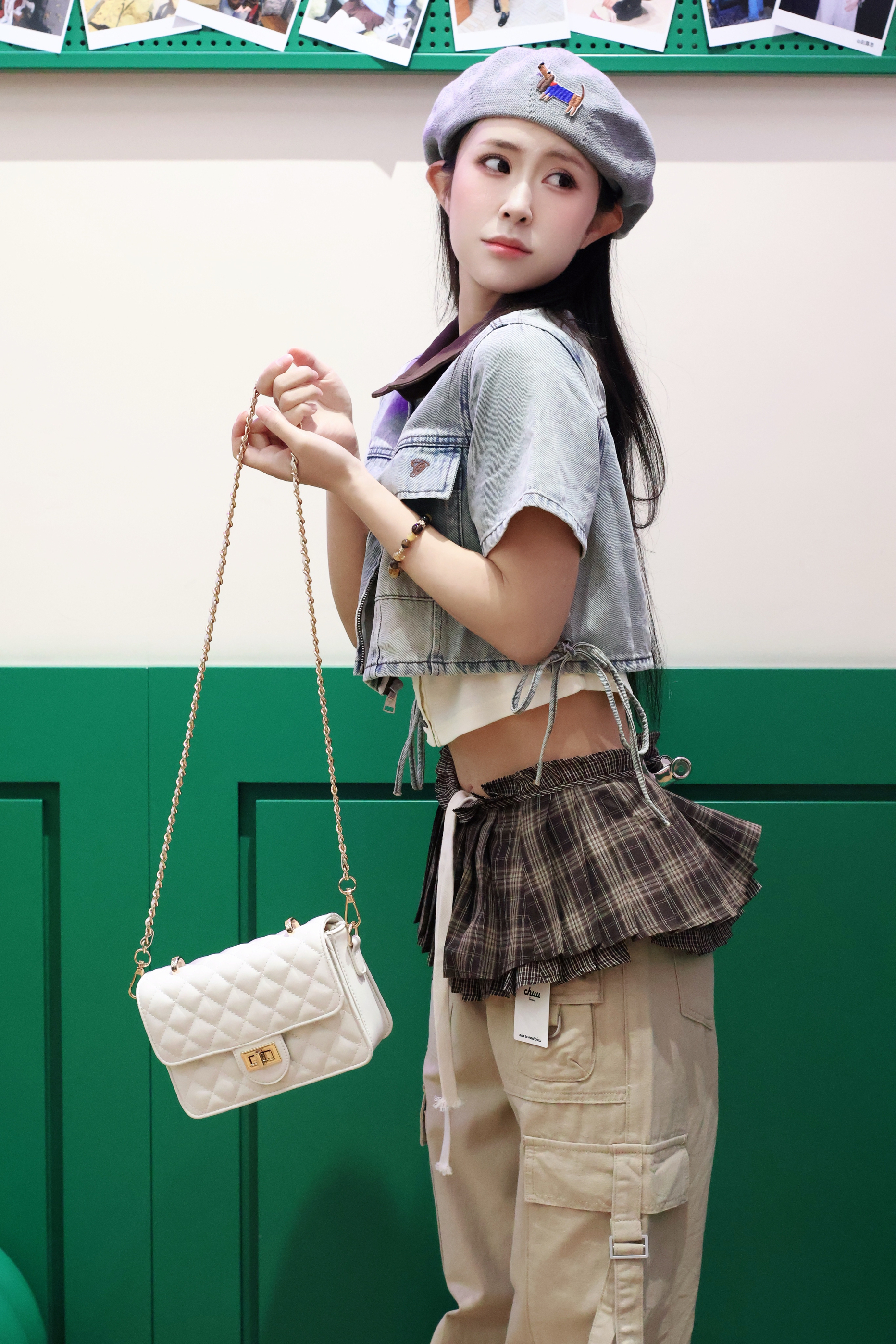 最近挖到的这只菱格包也太戳了! 奶呼呼的米白色超衬肤色,经典菱格纹+精致金属扣,质感直接拉满💫 搭配这身甜酷工装风完全不违和,斜挎、单肩背都好看,日常装手机、口红超够用。 马年出街背它,氛围感直接拉满,时髦精快冲!
