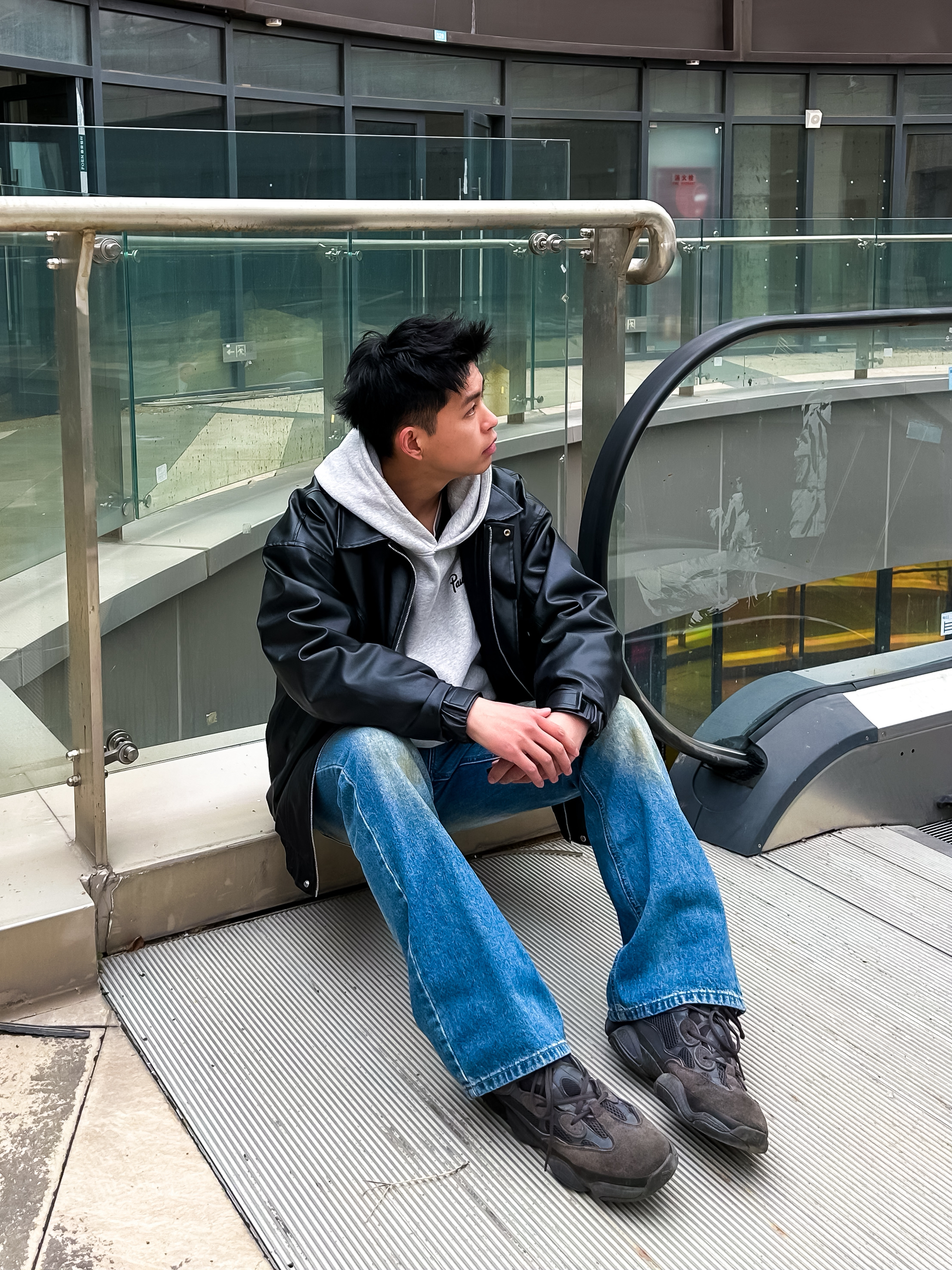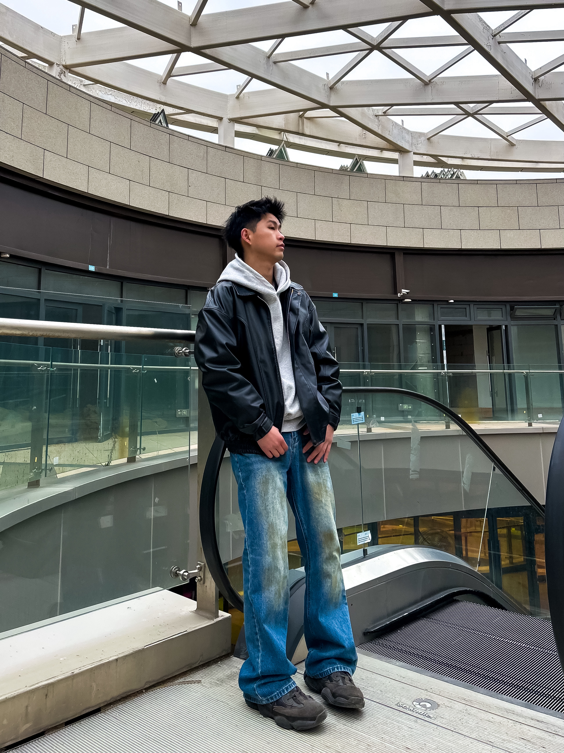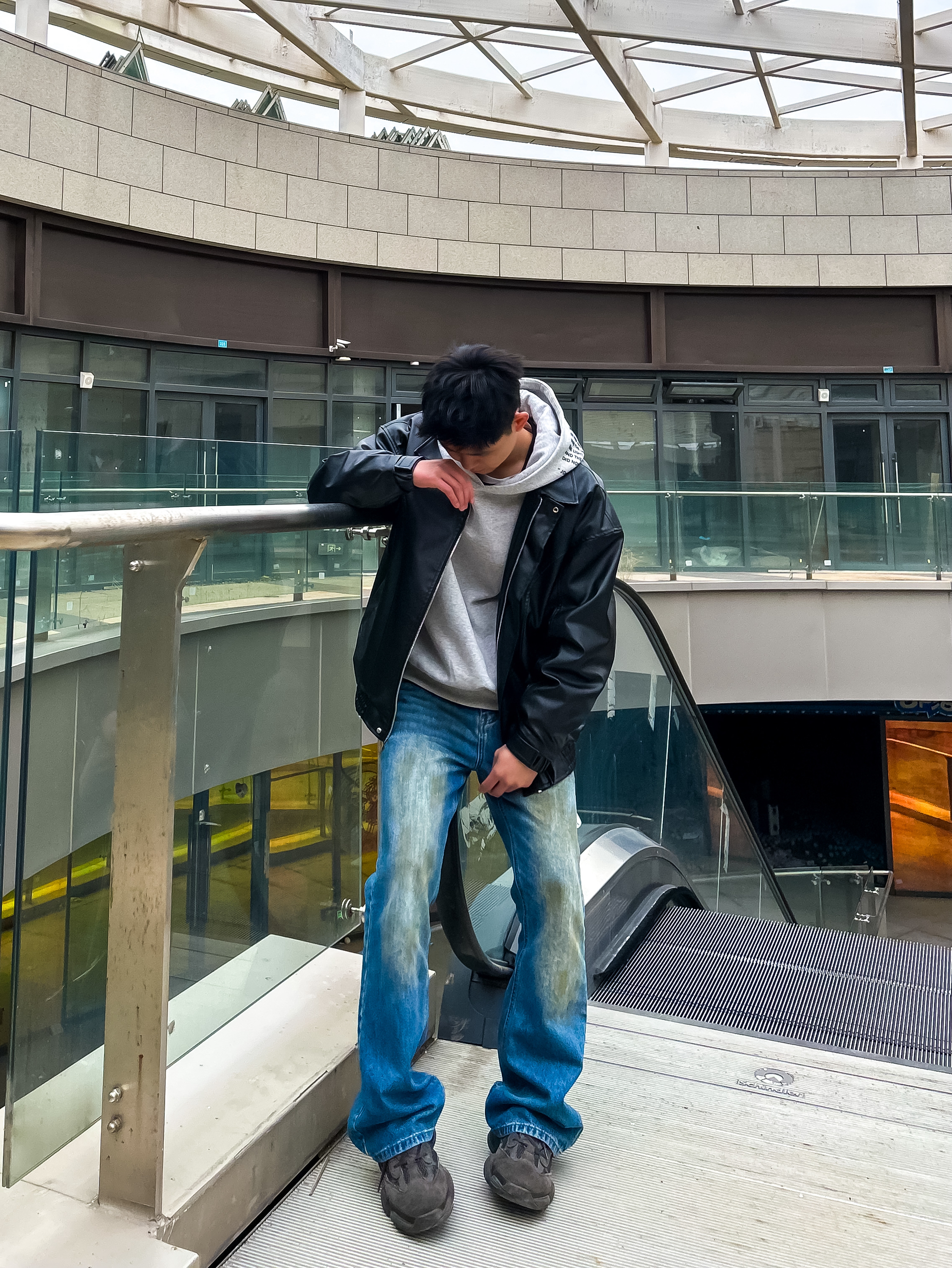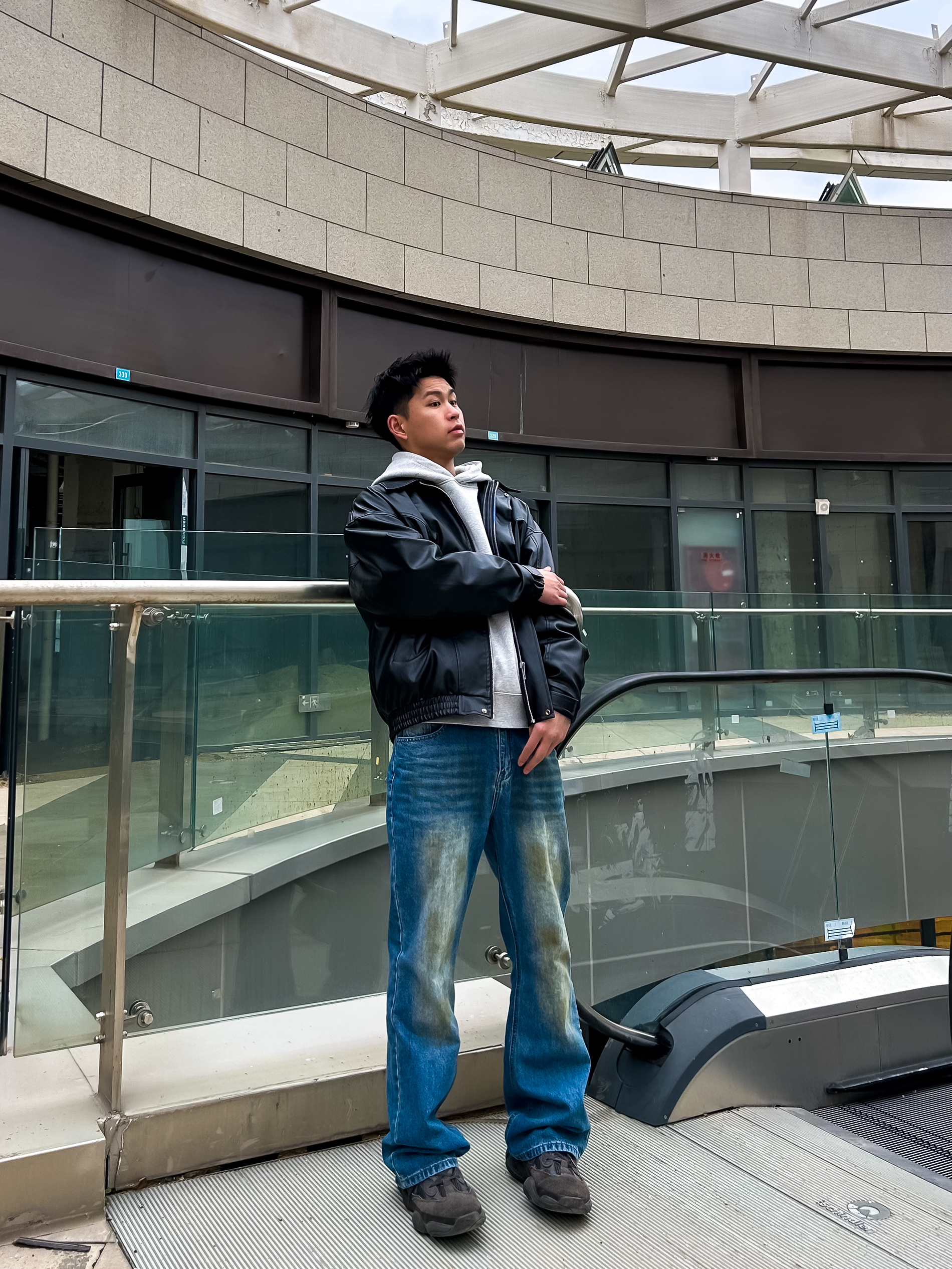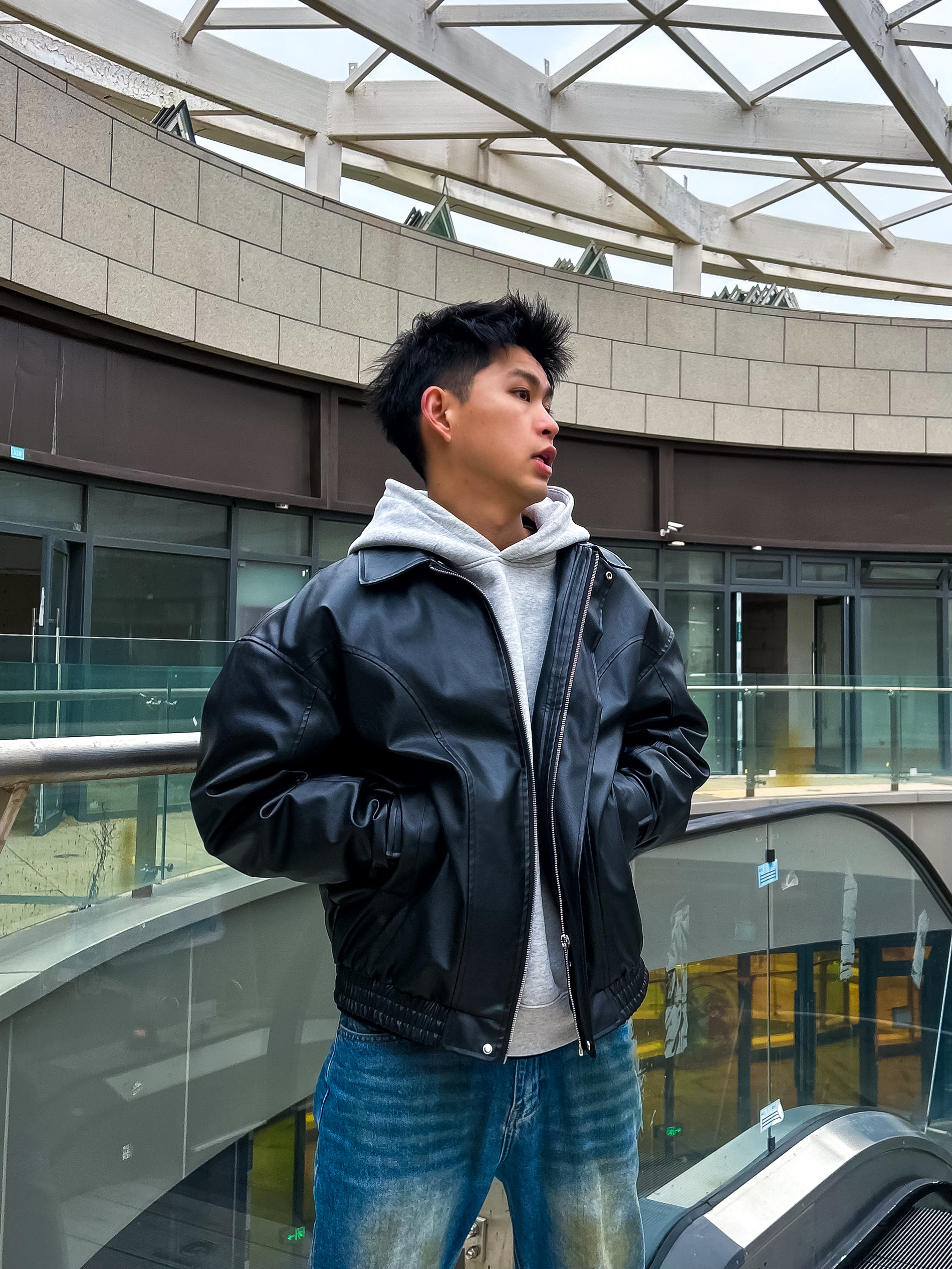 哈咯,这里是卢_SG 这一套是经典的美式复古街头风 核心是用硬挺的皮夹克中和卫衣的软 再用做旧牛仔裤增加年代感 把“松弛感”和“痞帅感”捏得恰到好处。 整体是那种“不费力的帅” 有点美式街头的痞气,又不失少年感