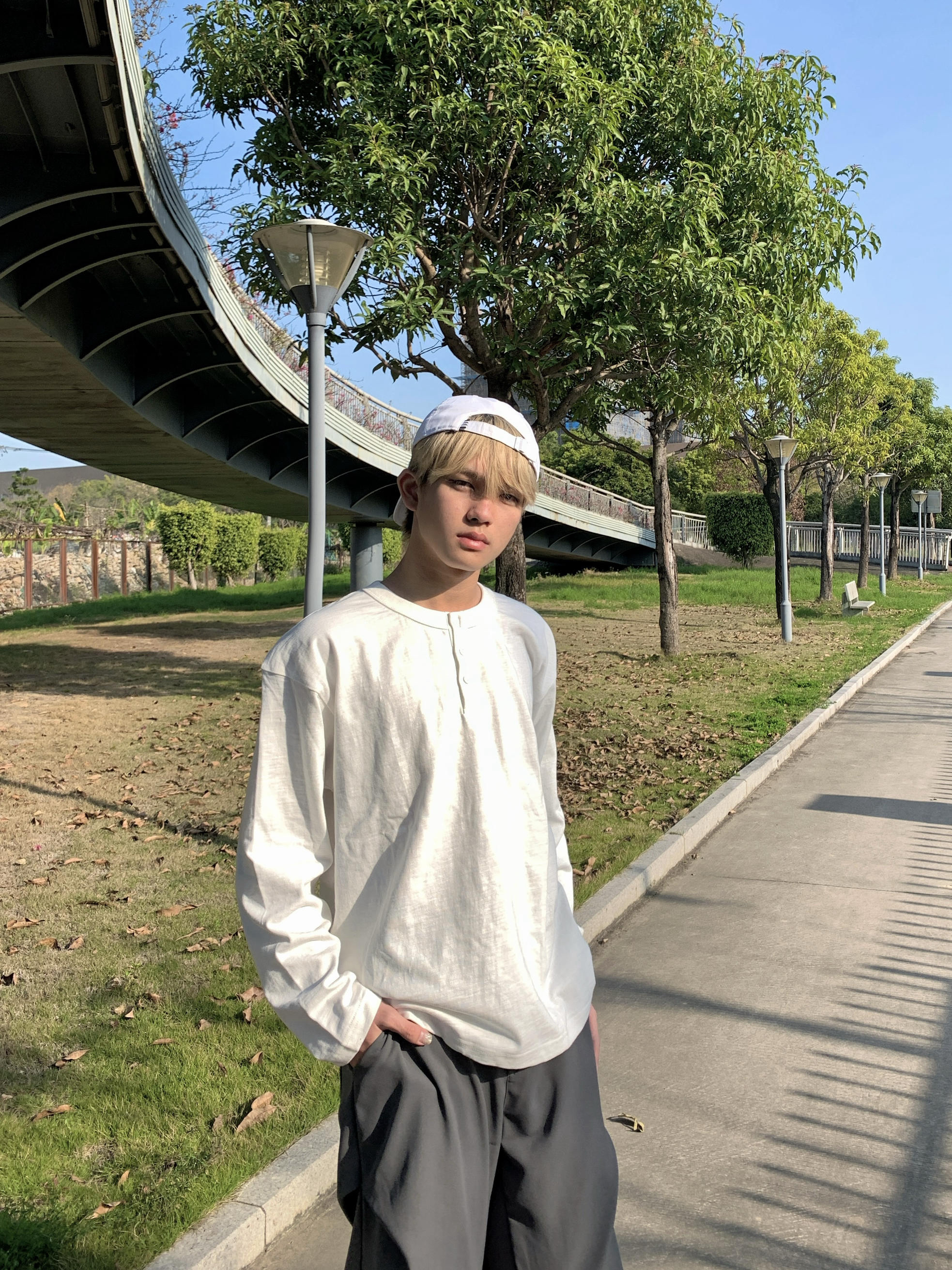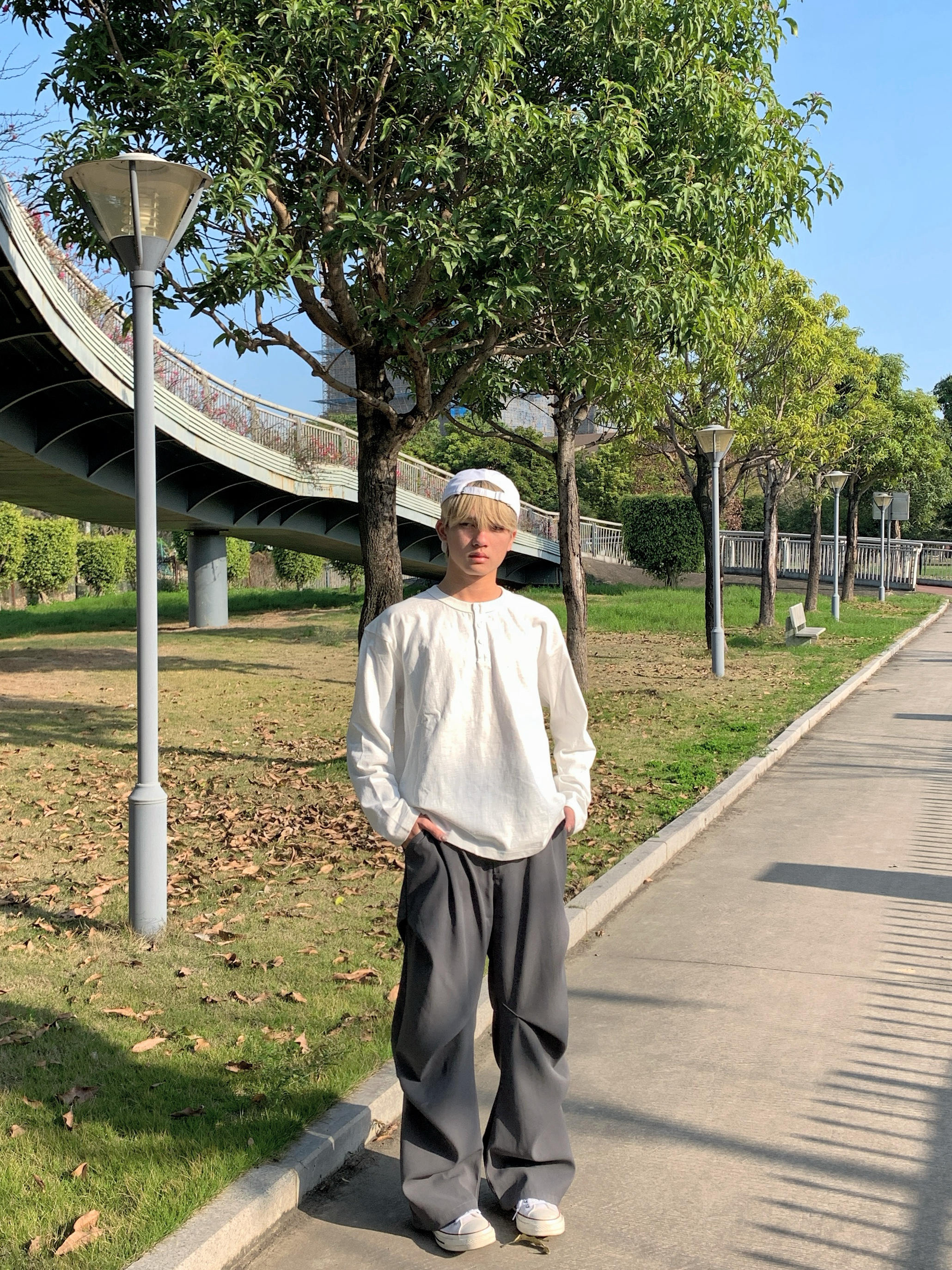 今日不费力的日系少年感穿搭,抄作业就行! ✅ 上衣:白色亨利领长袖(重点!比普通T恤更有设计感,亨利领增加细节度,竹节棉面料透气不闷) ✅ 下装:深灰阔腿西装裤(遮肉显腿长,垂感绝了,搭小白鞋直接拉满松弛感) ✅ 配饰:白色反戴棒球帽(提亮整体,瞬间提升少年气) 男生春天真的要多穿白+灰,干净耐看不挑人,出门回头率💯