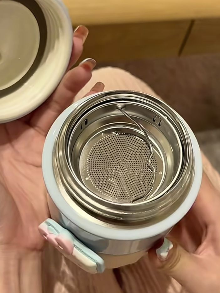 谁懂啊!挖到这支奶呼呼的保温杯真的狂喜!软萌图案戳中少女心,渐变配色温柔到犯规,拿在手里就是穿搭加分项💖 内置茶超实用,装热饮冷饮都可,密封防漏不漏水,通勤上学揣包里超安心~每天用它喝水,连白开水都变得更有滋味啦!