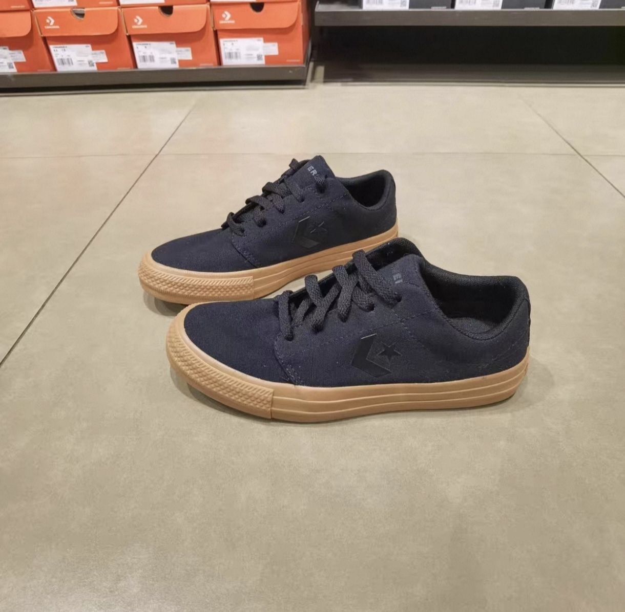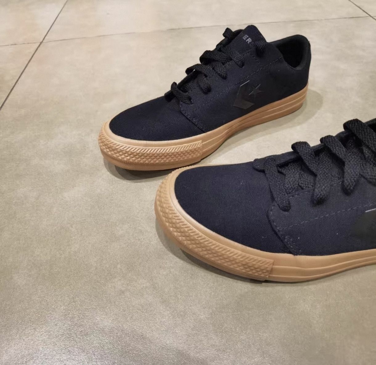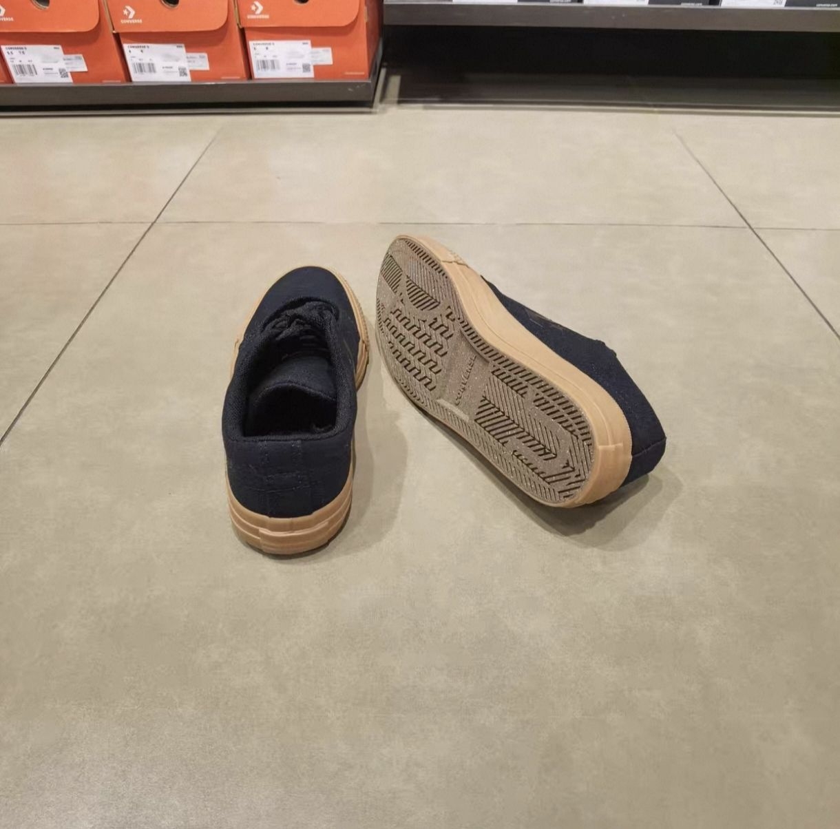 这双Converse黑生胶板鞋,全黑帆布搭配生胶底,低调耐脏,经典休闲版型,日常通勤、穿搭都适配,脚感舒适百搭。