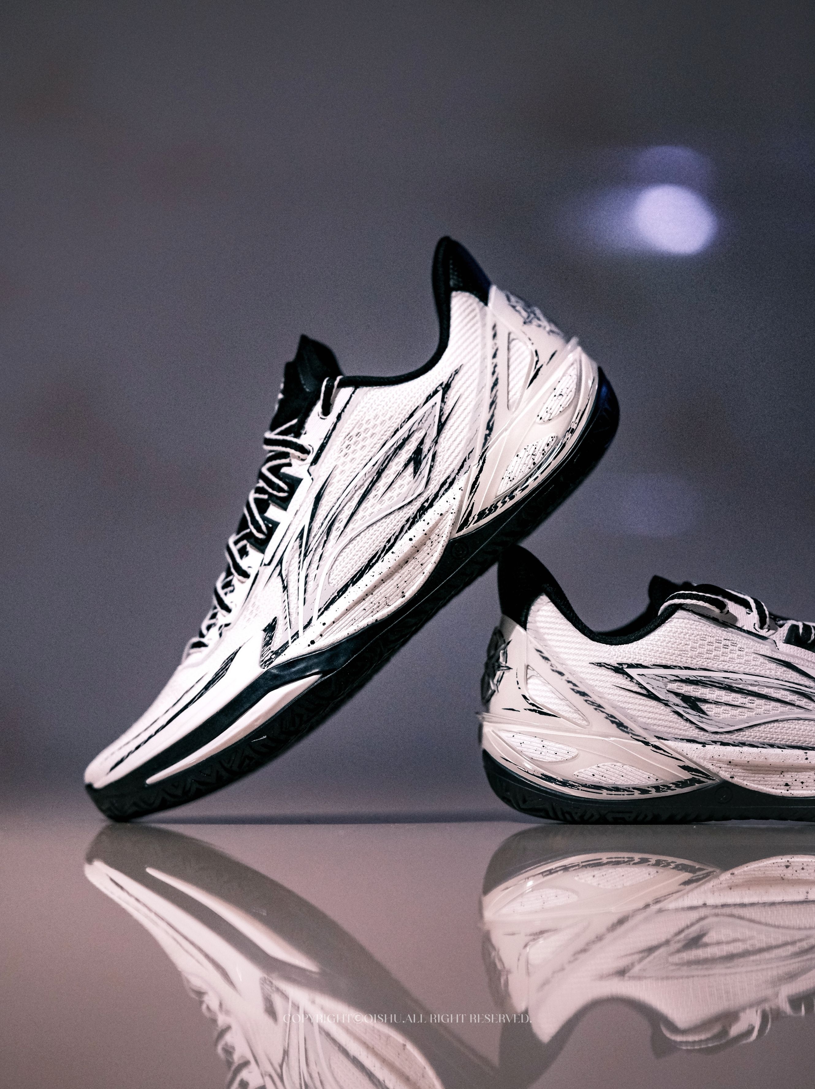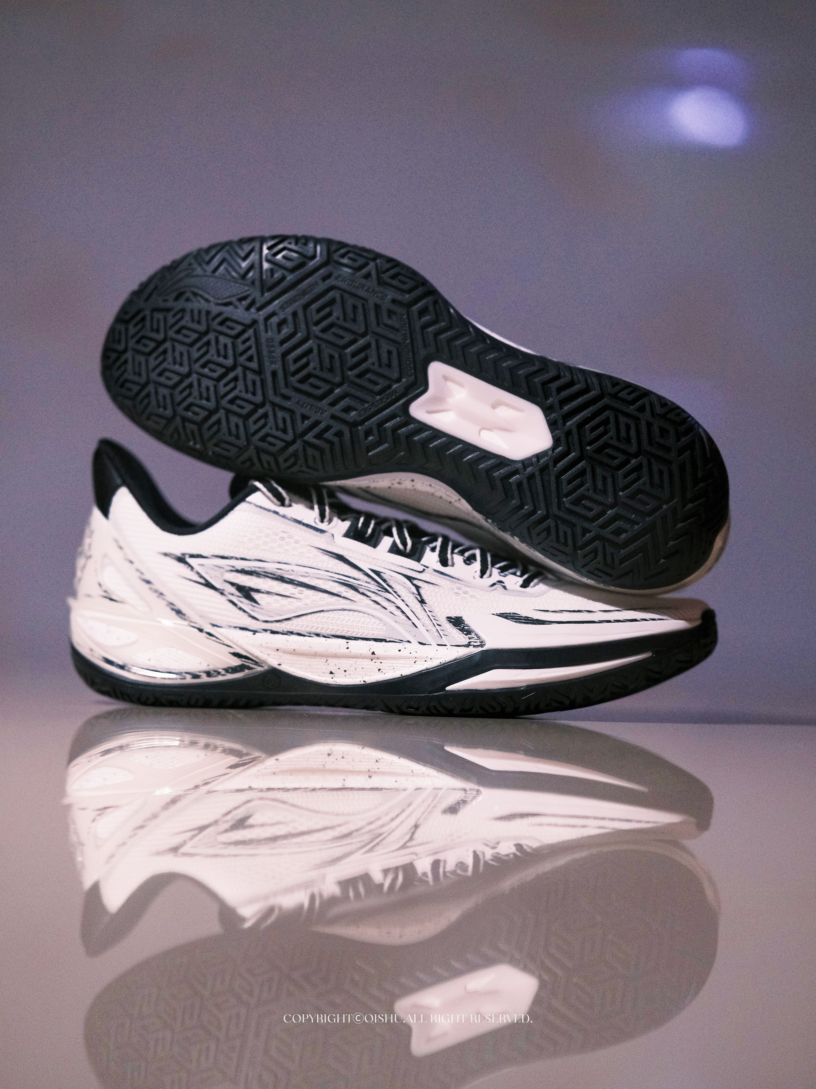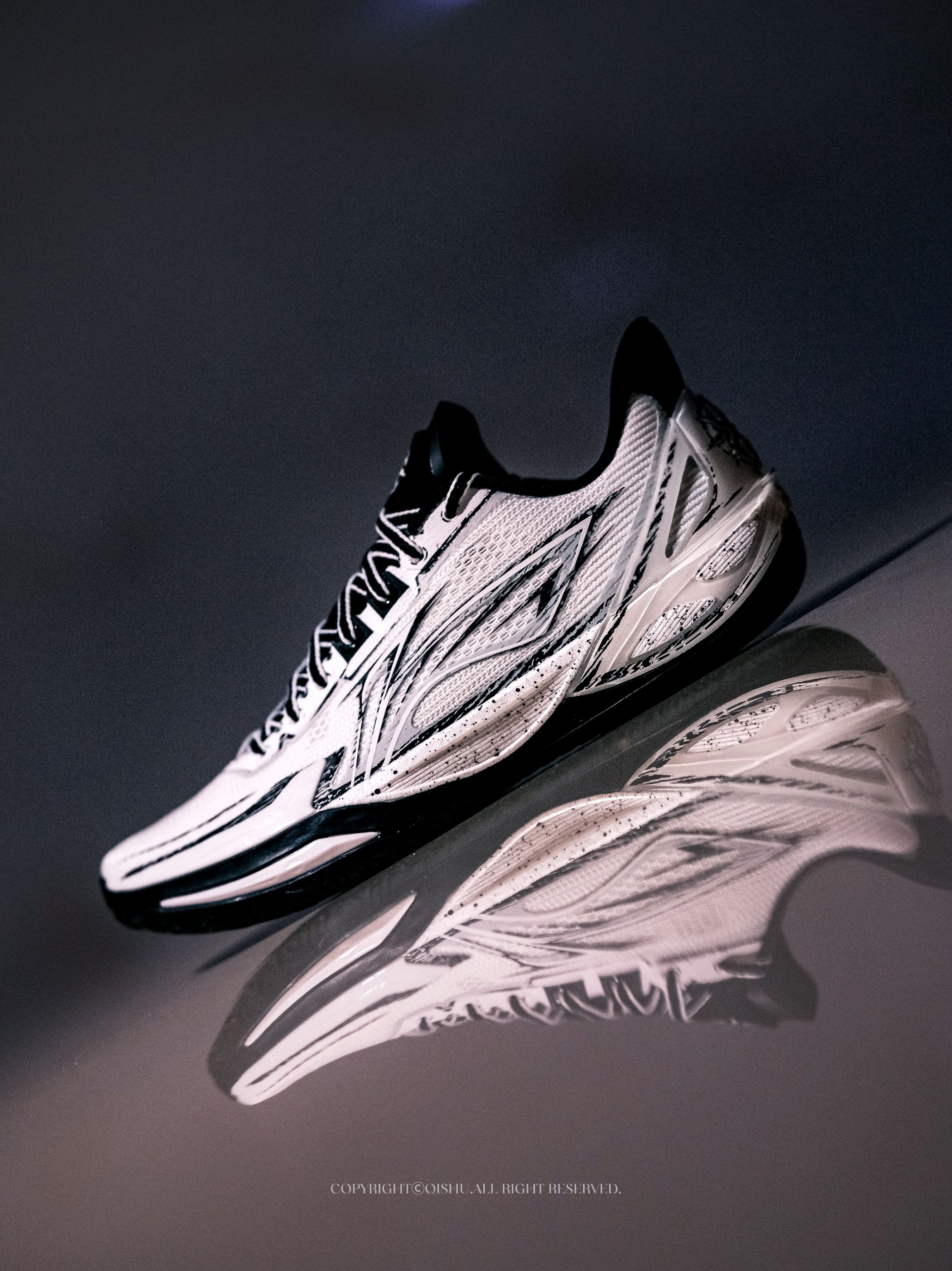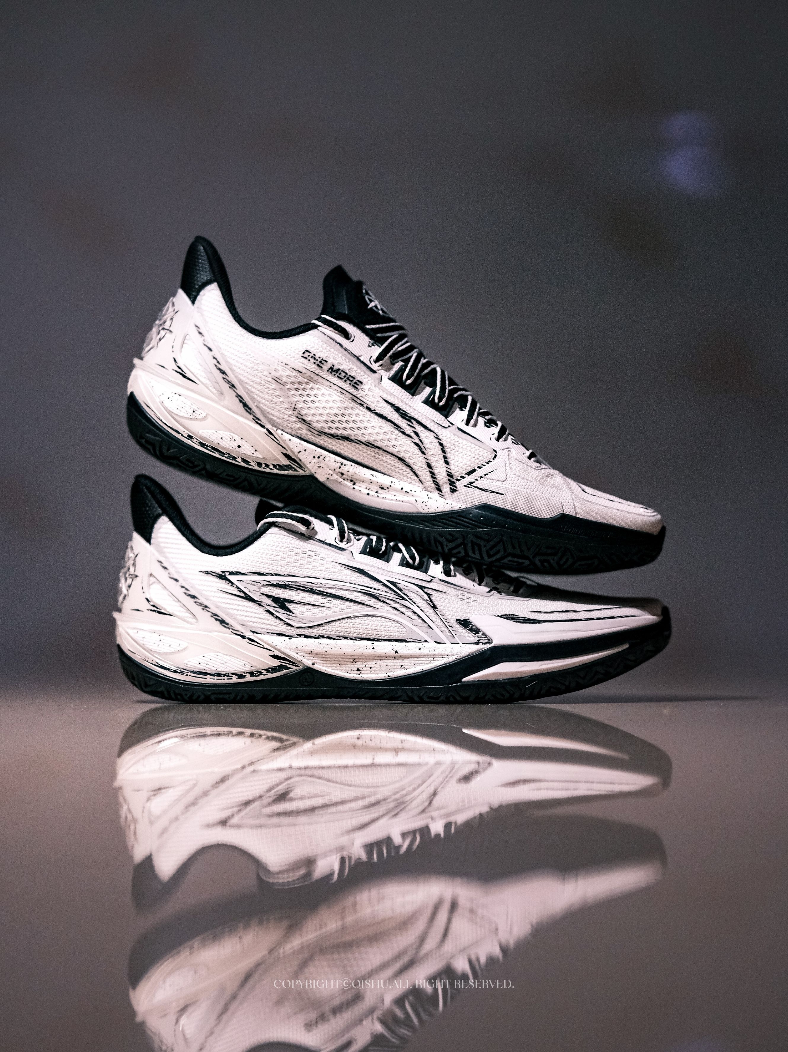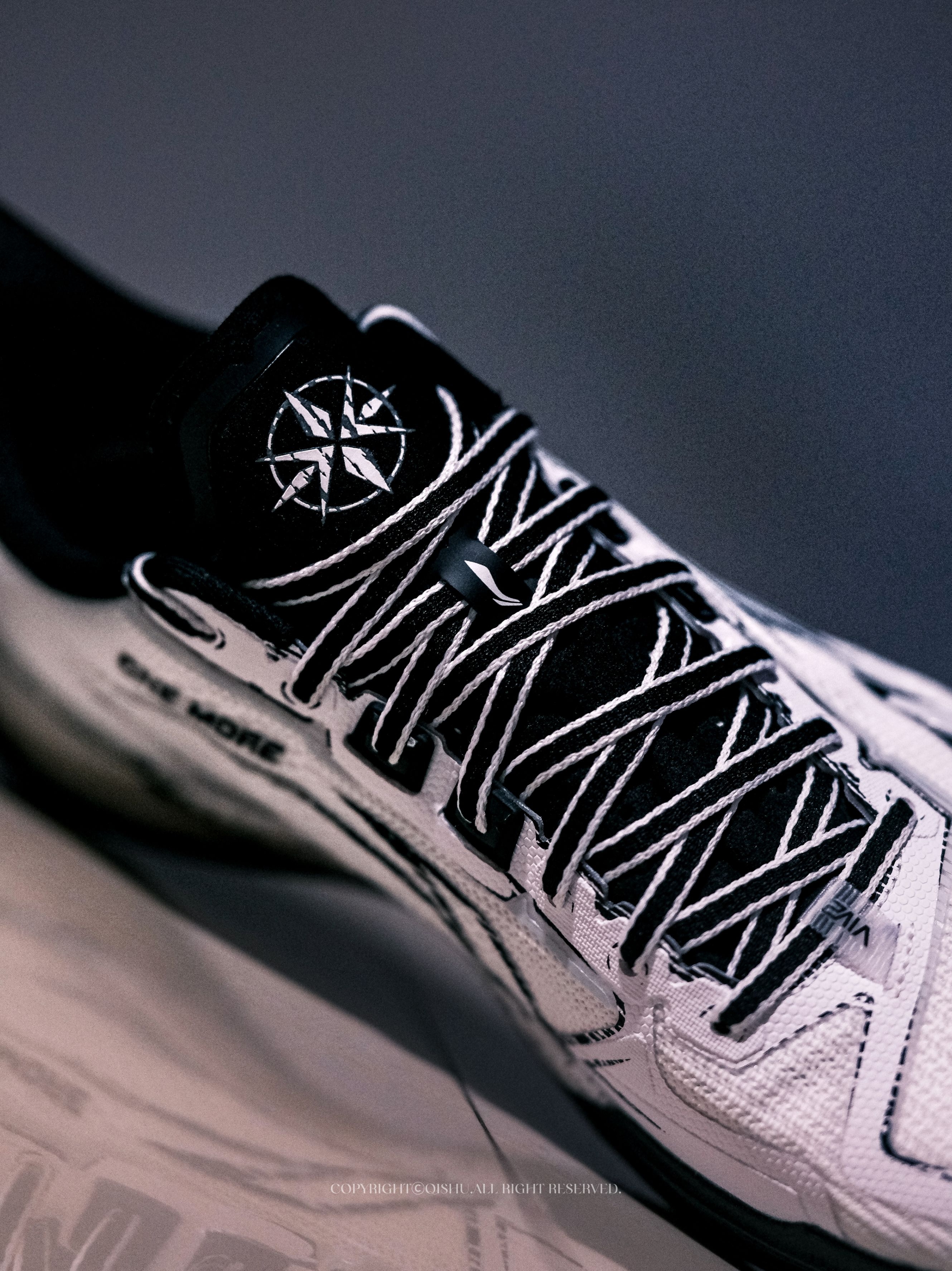 拿到利刃6V2这双One More配色,第一眼就被这种漫画手稿的质感击中了。 黑白主调,线条像铅笔草图一样随意地勾勒在鞋面上,带着手绘感的泼墨笔触,越看越有味道。鞋舌和后跟的立体星标Logo精致小巧,光影打上去层次感很足。 细节处藏着巧思。鞋垫上印着One More的经典手势,内腰也有同款元素——寓意「再来一次」,莫名有种鼓励的意味。鞋帮比前代更低,线条更接近利刃5V2的流畅感,视觉上更轻盈。 中...
