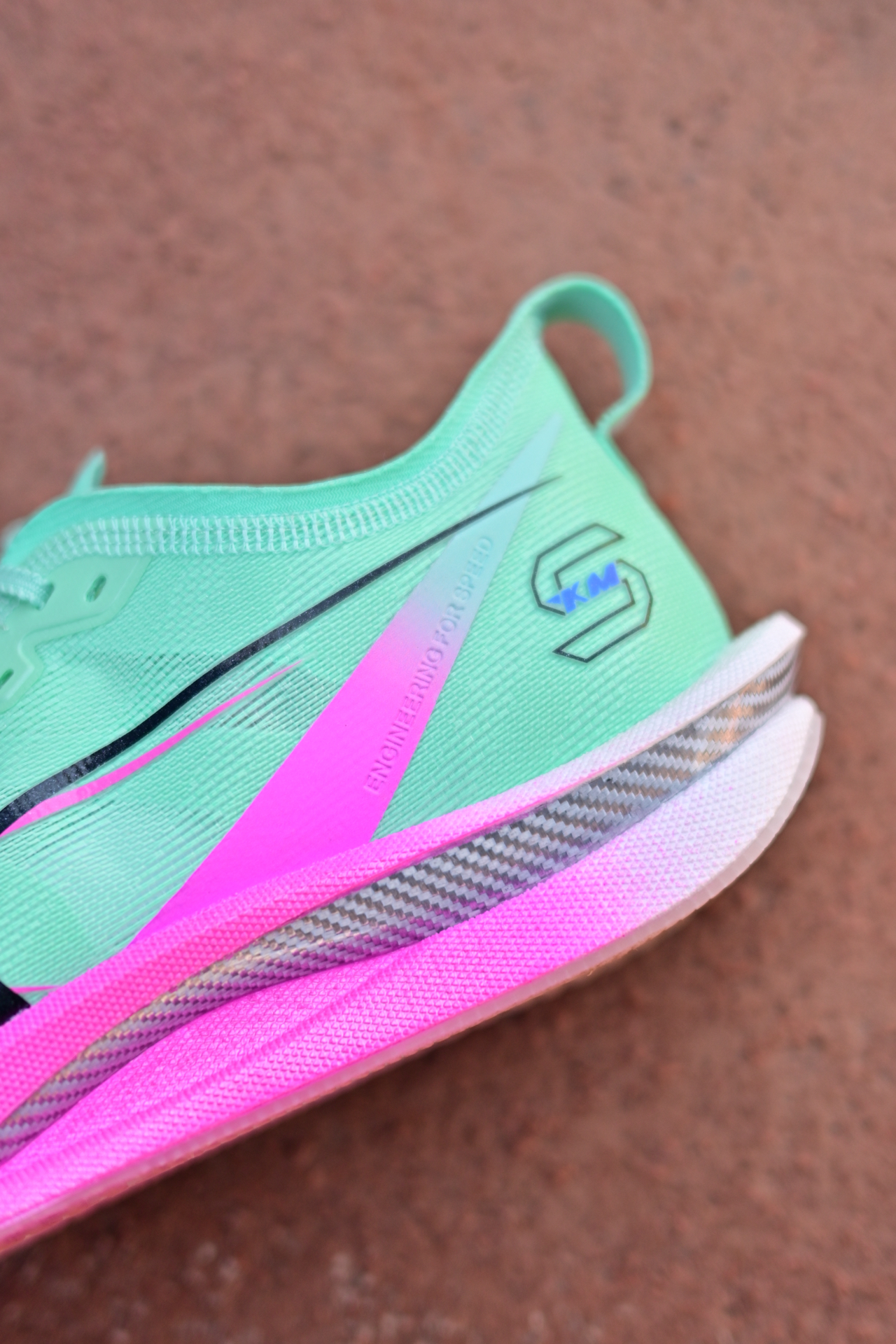 这是海尔斯KM5代,我总结会有两大点的升级[机智_blue] 首先第一点就是碳板,全掌异形带加强筋,后跟“环抱式”的碳板上翻,去包裹住你的脚啊!这样最明显的就是落地那下的稳定锁定感,会很强烈!说白了就是更加稳定! 那第二大点升级,就是中底的材料,这次一体成型的工艺,就是更加耐造了,但脚感依旧是韧弹的那股劲~ 整体还是冲着体考体侧、操场竞速训练去做的~不过我体验下来,中底的碳板刚性依旧很高,...