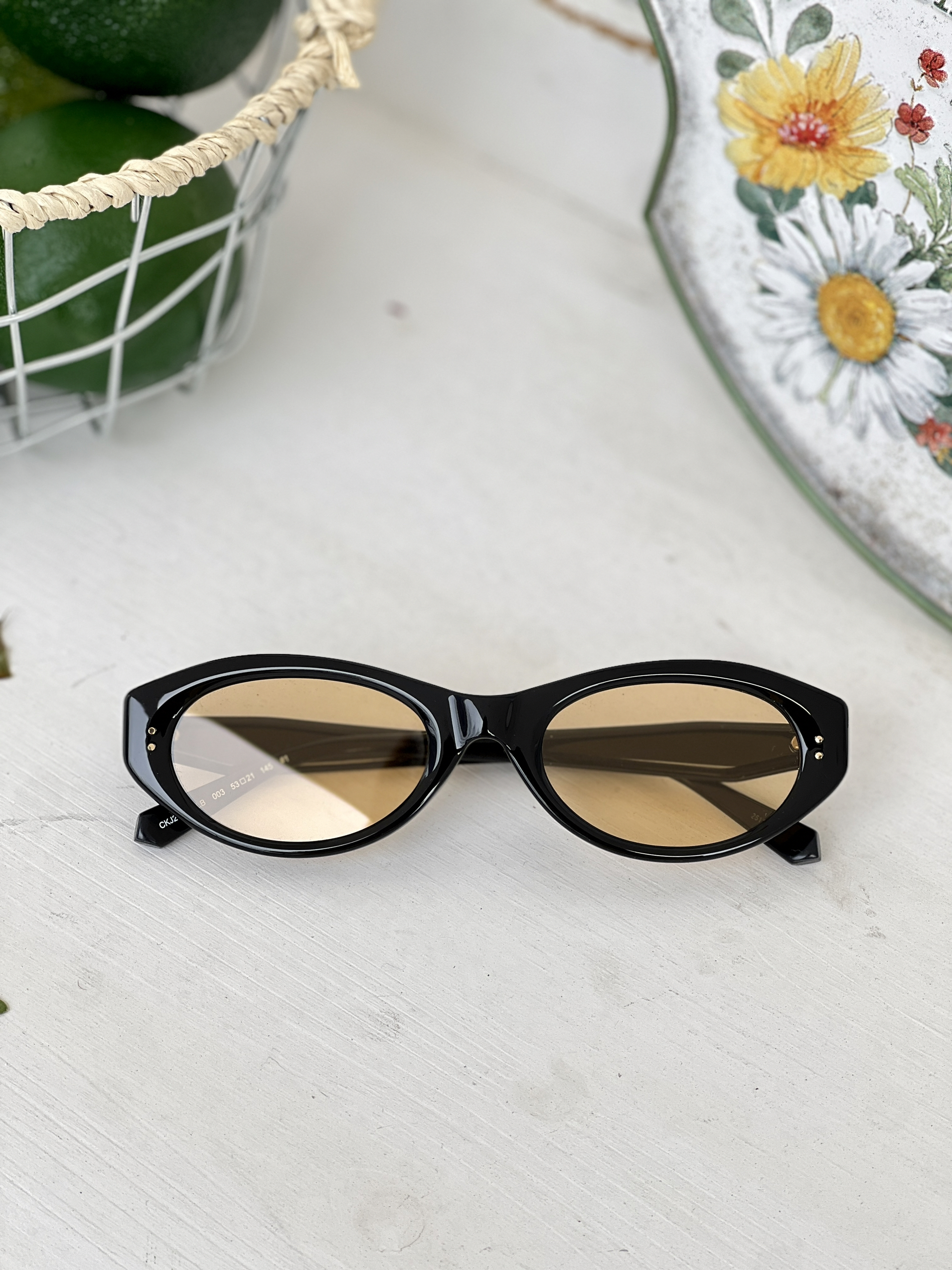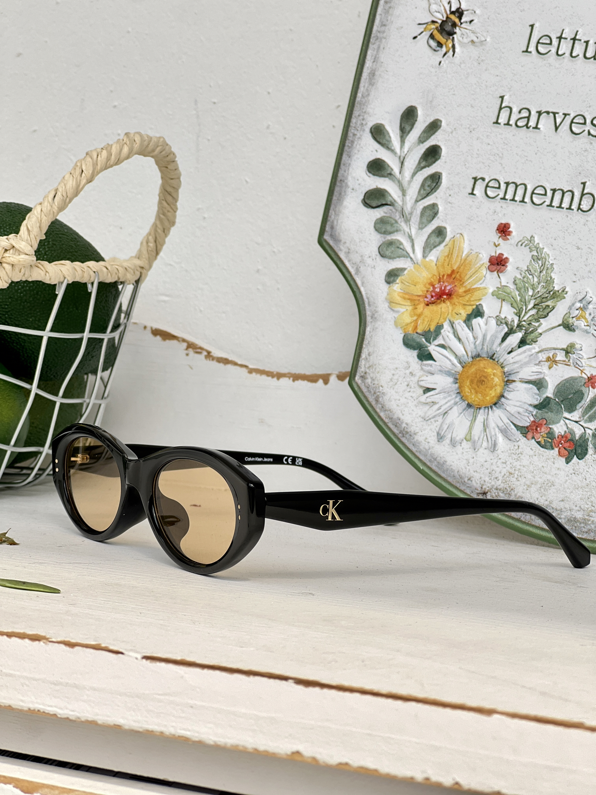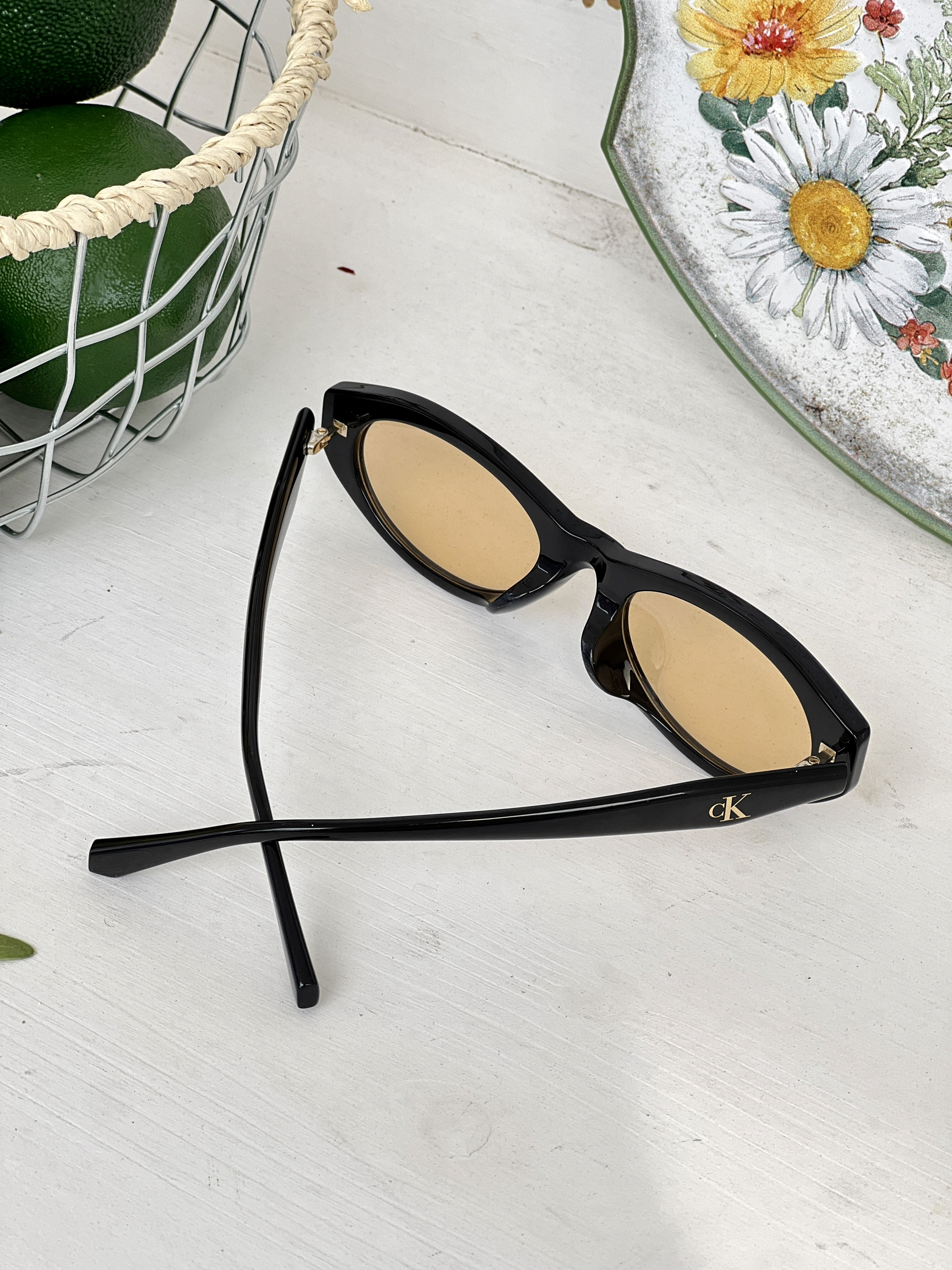 这副CK墨镜简直是我今年春天的穿搭作弊器👓 一体式鼻托设计真的友好 上脸轻到没负担 完全不压鼻子 戴一整天眼睛都舒服又清晰 是我喜欢的复古造型,时髦又不容易撞款 随便搭件黄格开衫就很有韩系画报感🖼️ 户外拍照的时候橘色镜片自带柔焦滤镜 阳光再刺眼也不怕眯眼 野餐、逛市集、开车🚗、citywalk都适配 行走的氛围感制造器🎀
