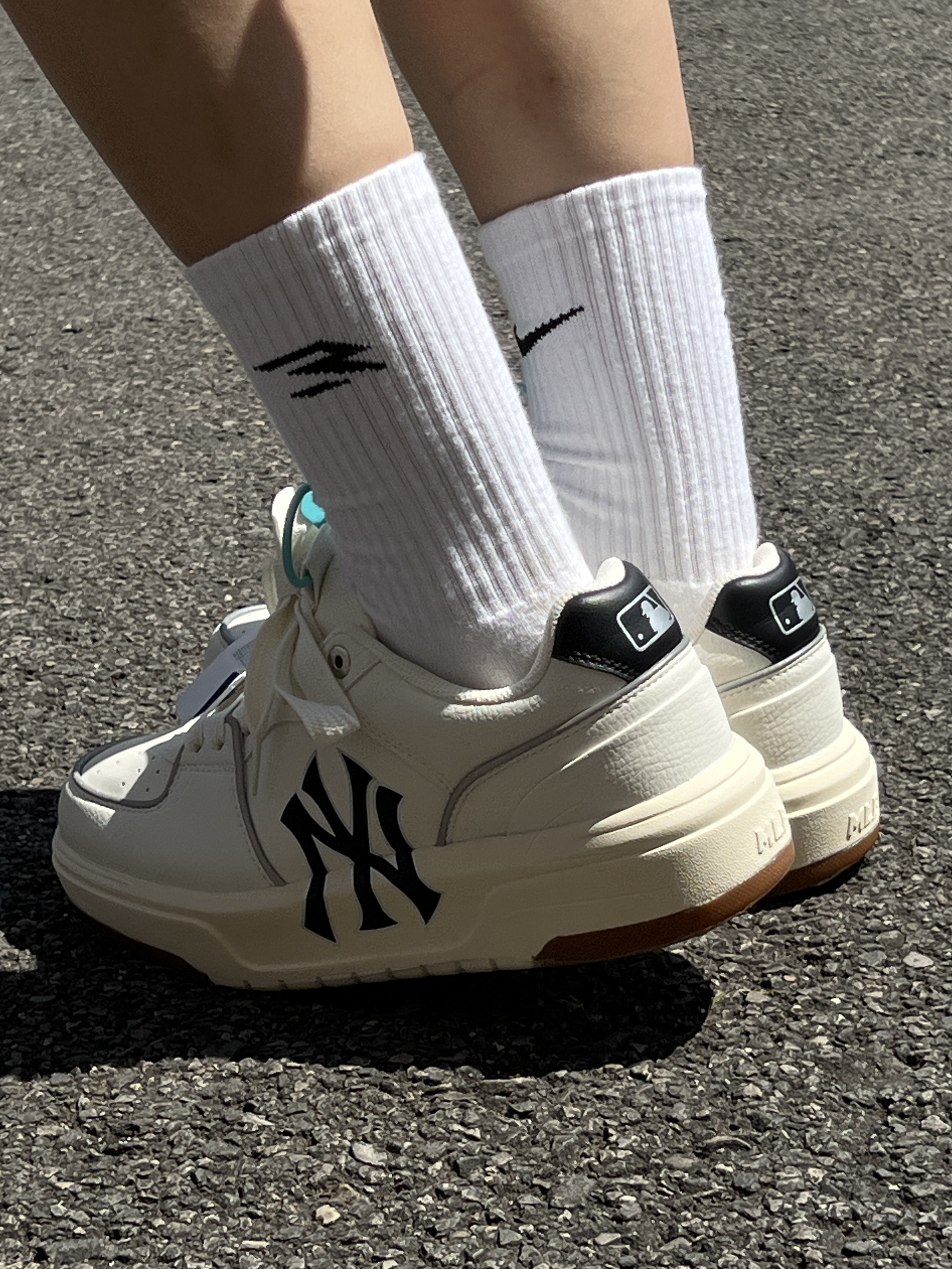 MLB的鞋子我买的比较少 但这双我还蛮喜欢的 有个3cm左右的小增高 鞋自身重量却很轻 版型很正 随便搭啥都充满少年感! 男生女生都可轻松驾驭 很适合做情侣鞋!