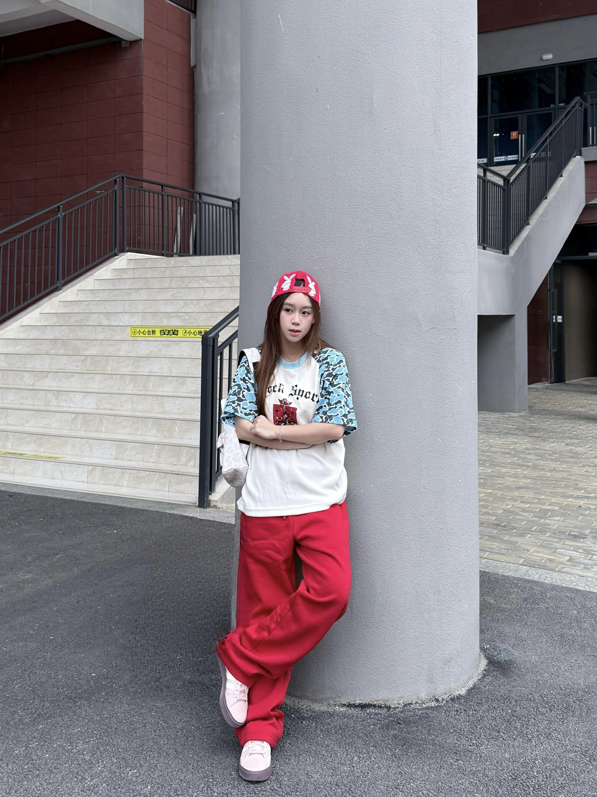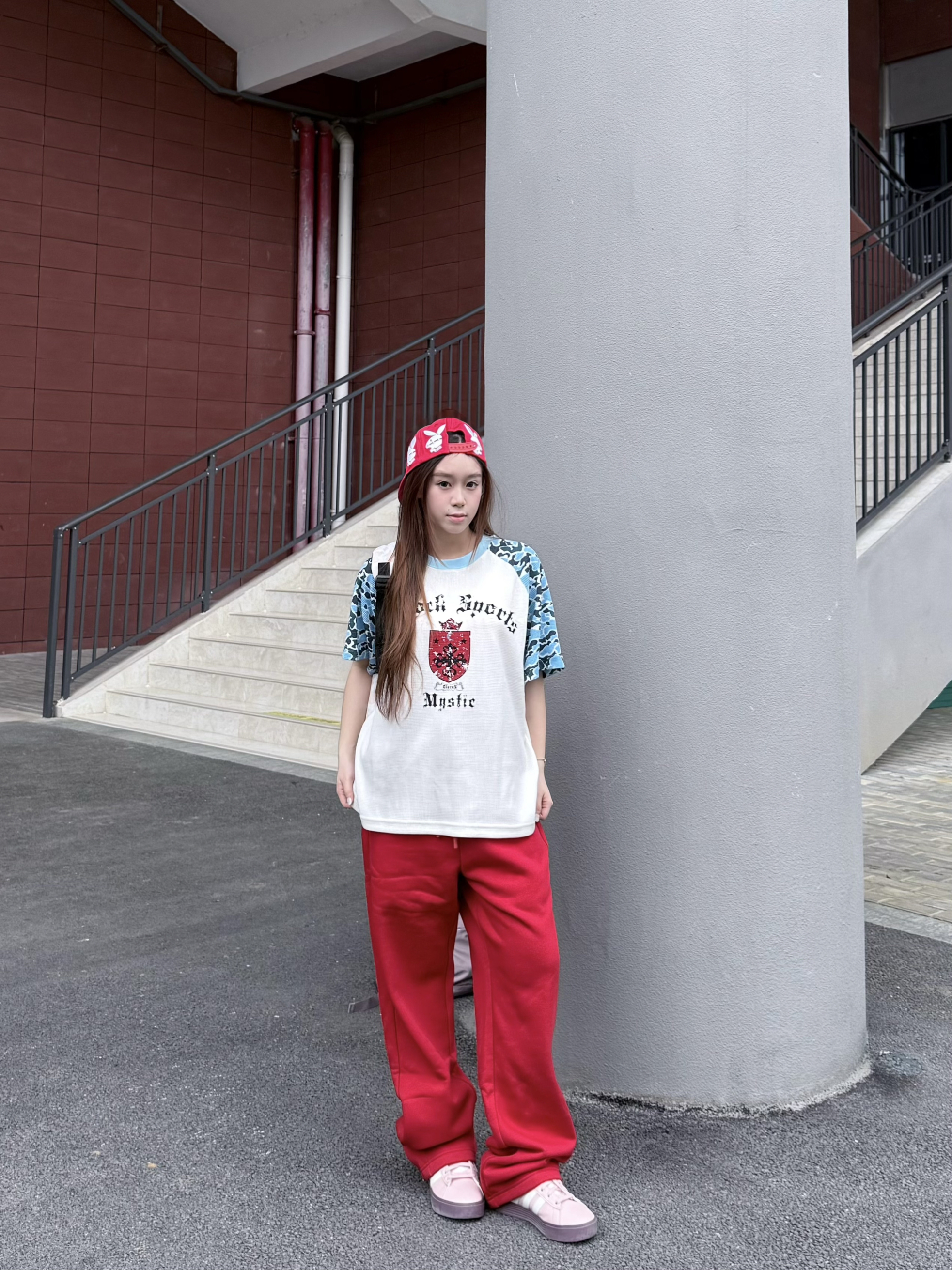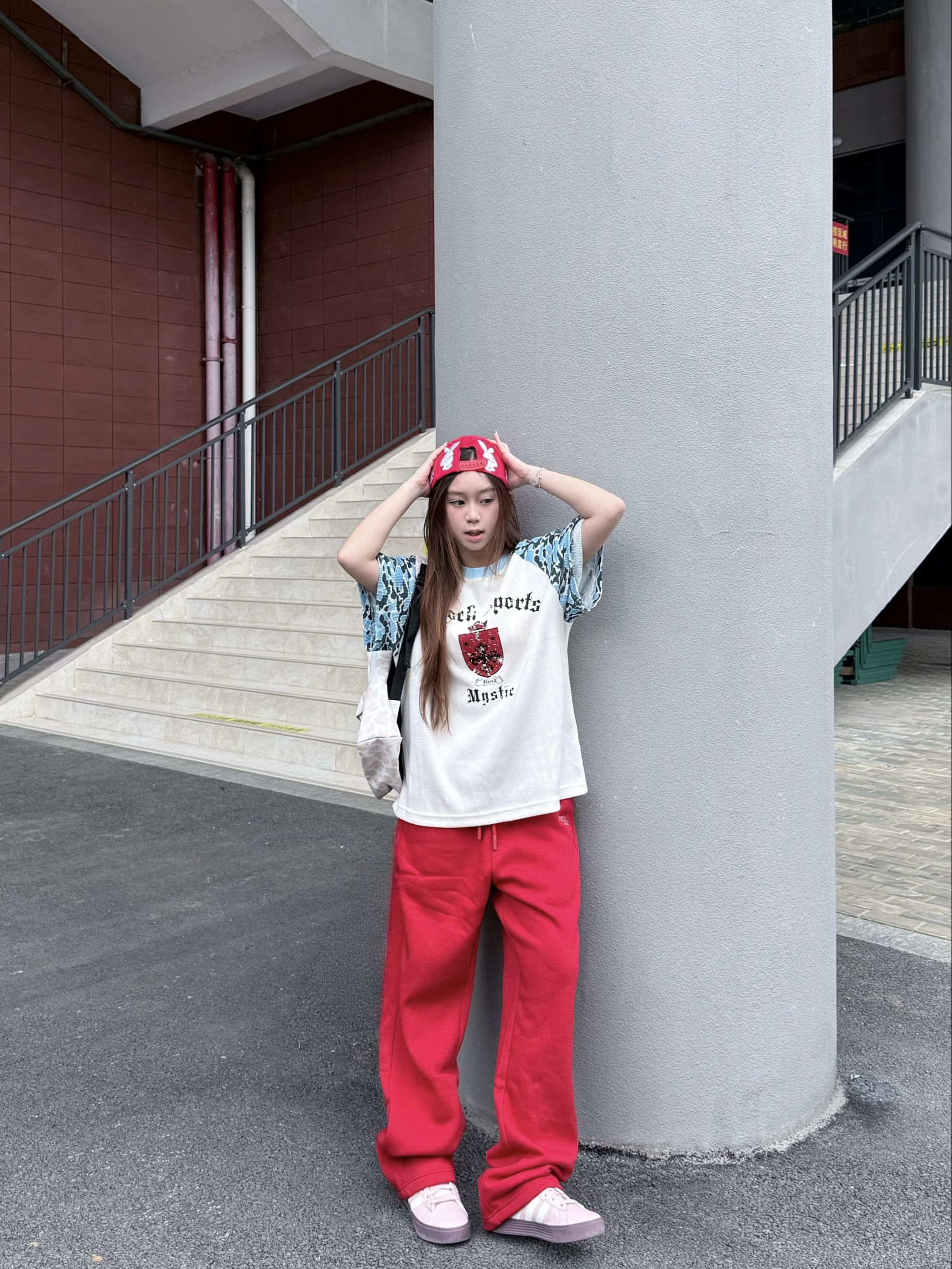 就喜欢穿这种看起来很有能量的颜色! whoosis新年特别款卫裤红红的很安心😌 整体是比较厚实加绒的质感 南方现在开春十度十几度的天气穿着也很暖和🔥 我160/45kg穿最小码 裤子微微宽松看起来很vibe!
