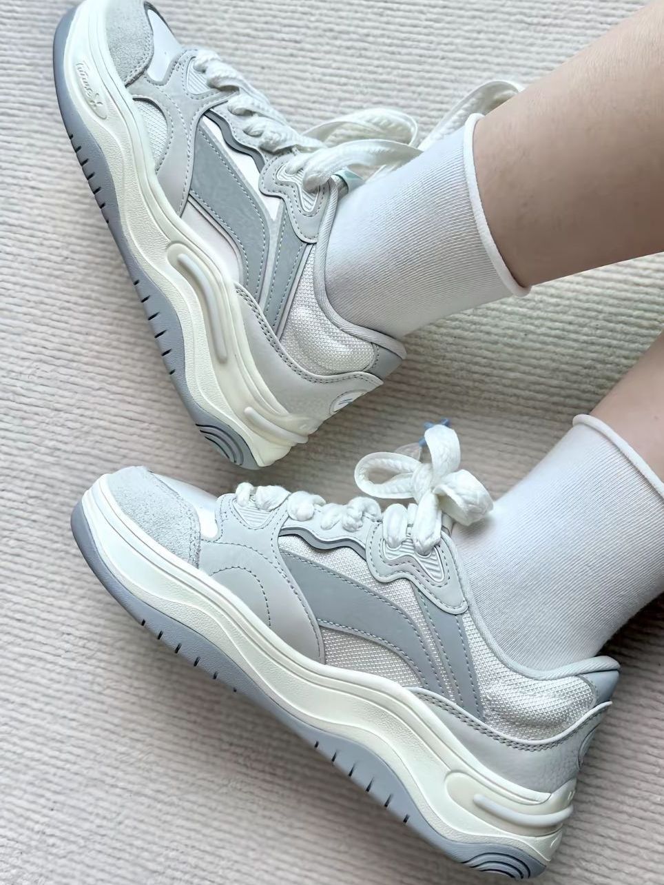 被这双李宁Future Flow狠狠拿捏了!浅灰奶白的海盐配色温柔又干净,波浪形厚底悄悄增高5cm,脚感软弹又舒服,搭牛仔裤、运动装都超适配,春日通勤、出游都很合适~