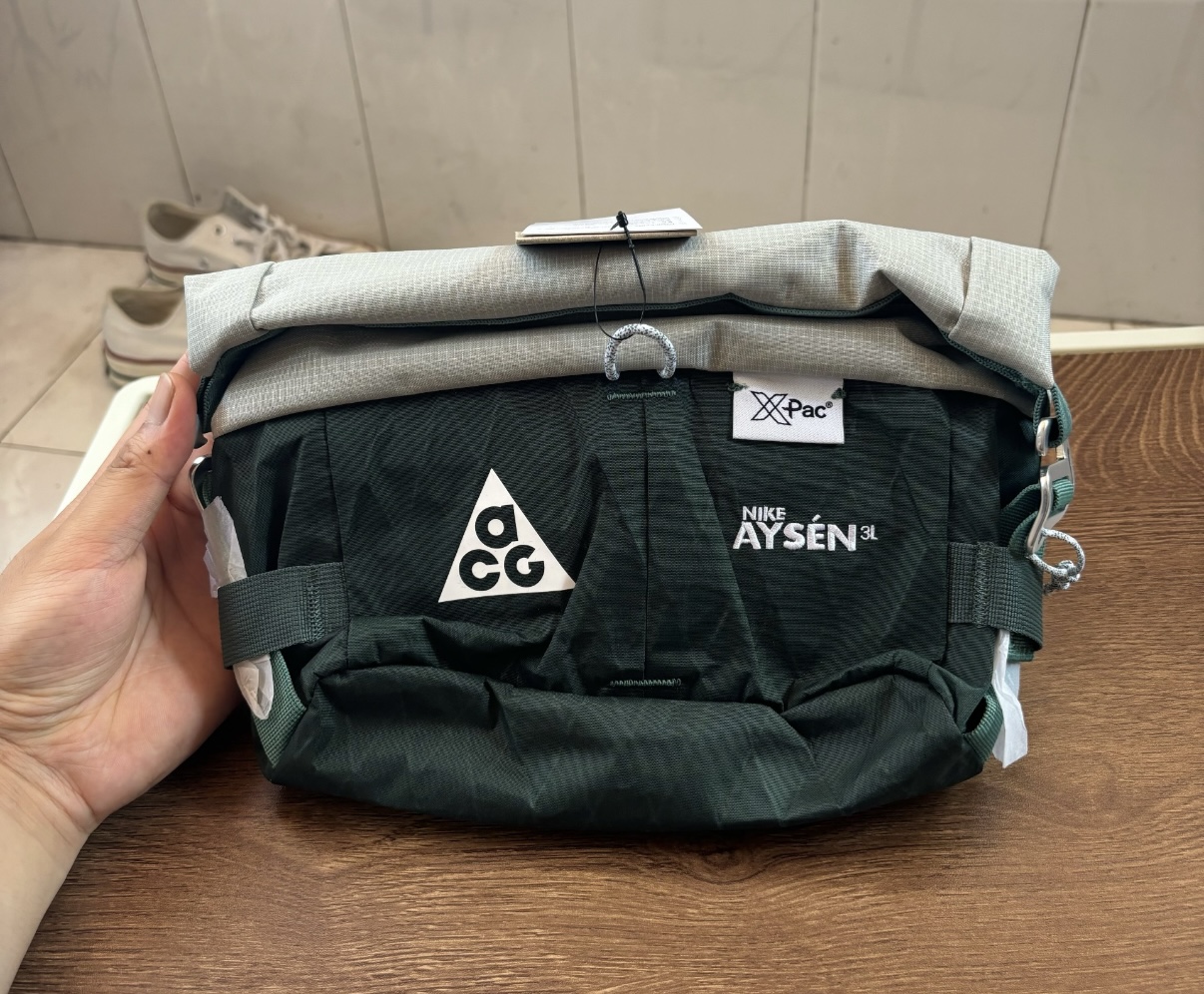 🎒Nike ACG Aysén 3L腰包,专为户外设计,采用轻量X-Pac面料,耐磨防水,超适合徒步、露营等户外活动!3L容量刚好,日常随身物品轻松装下。正面ACG三角标志+“AYSÉN 3L”字样,机能感满满✨。可调节肩带,腰包斜挎都OK,灵活实用。灵感源自户外探险,功能与潮流兼具,户外爱好者和机能风穿搭必备!