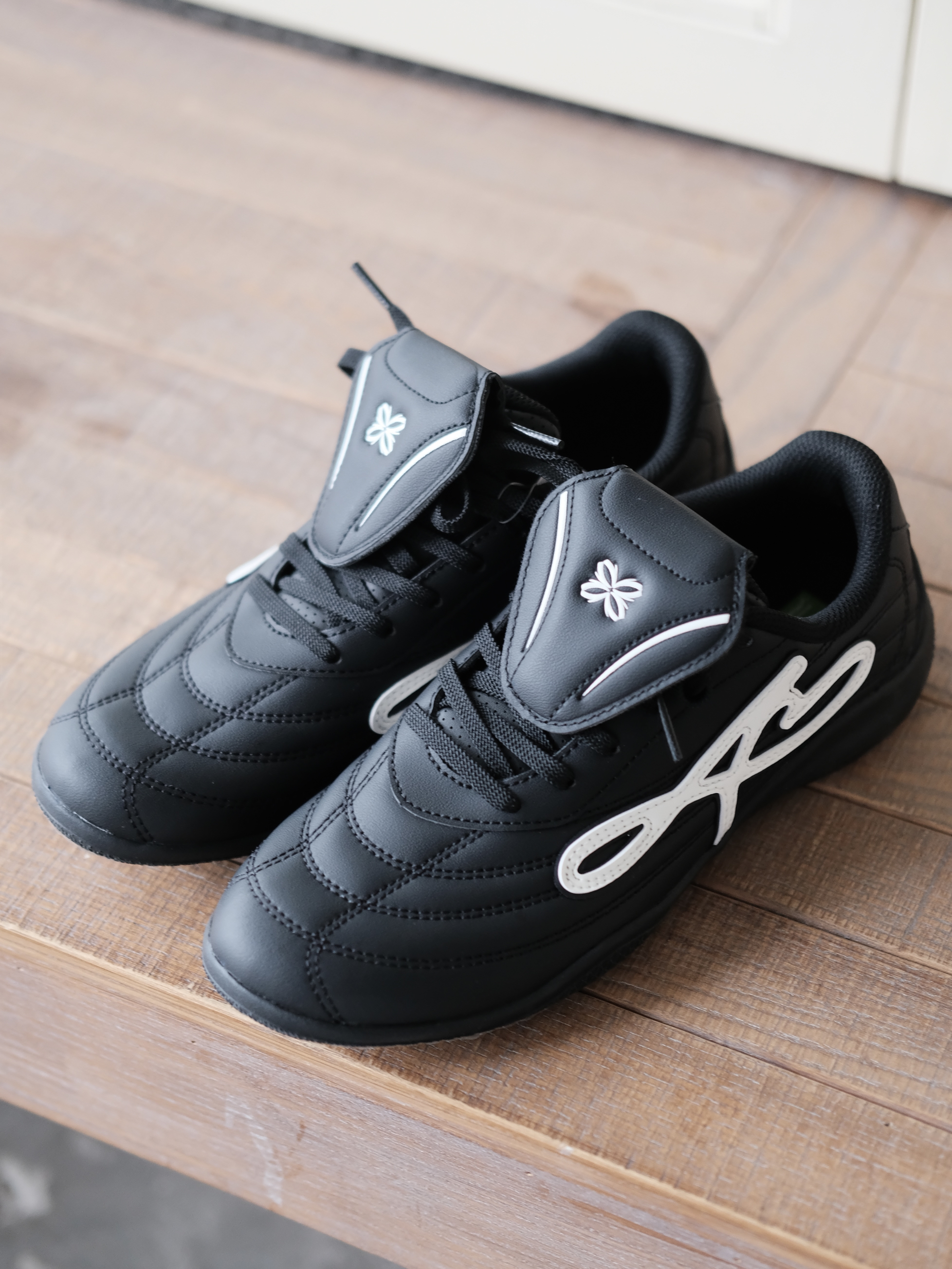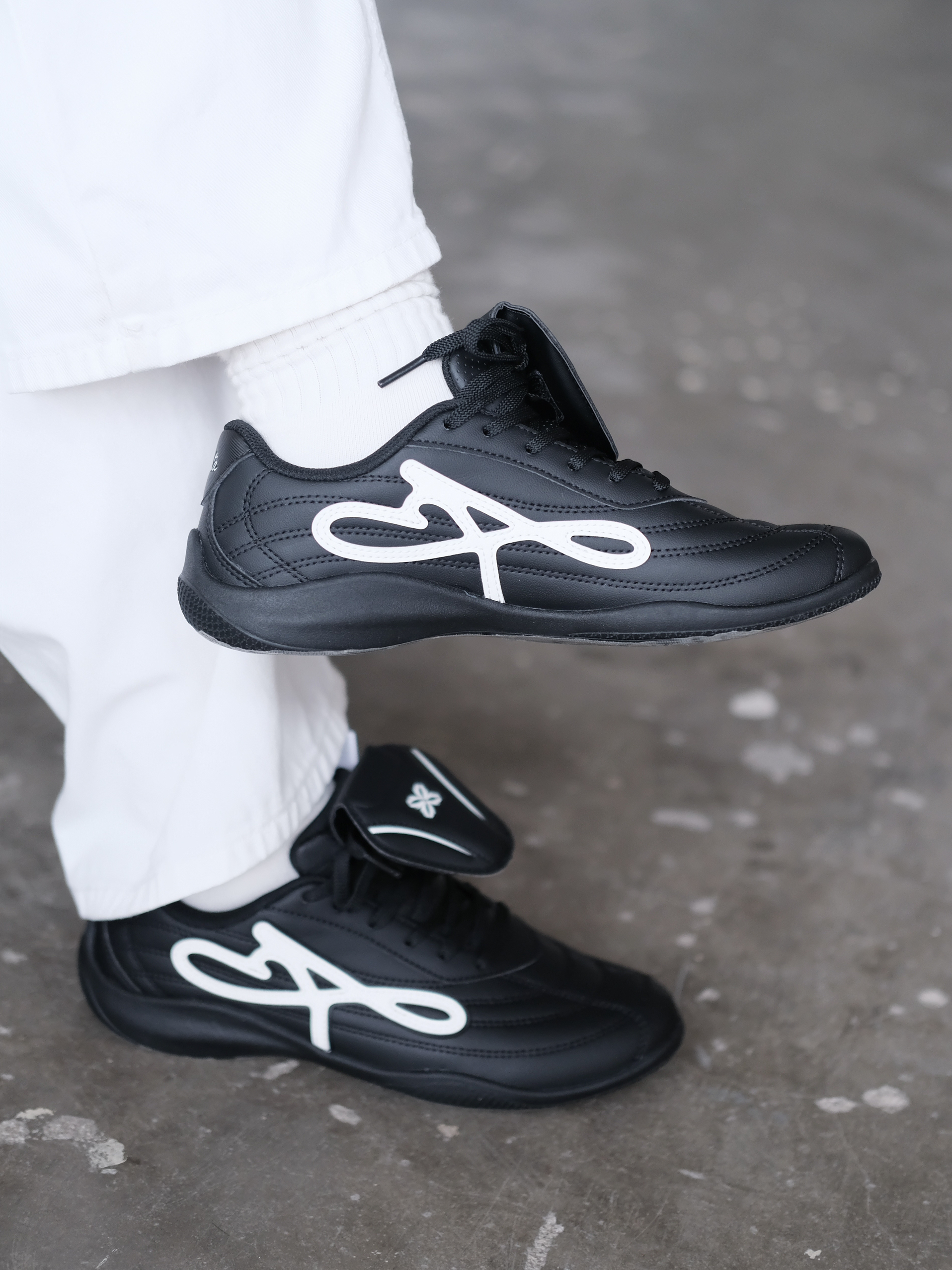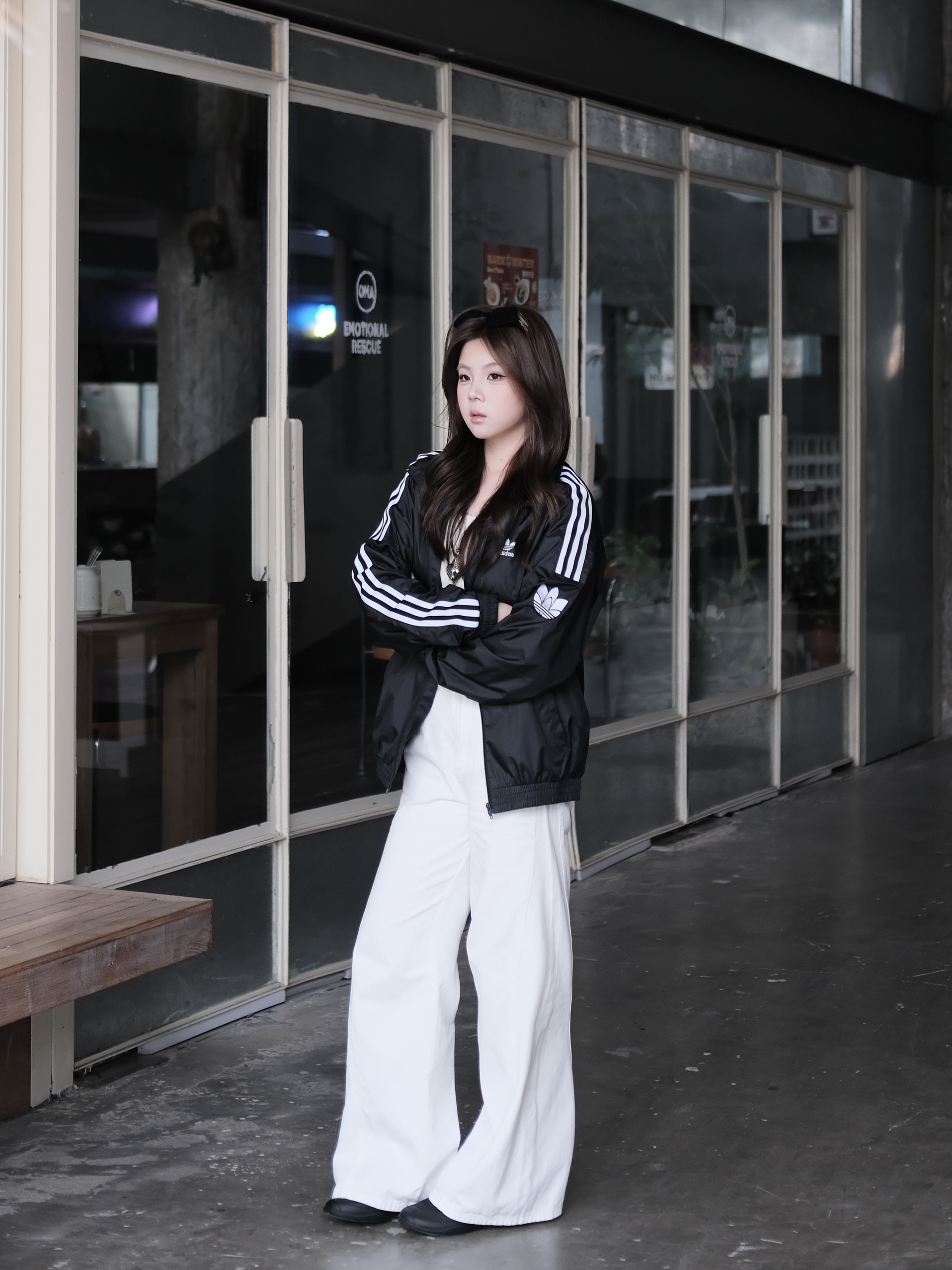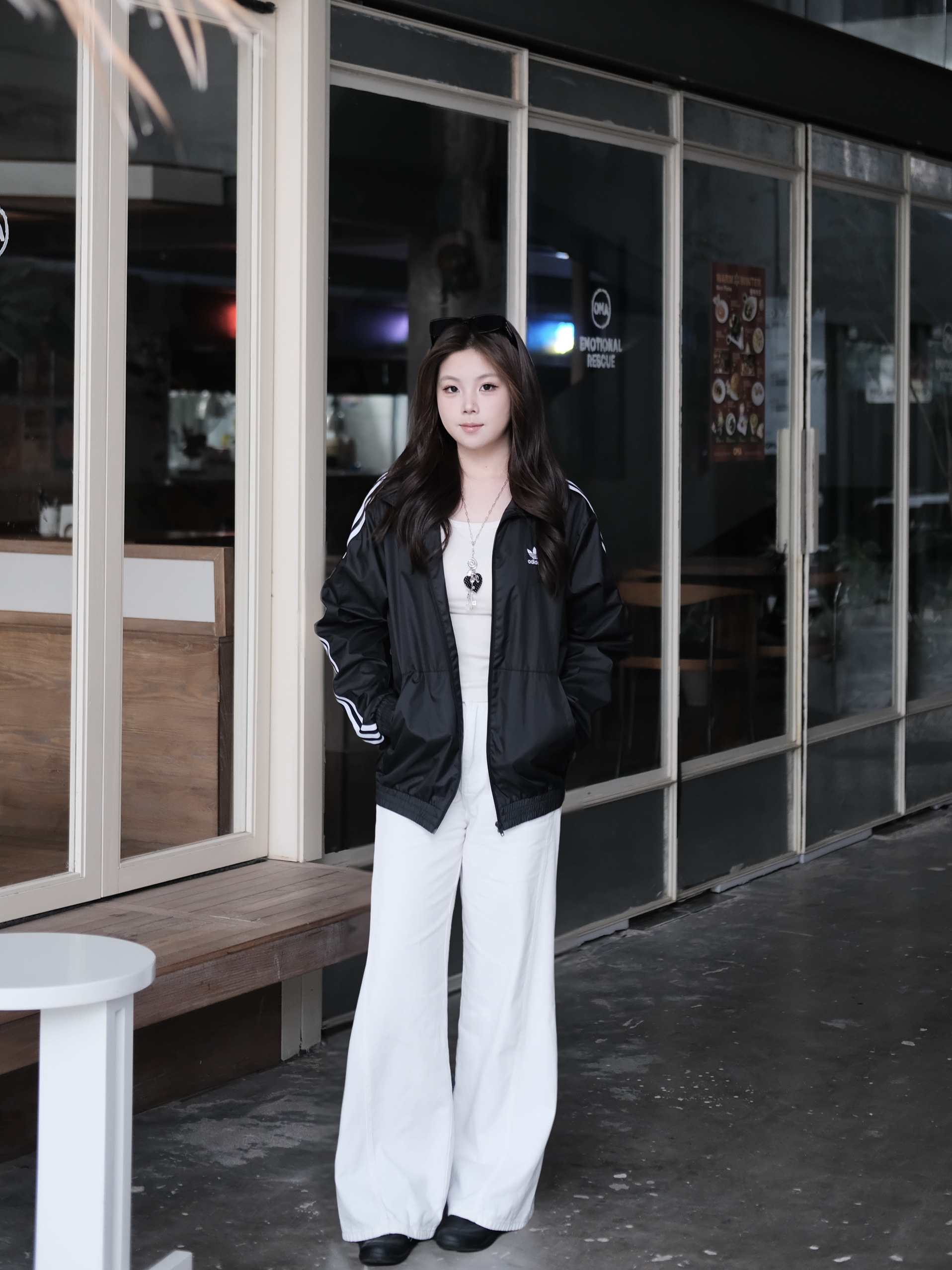 黑白配也能穿出不一样的感觉 脚上是安踏的德训鞋 鞋舌的盖盖感觉很有特点 薄底鞋穿上去脚感舒适 走久了也不累脚 日常搭配毫不费力~