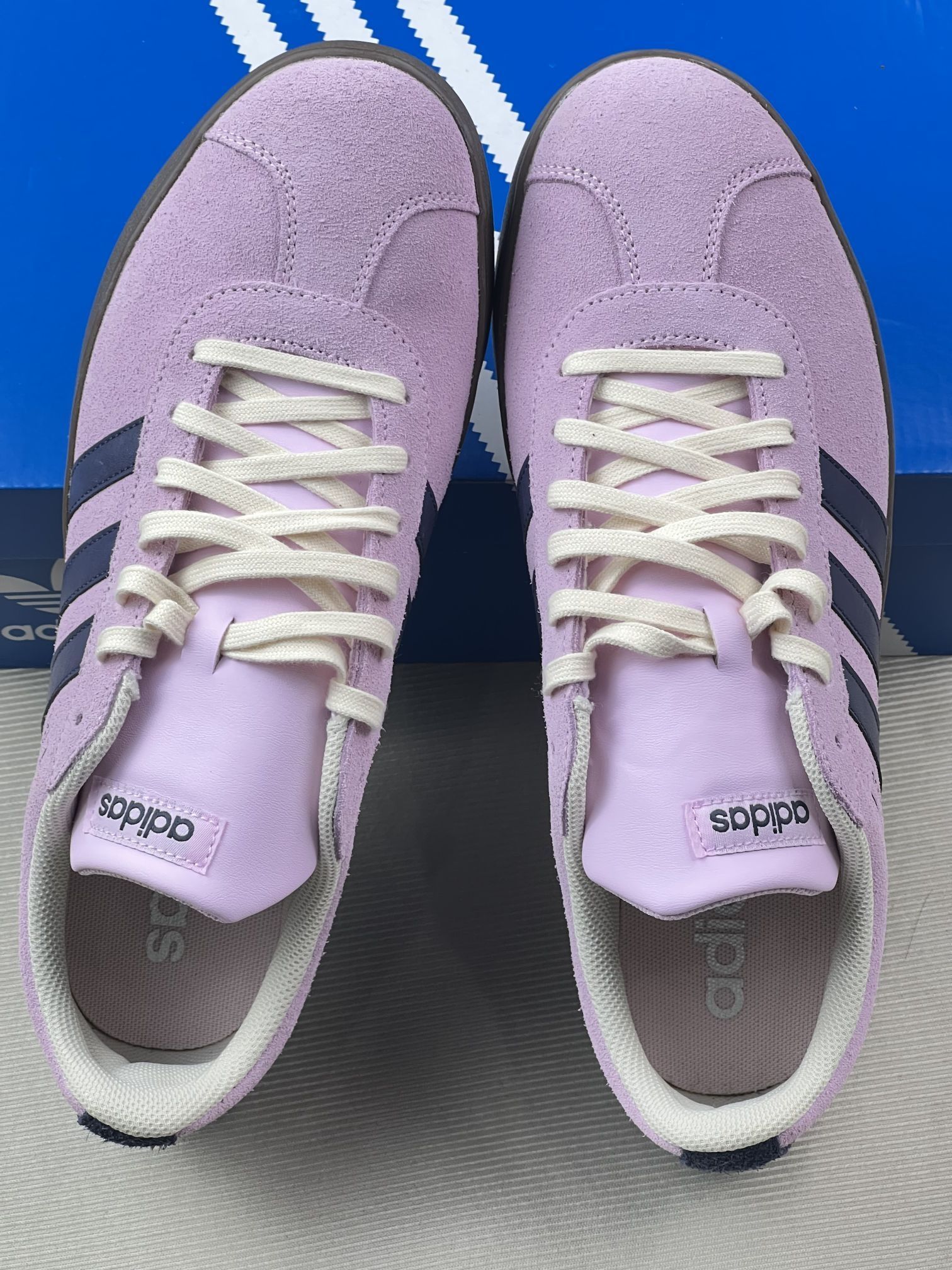 本篇笔记关联了adidas VL Court 2.0 T头鞋 德训鞋 板鞋 百搭轻便复古防滑耐磨轻运动合成革圆头平跟 紫色/暗藏青/乳白色等商品,为用户提供真实的使用体验和购买参考。