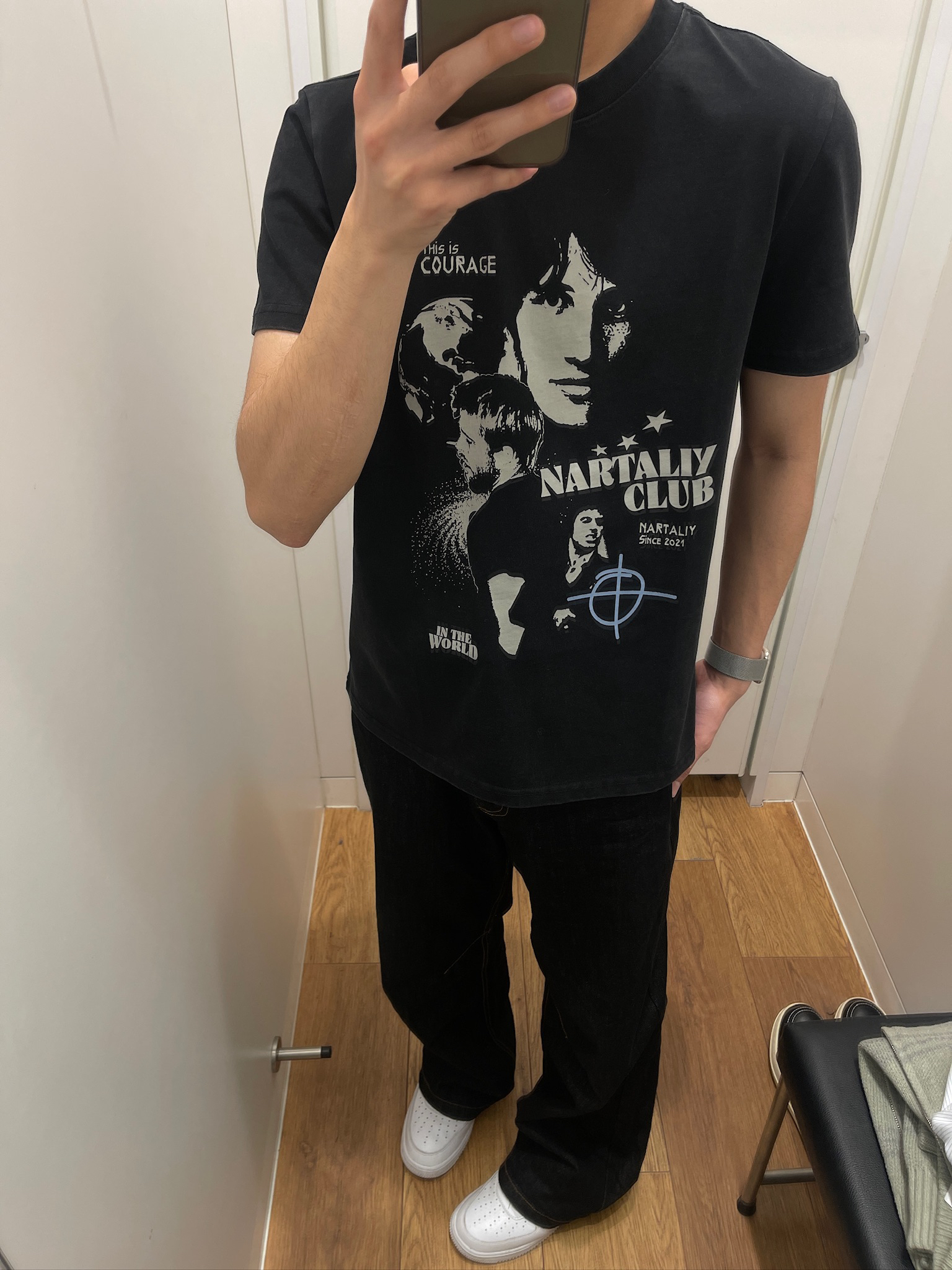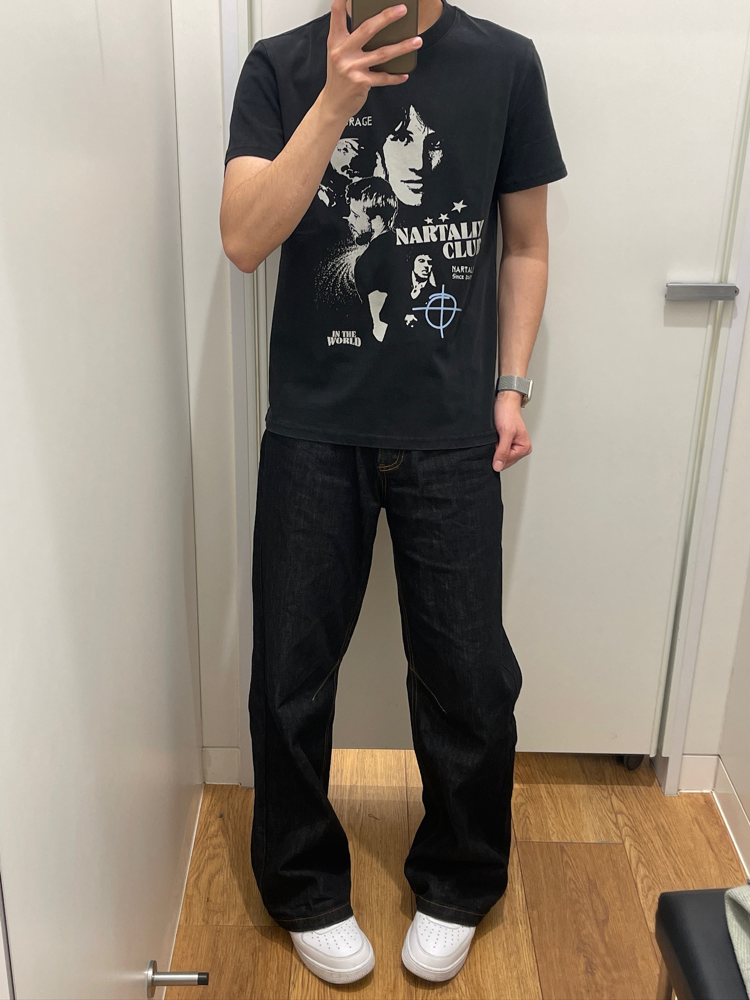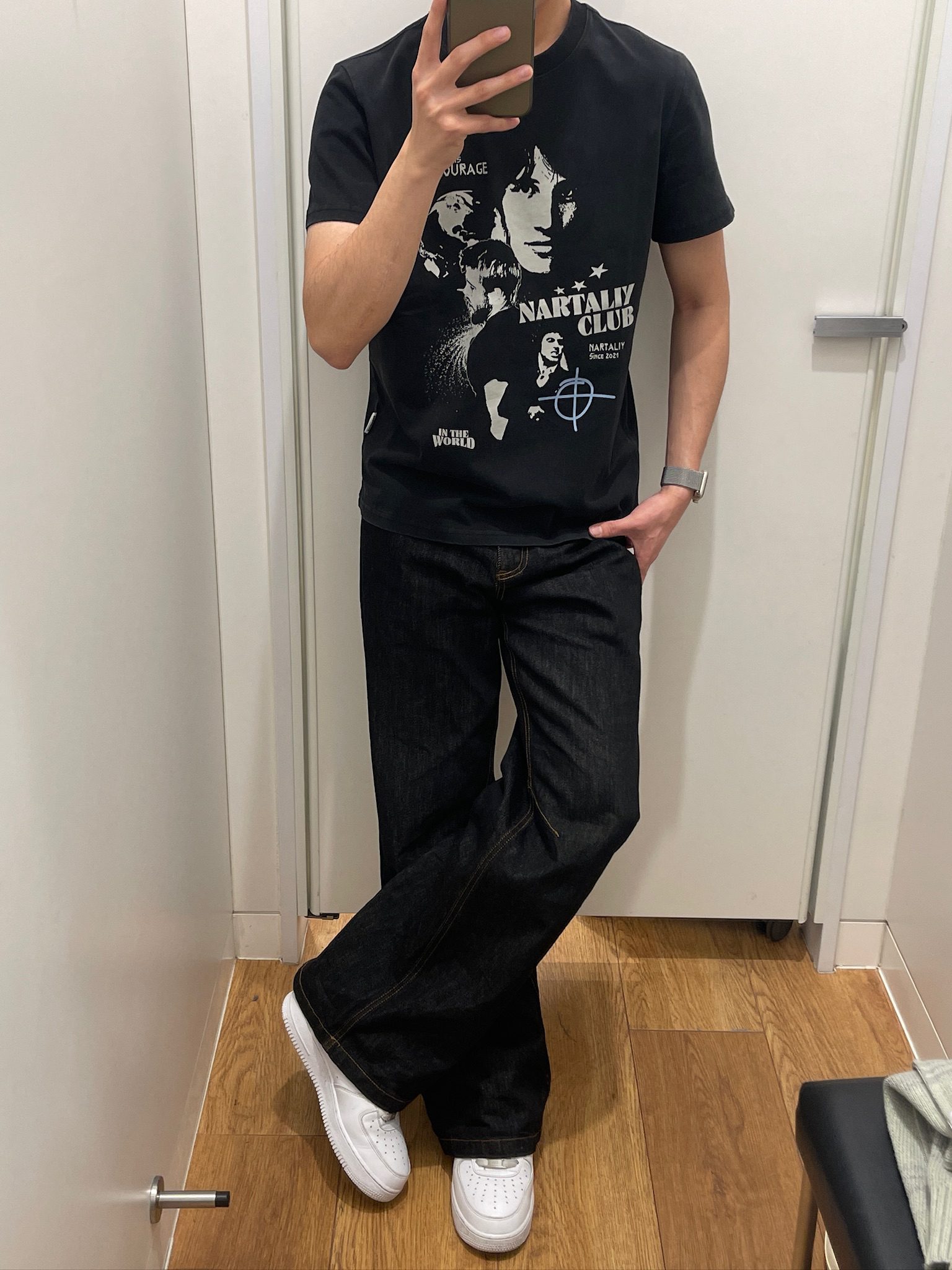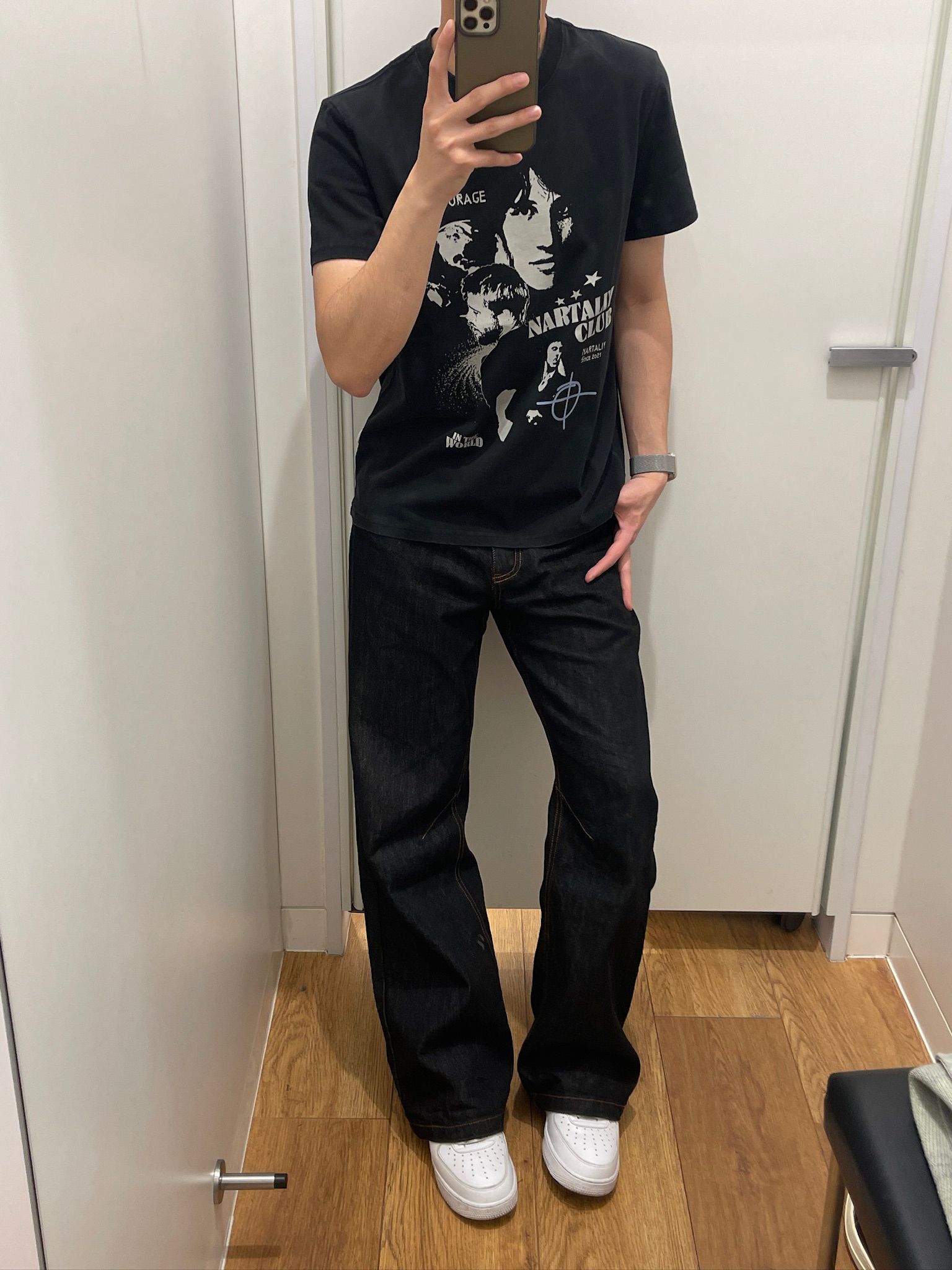 终于找到一条不挑人的牛仔裤了🤩 黑牛颜色耐脏又显瘦,微喇裤脚刚好盖住鞋面,显高又利落~面料是那种有筋骨的原牛,不会软塌塌贴在腿上,久坐也不皱👌 我平时配黑T、卫衣都好看,走路的时候裤脚微微晃,氛围感直接拉满,男生日常穿真的很加分💯