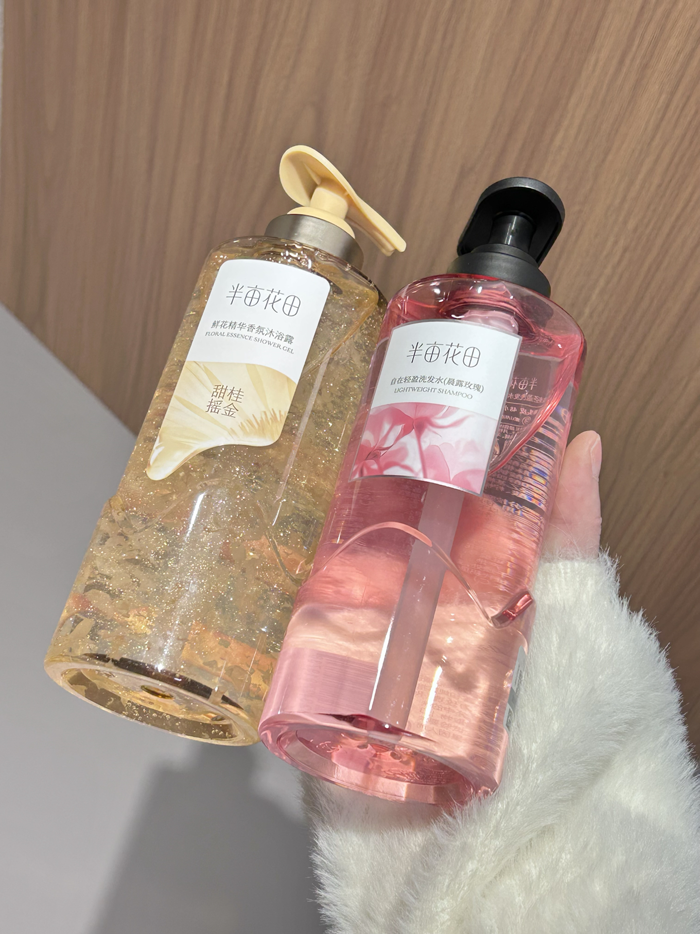 就是介个半亩花田洗护套装 确实有点子好用的 自在轻盈洗发水和甜桂摇金沐浴露 都是我喜欢的花香调诶 洗发水是玫瑰花香 洗完头发之后头皮挺清爽的 头发蓬松顺滑 味道还是香香的 沐浴露里面有真实桂花花瓣 颜值hin高 用完之后整个被窝都是香香的 刚好天气热起来用这套太合适啦 #半亩花田鲜花精华沐浴露 #半亩花田控油蓬松洗发水 #心动礼物局 #春夏伪体香天花板 #我闻到春天的...