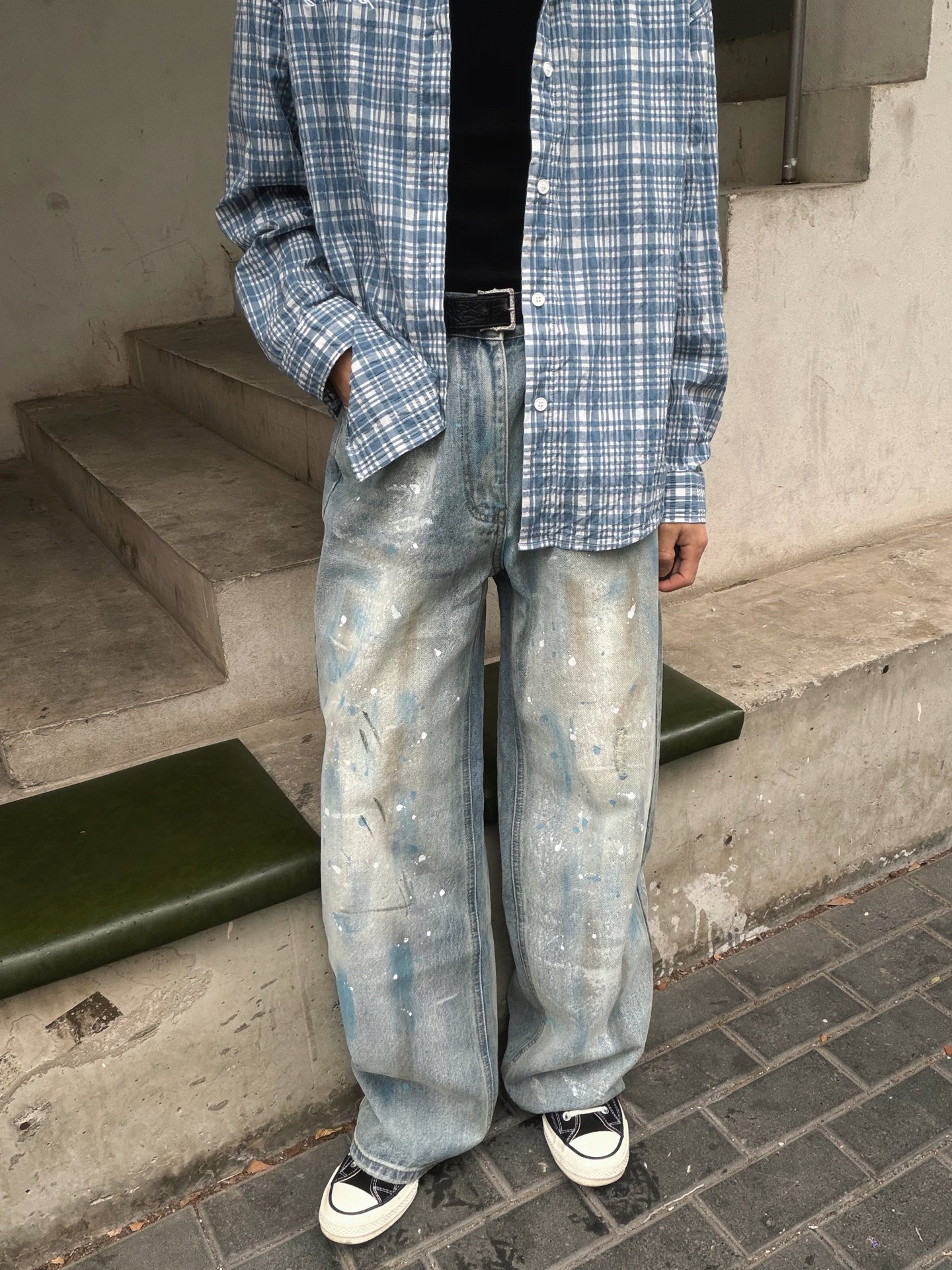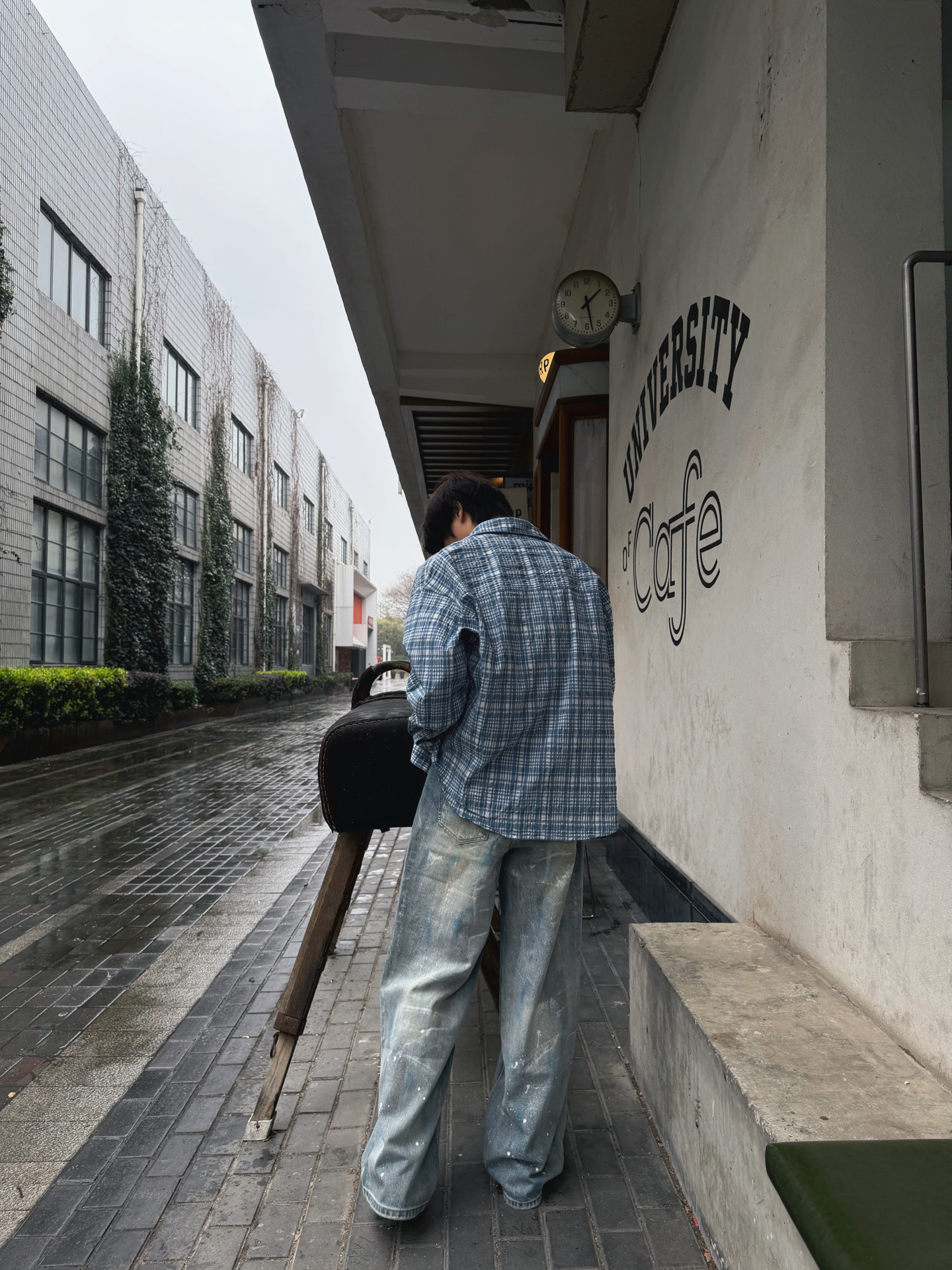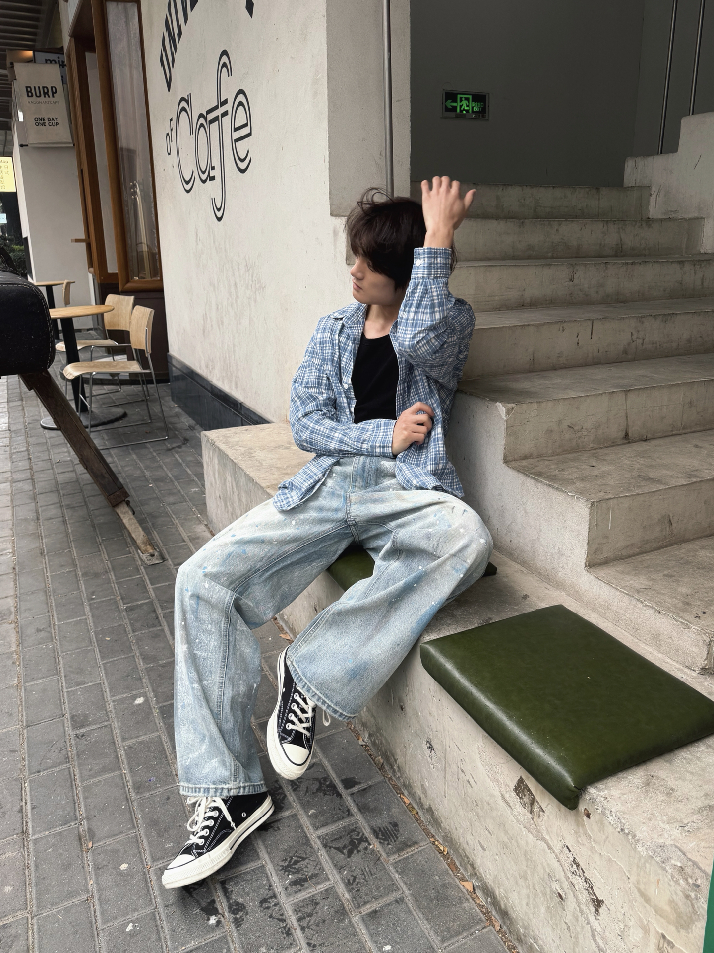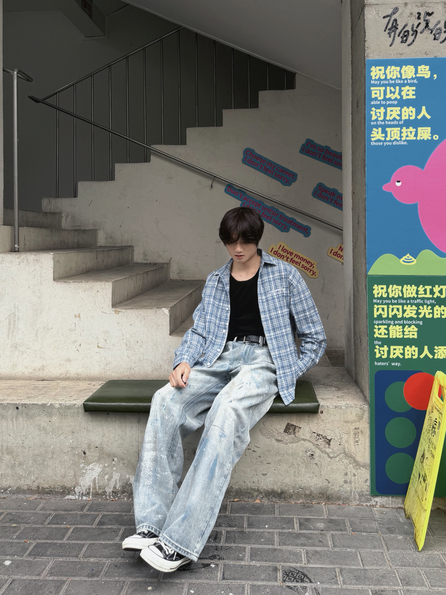 ootd | 雨天也挡不住的cityboy☔️ 蓝白格纹衬衫内搭黑T, 经典不出错的层次感✨ 搭配做旧泼墨牛仔裤, 宽松直筒版型一直都很喜欢 一点点做旧感正是潮流密码🔒 在湿漉漉的街道里,捕捉一份慵懒的松弛感。 #春日色彩预言家 #春天要把彩色穿个遍 #这条裤子我必买 #今日份穿百搭牛仔裤 #我真的超会穿