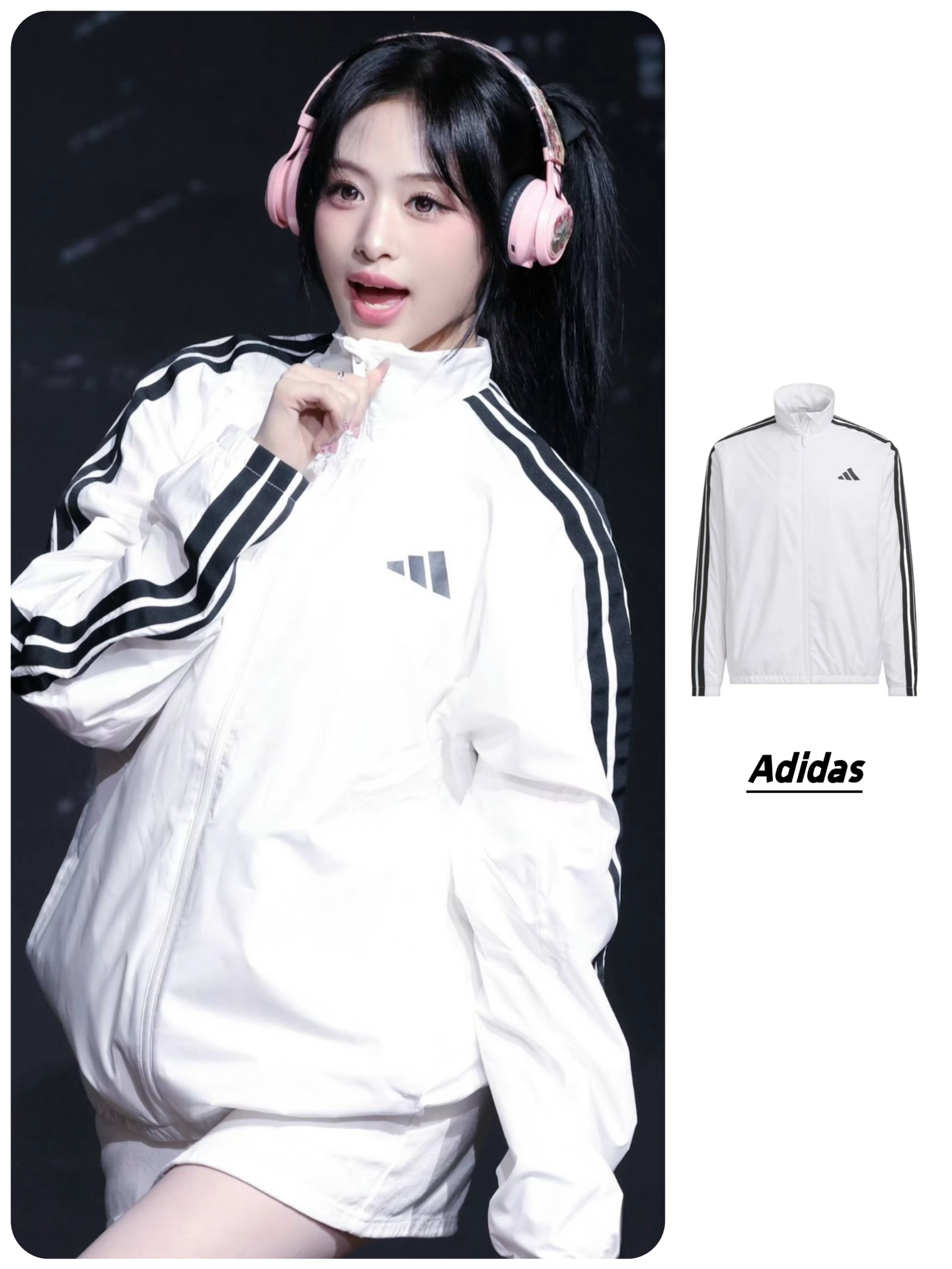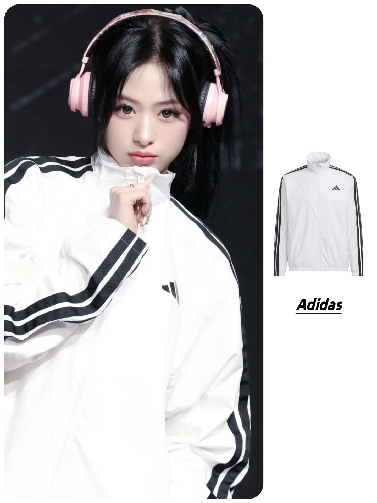 本篇笔记关联了【Ahyeon同款】Adidas/阿迪达斯 Sportswear防风拉链条纹高领长袖夹克 KA1291 白等商品,为用户提供真实的使用体验和购买参考。