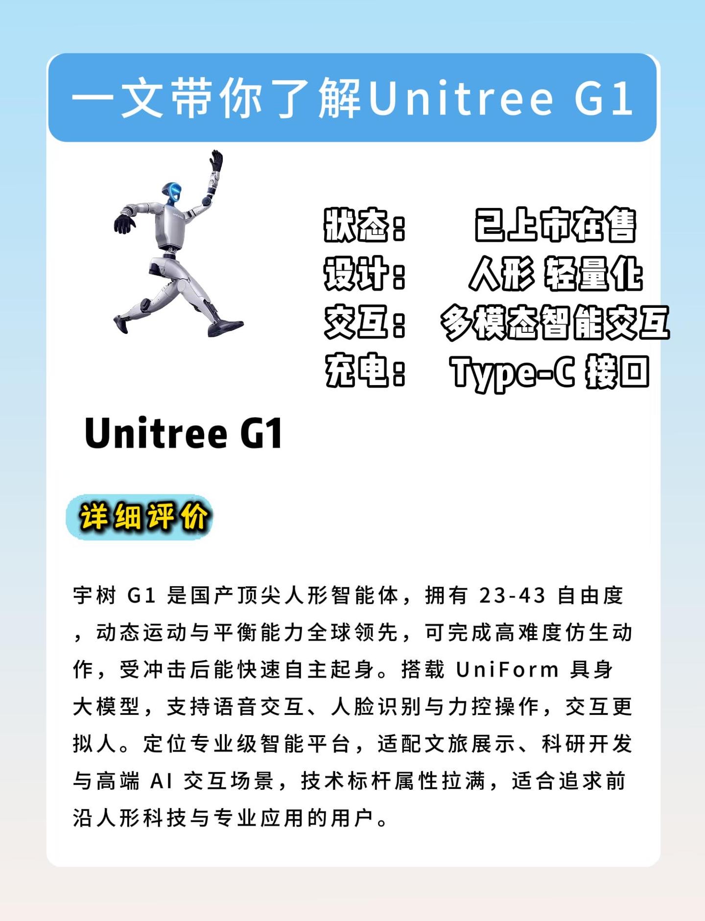 本篇笔记关联了Unitree/宇树 G1 智能机器人 360° 深度感知 29个关节电机 银黑色、Unitree/宇树 Go2 Air 编程教育机器人 四足机器狗 具身智能 超强效能 银色等商品,为用户提供真实的使用体验和购买参考。