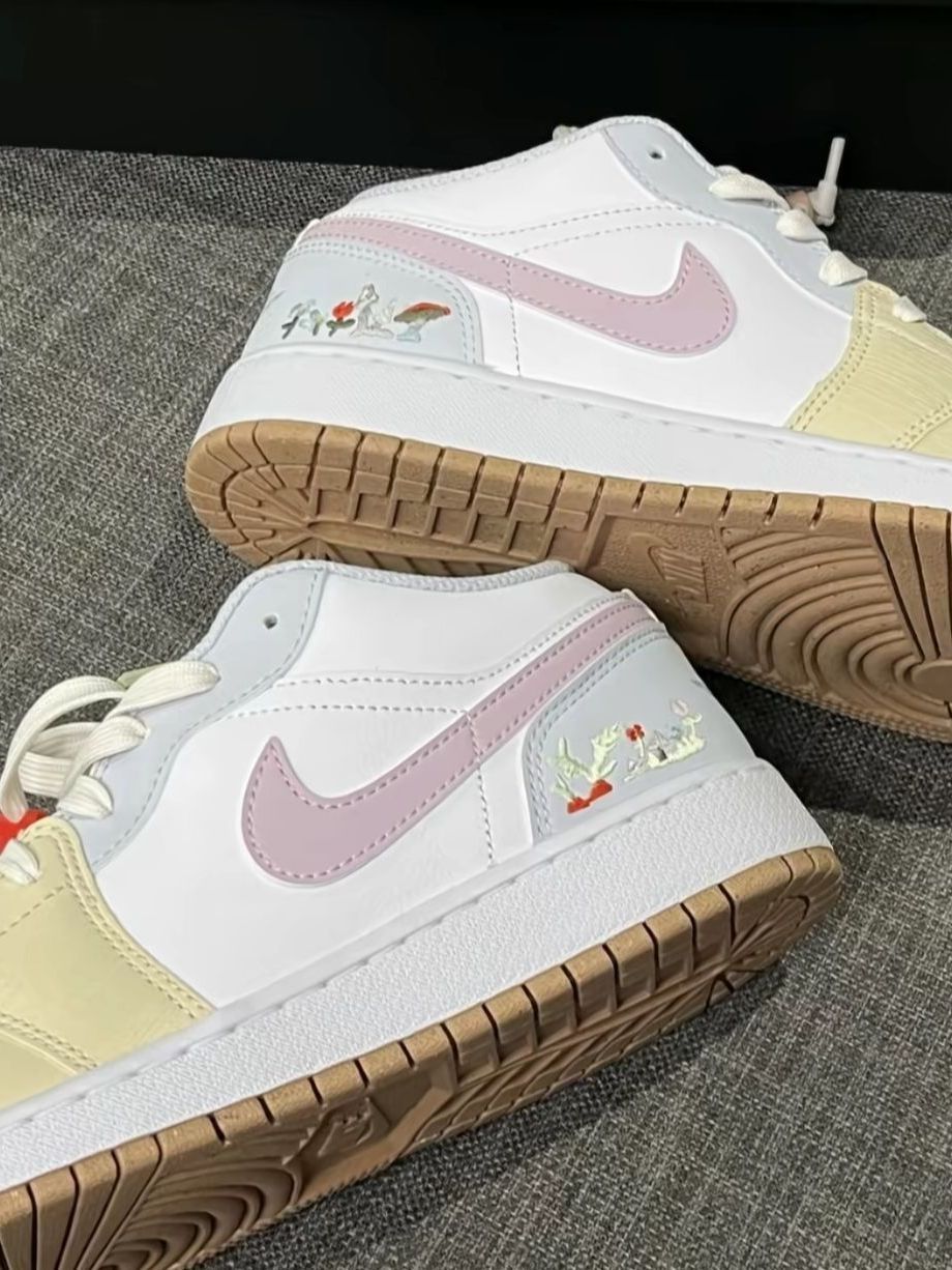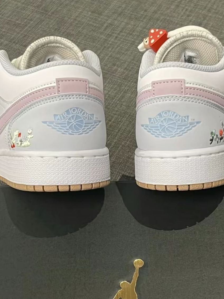 谁能拒绝这双奶fufu的AJ1 Low啊!奶白+浅黄拼色搭配粉紫勾子,像咬了一口草莓奶油蛋糕,可爱草莓挂饰+后跟精致刺绣细节拉满,温柔又减龄。经典低帮版型,脚感舒适不磨脚,不管是搭百褶裙、牛仔裤还是休闲裤,都能轻松营造出春日甜妹氛围感,甜妹党闭眼冲!