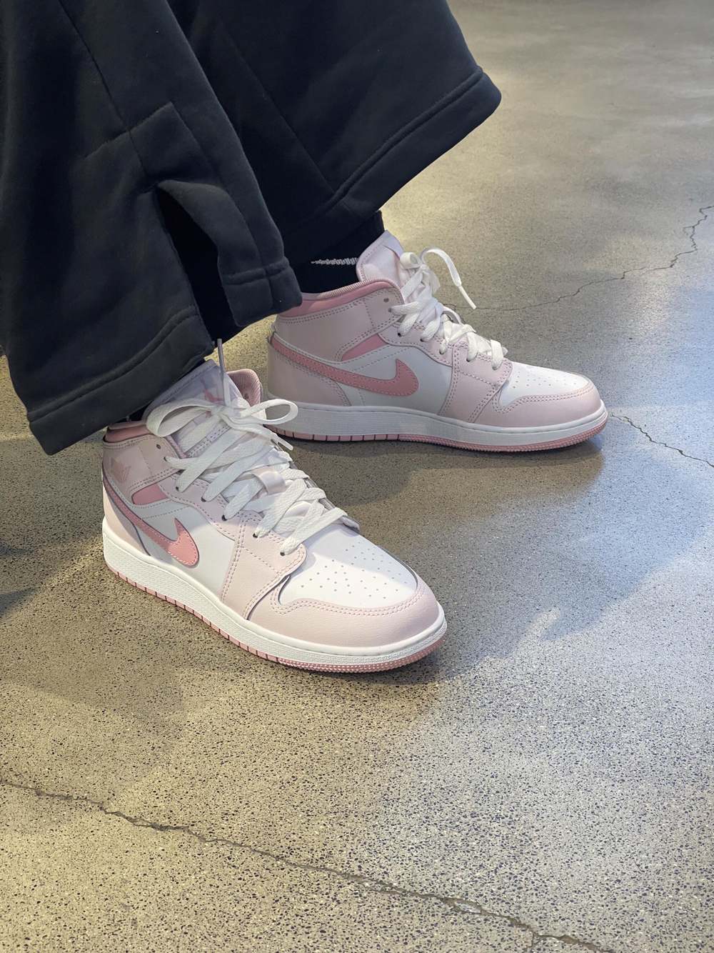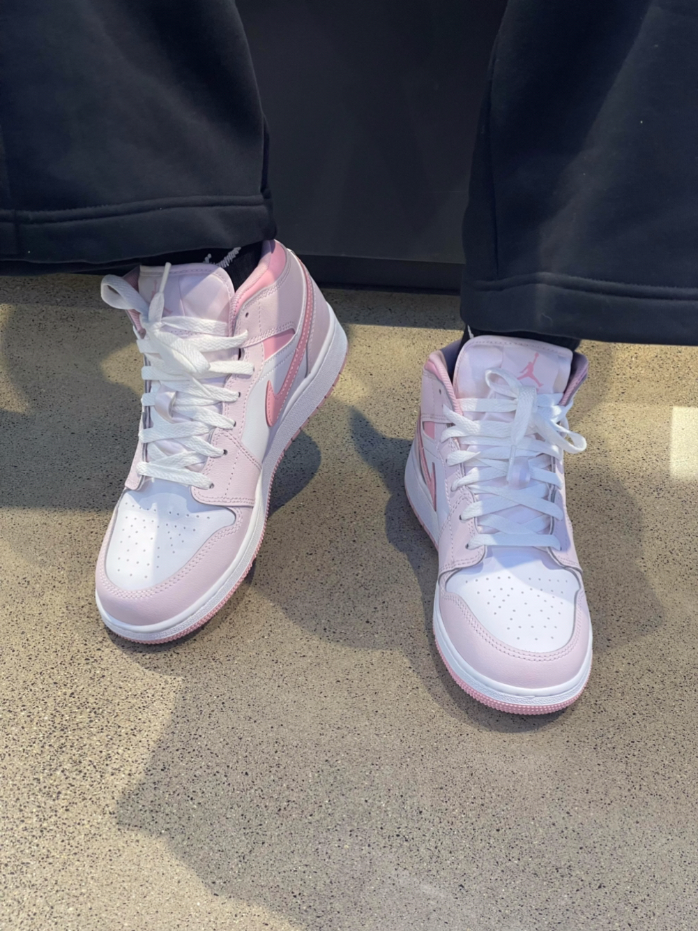 谁懂啊!这双粉白AJ1 Mid真的甜到心巴上🎀 奶白+淡粉的渐变拼接, 像把春日樱花揉进鞋里, 温柔又干净,低饱和色调完全不挑皮。 经典中帮鞋型修饰脚踝, 搭配白色鞋带和同色系外底, 细节里全是少女感, 软乎乎的像一颗樱花马卡龙。 搭卫裤、牛仔裤、百褶裙都超适配, 日常出街、约会都能穿, 甜妹和温柔党闭眼冲都不亏!
