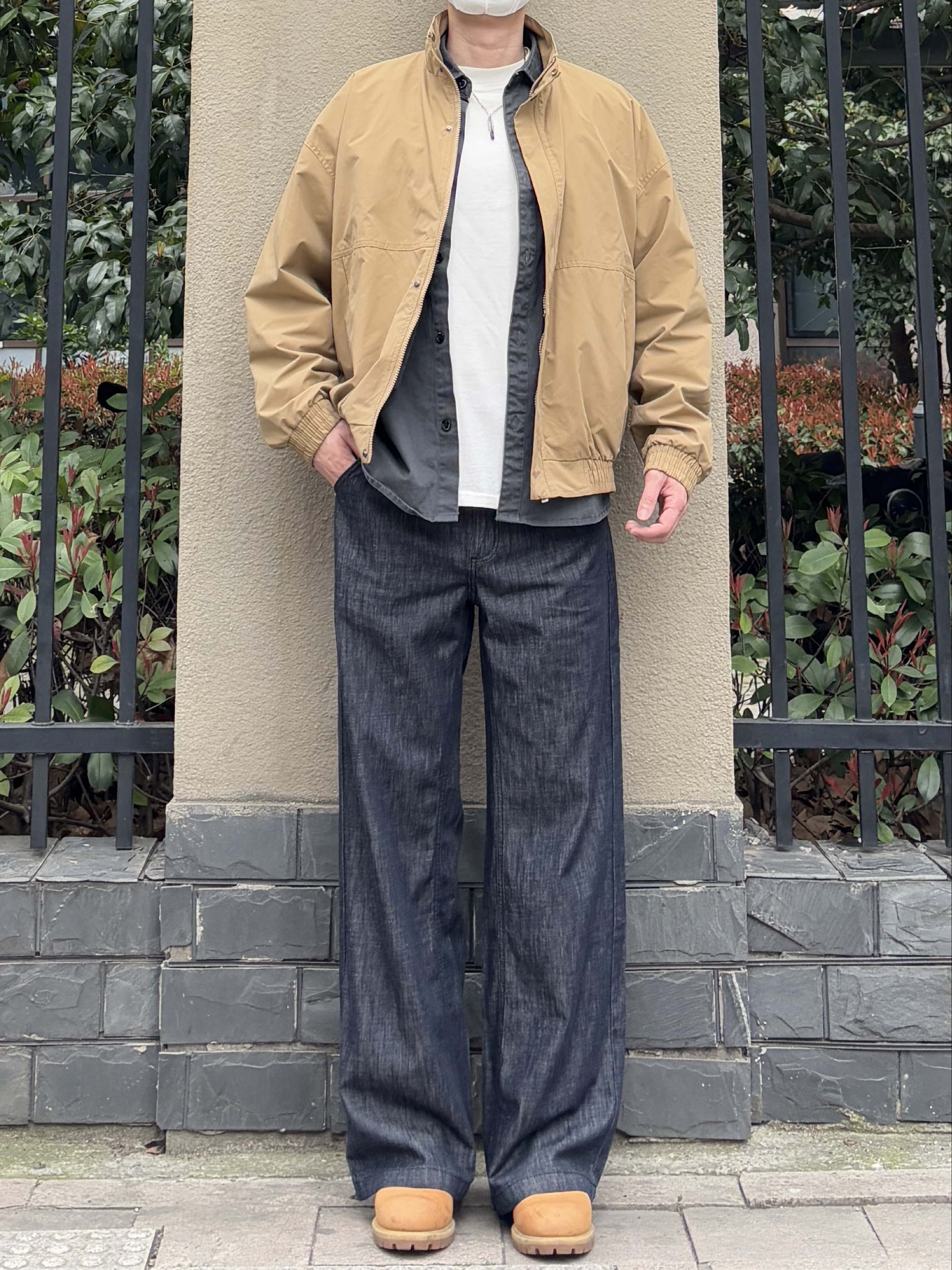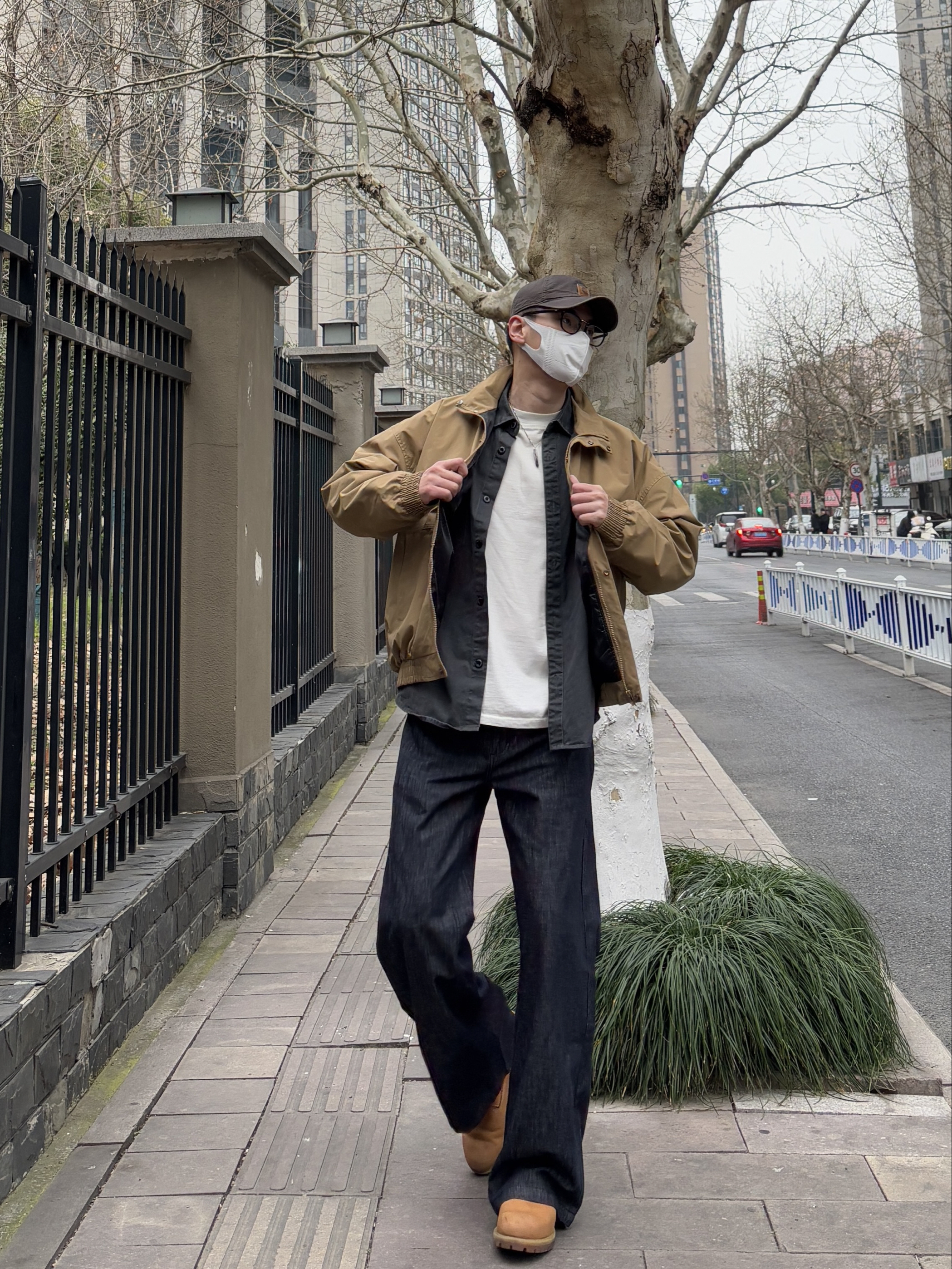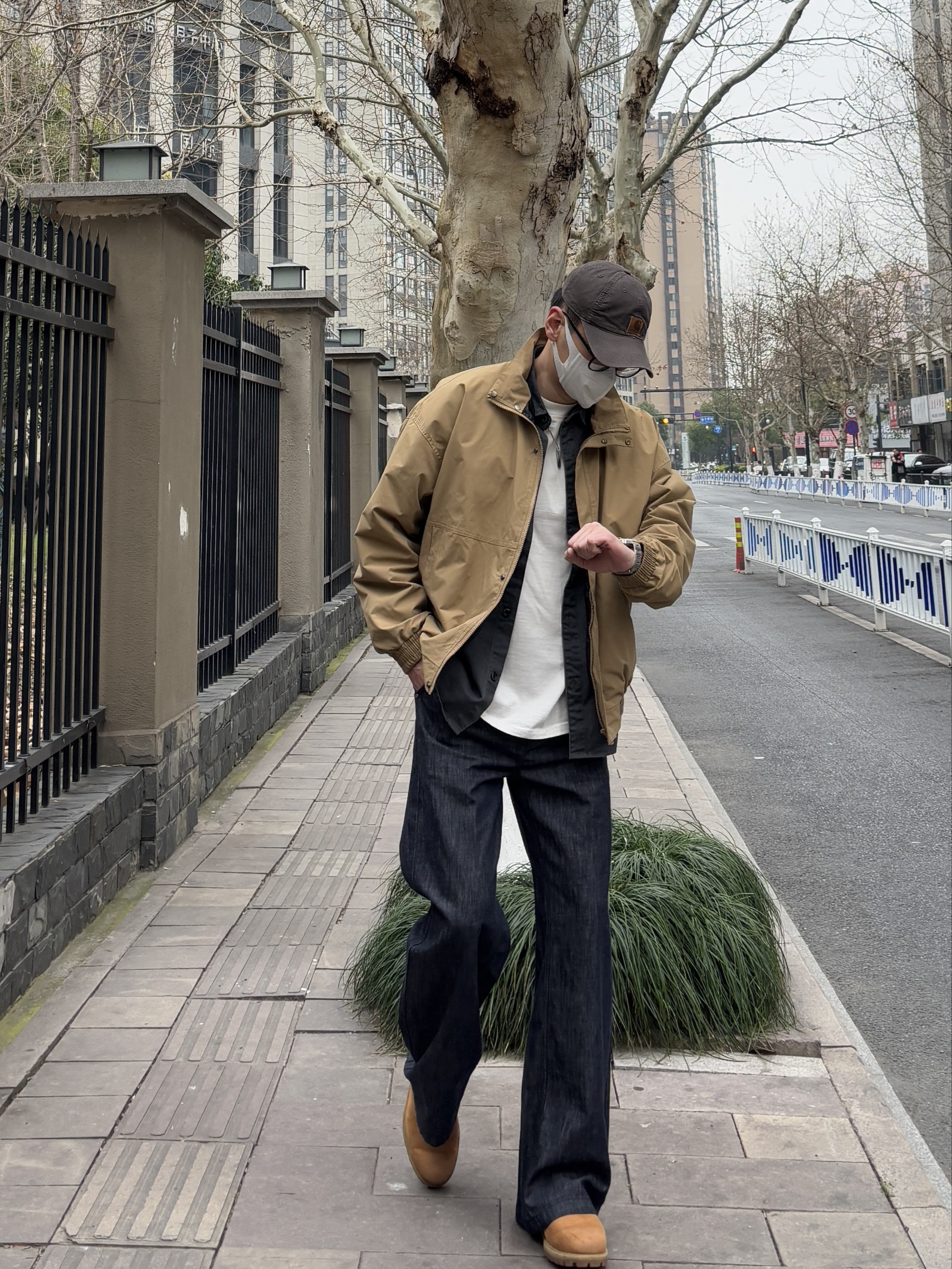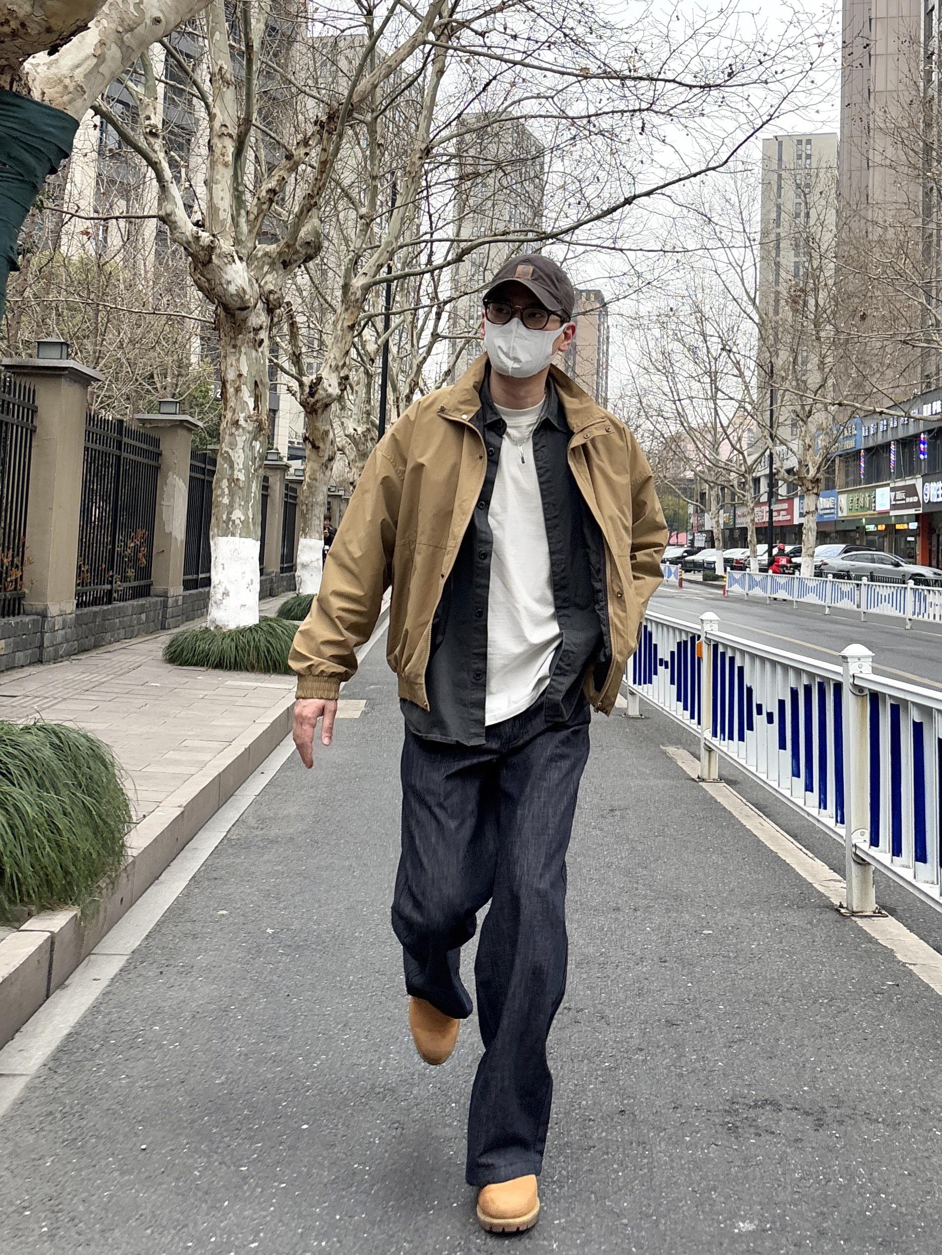 轻工装风真的很适合日常~ 外套卡其色休闲夹克 利落不拖沓,立领设计显精神🙋♂️ 内搭深灰色做旧工装衬衫 叠穿打造丰富层次,细节感满满 裤子选择原色直筒亚麻混纺水洗牛仔裤 舒适透气,对各种腿型都友好 脚踩一双复古高帮大黄靴 强化工装风格,帅气又硬朗 这套不挑年龄场景,简单一搭出门就很有型😎 - 今日搭配 衣服裤子:NICE LILI 鞋子:timberland