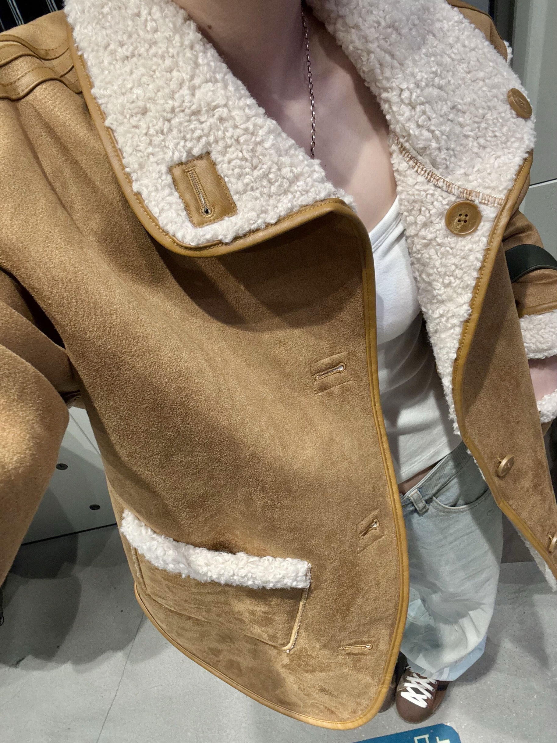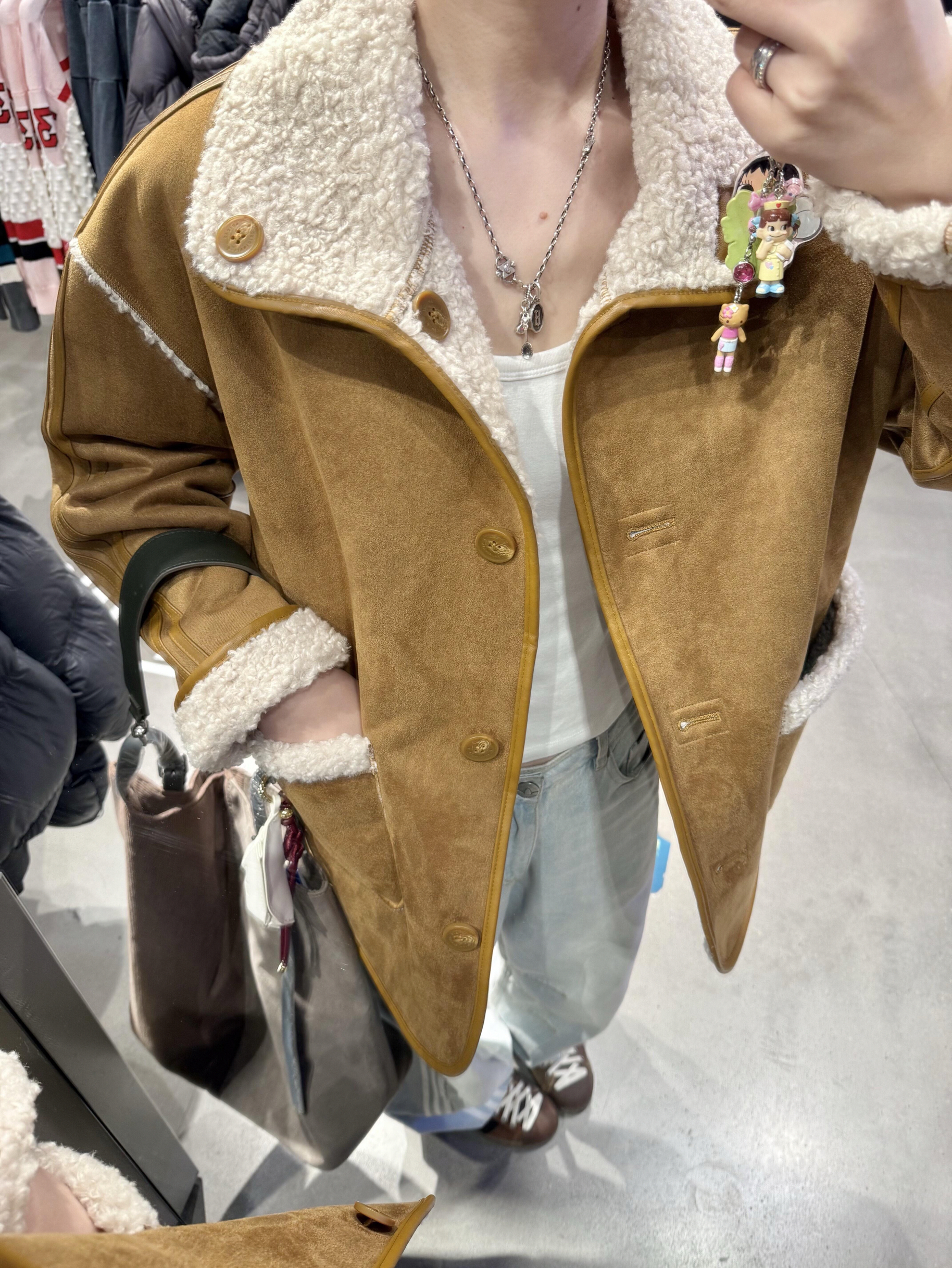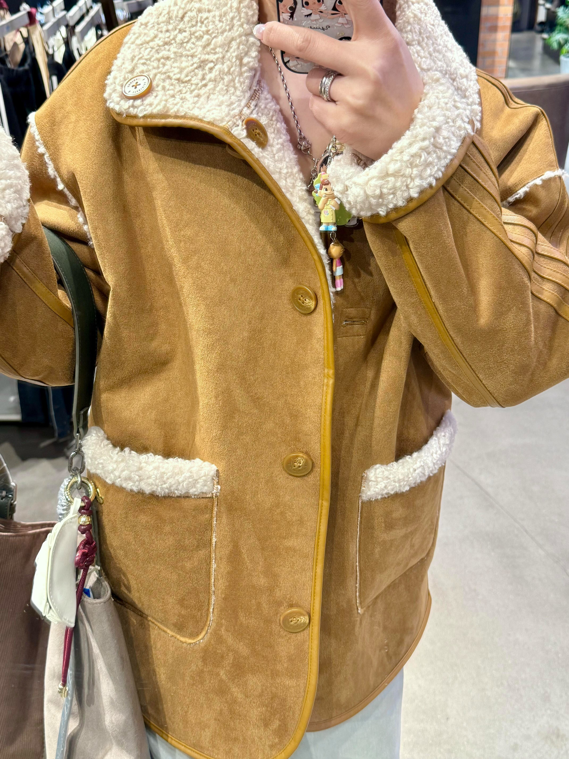 阿迪羊羔毛外套|暖暖的氛围感太爱了🌰 贝贝们啊! 在店里试穿这件焦糖羊羔毛外套直接爱住~ 毛茸茸领口贴肤超舒服, 焦糖色温柔又显白, 麂皮材质摸起来质感直接拉满。 oversize版型穿起来随性又自在, 搭白T+浅色牛仔裤👖+复古板鞋👟, 冬日休闲甜酷风这不就拿捏了? 上身暖和又显气质, 真的恨不得直接穿走!