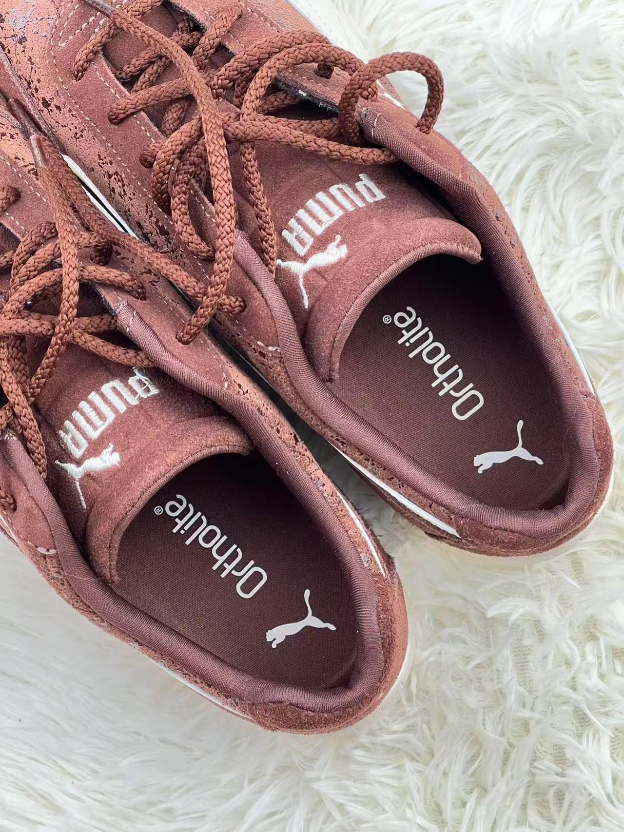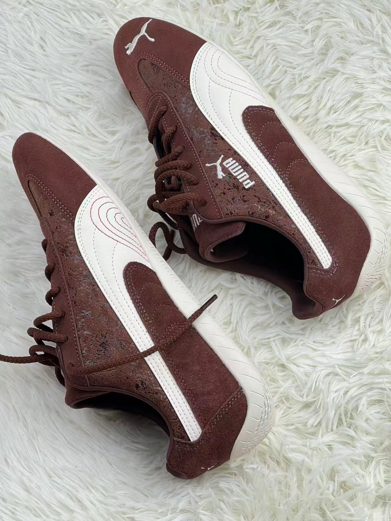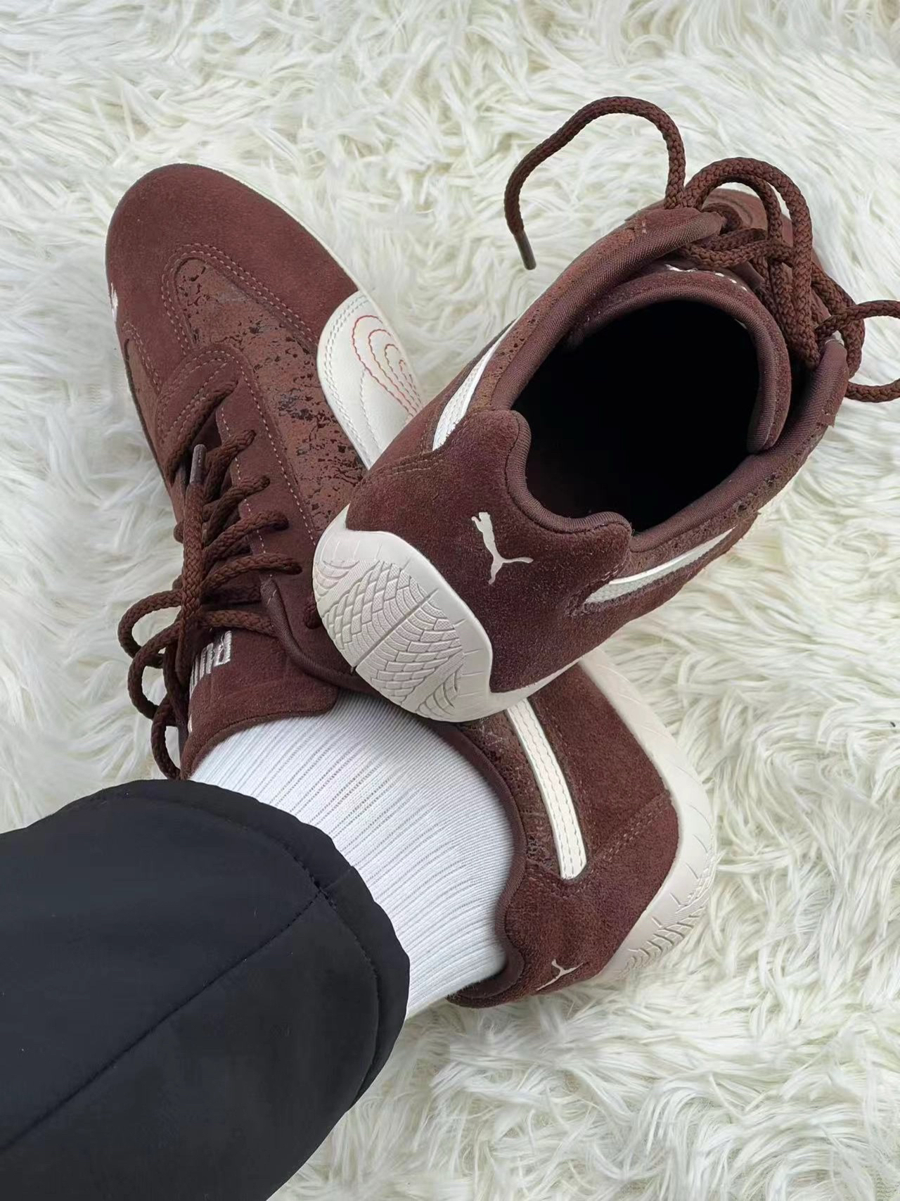 谁还没被这双PUMA棕德训鞋戳中心巴!🍂 麂皮+做旧纹理的拼接太有质感了,深棕+奶白的配色温柔又高级,像把秋日焦糖穿在脚上~ 鞋型是经典的赛车鞋轮廓,修饰脚型一绝,小个子也能悄悄显腿长! 上脚软乎乎的,走路久了也不磨脚,配牛仔裤、百褶裙都超绝,韩系氛围感直接拉满💯 日常通勤、约会出街都能穿,复古党&温柔风姐妹闭眼冲!